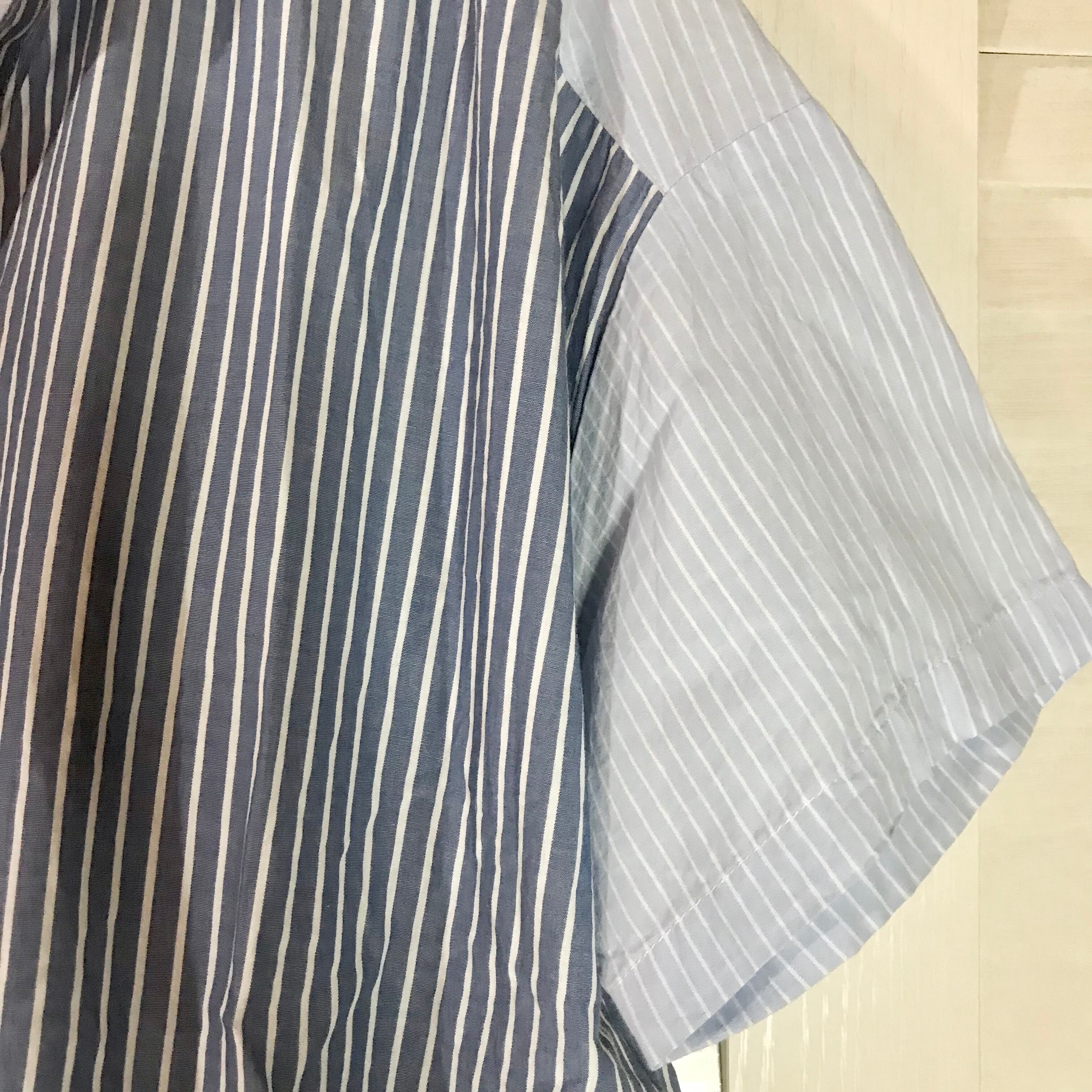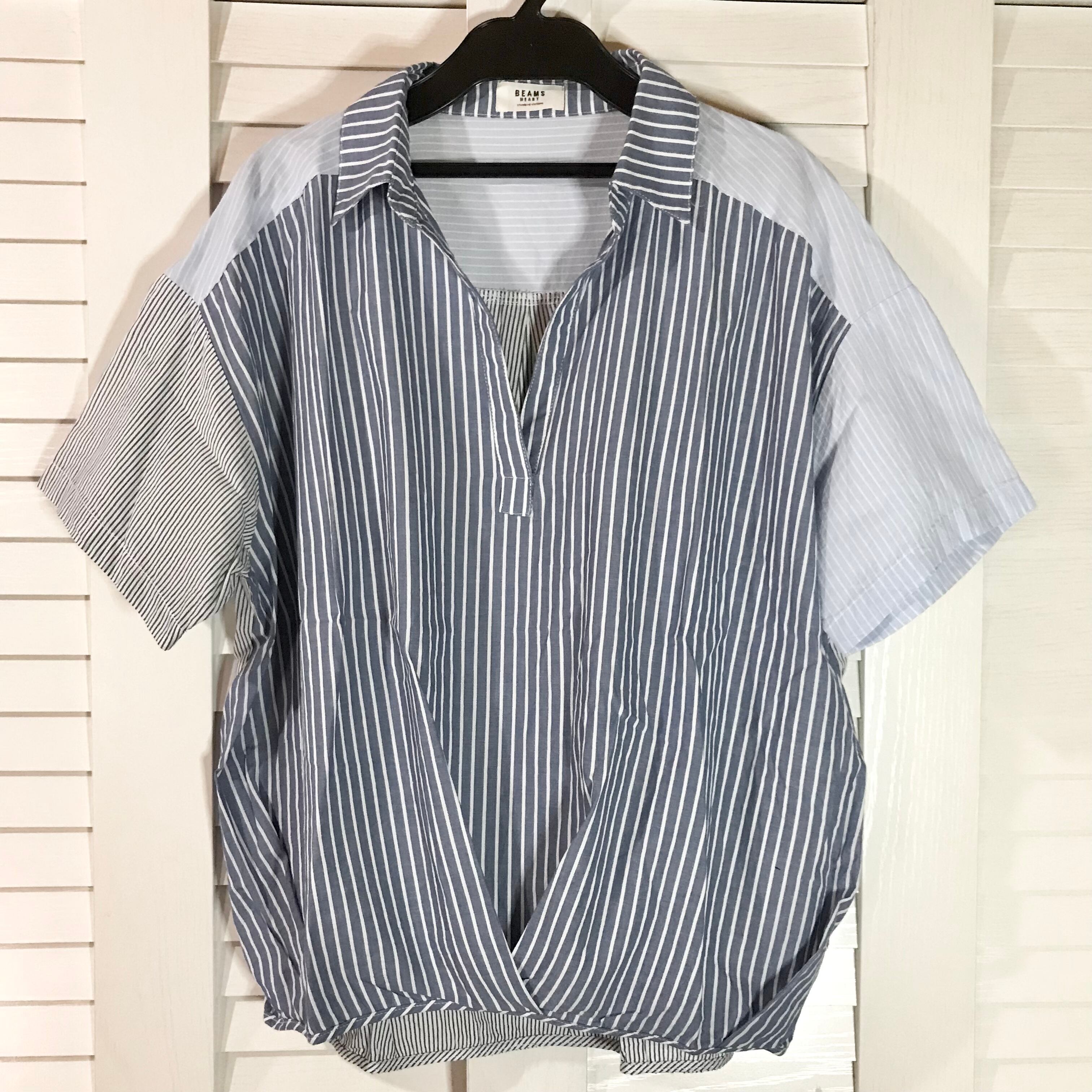 BEAMS HEART クレイジーパターン ストライプ スキッパーシャツ ブルー