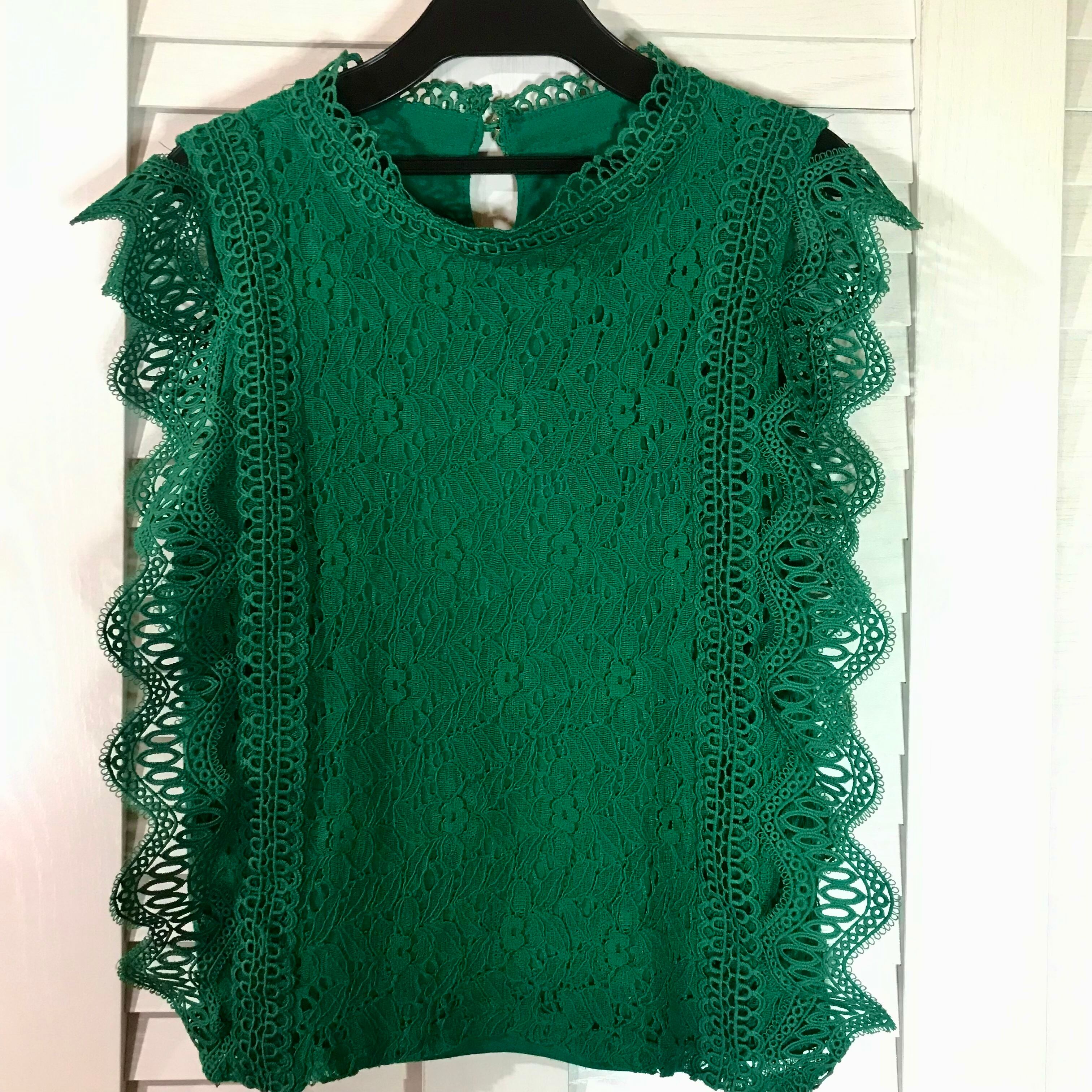 ITS' DEMO 細見え!総ケミカルレースブラウス カットソー裏地 グリーン | お洋服屋さん 『GOKKO』