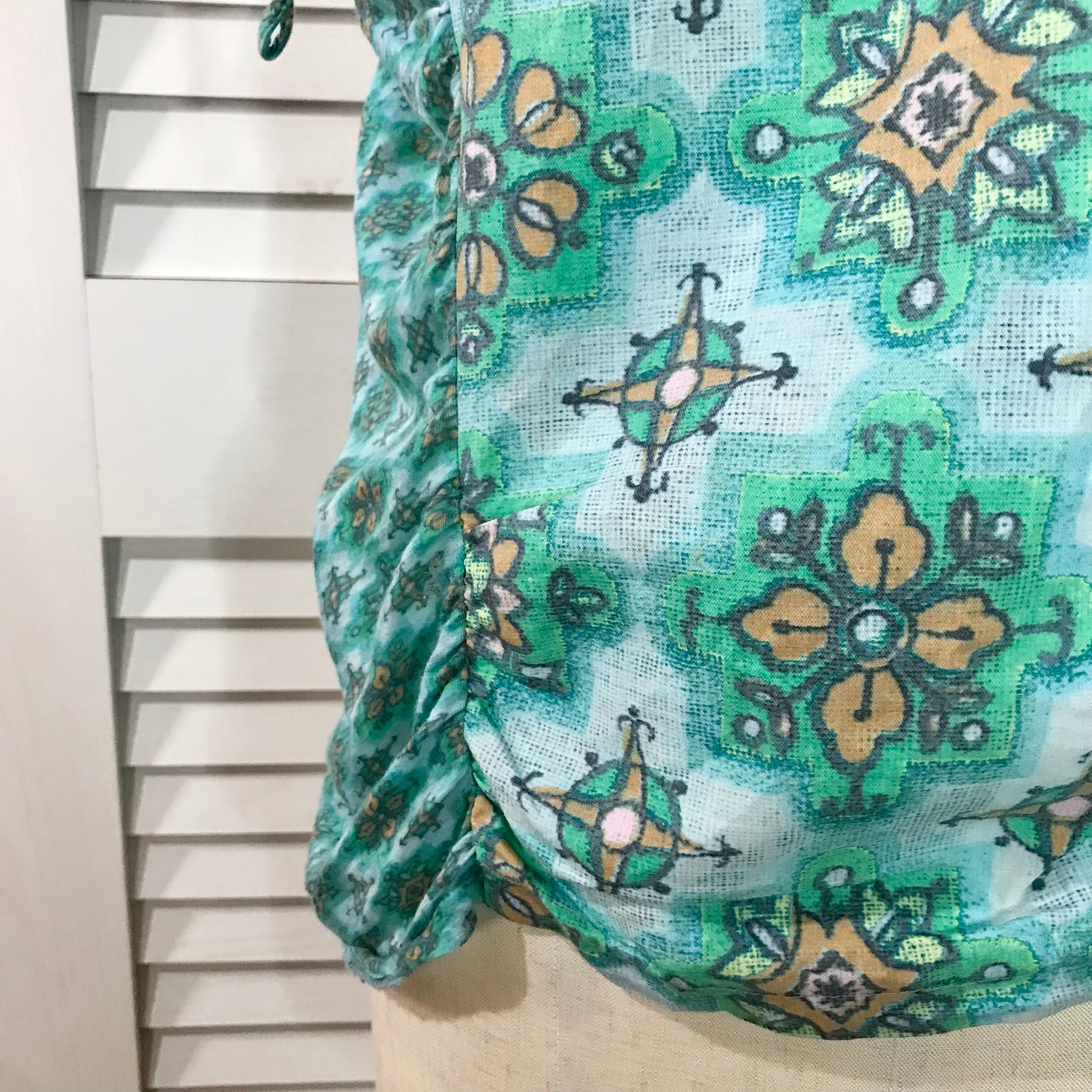 ZUCCa ダマスク柄カットソー切替ブラウス ブルー