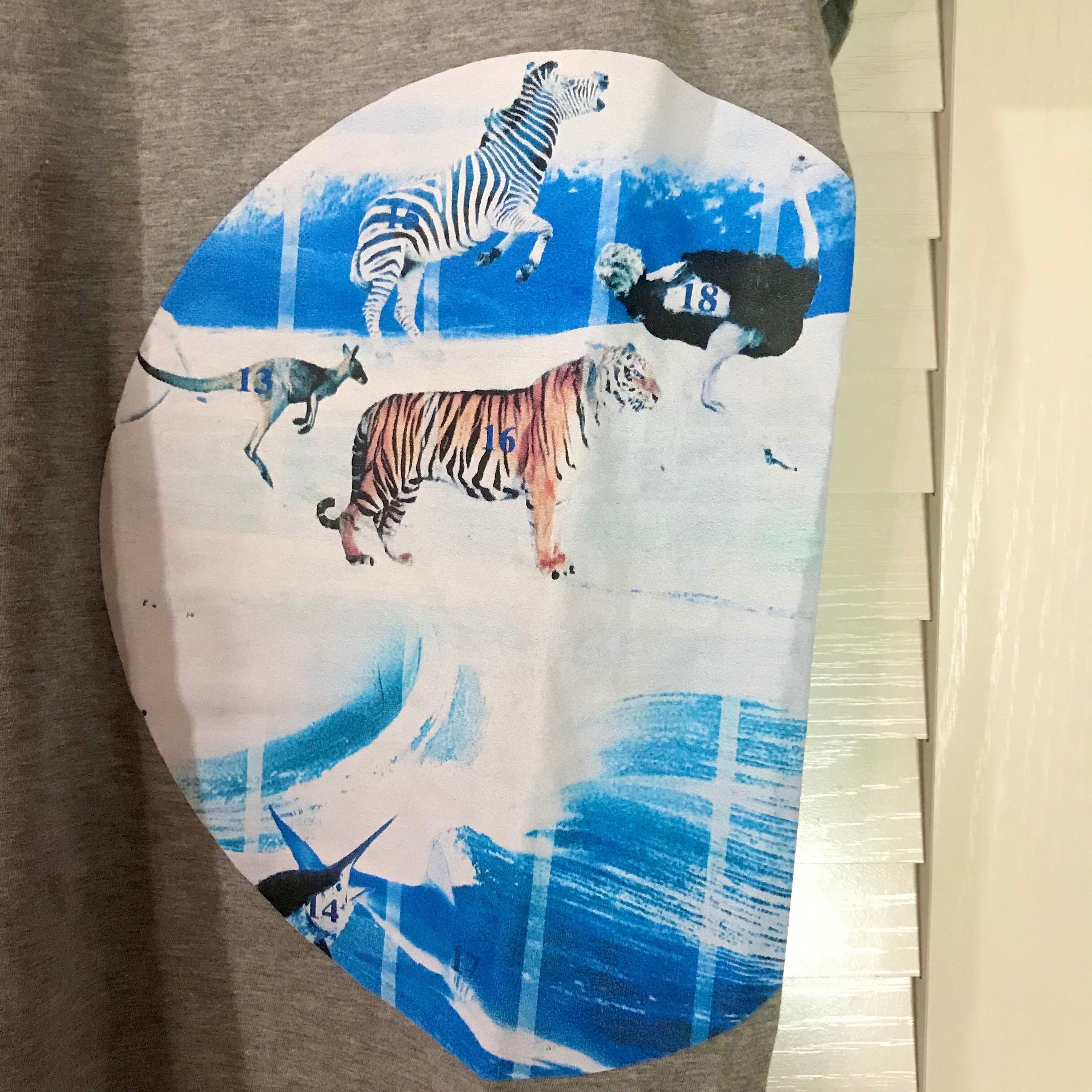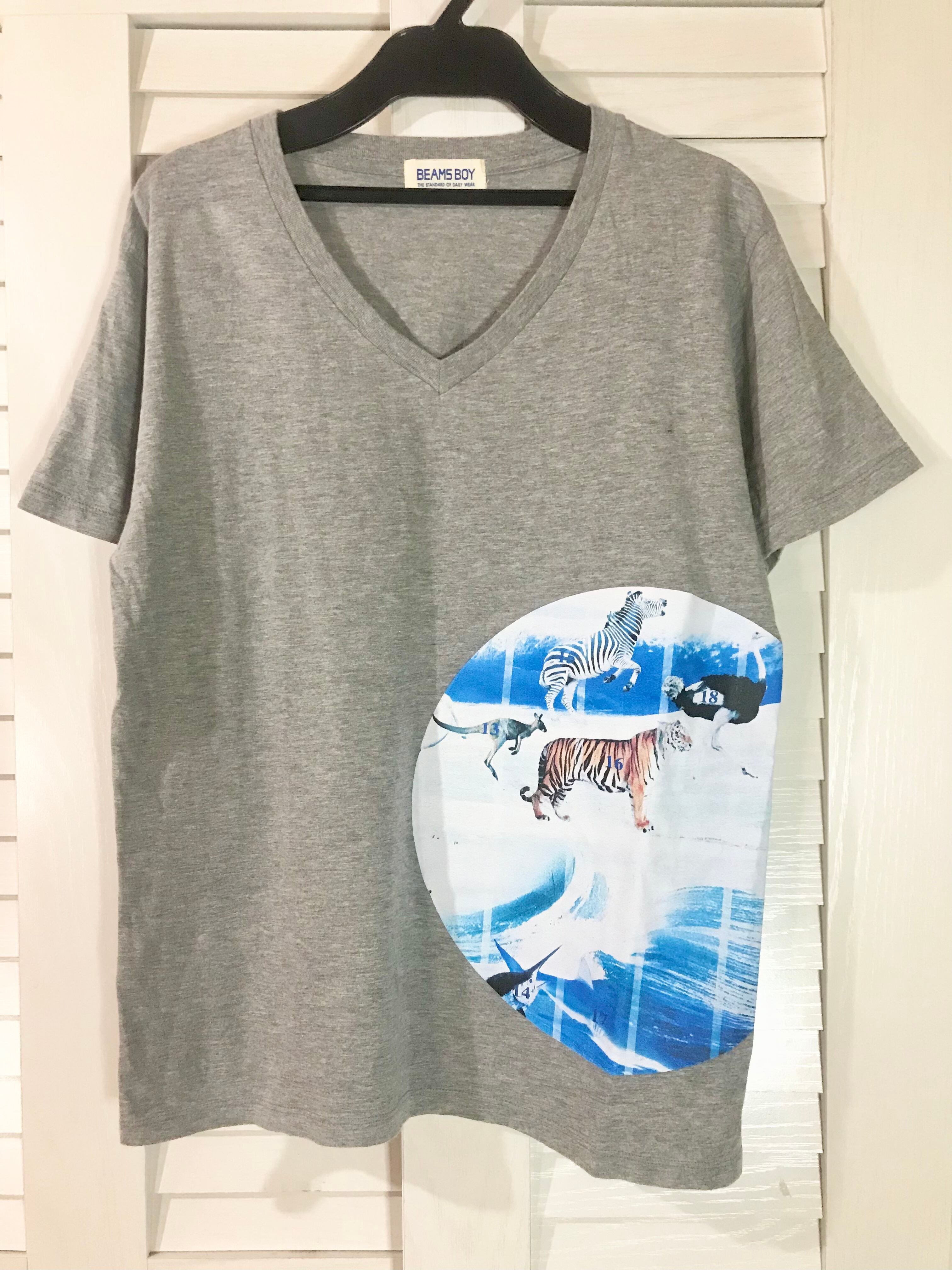 BEAMS BOY ラウンドどうぶつプリント VネックTシャツ グレー