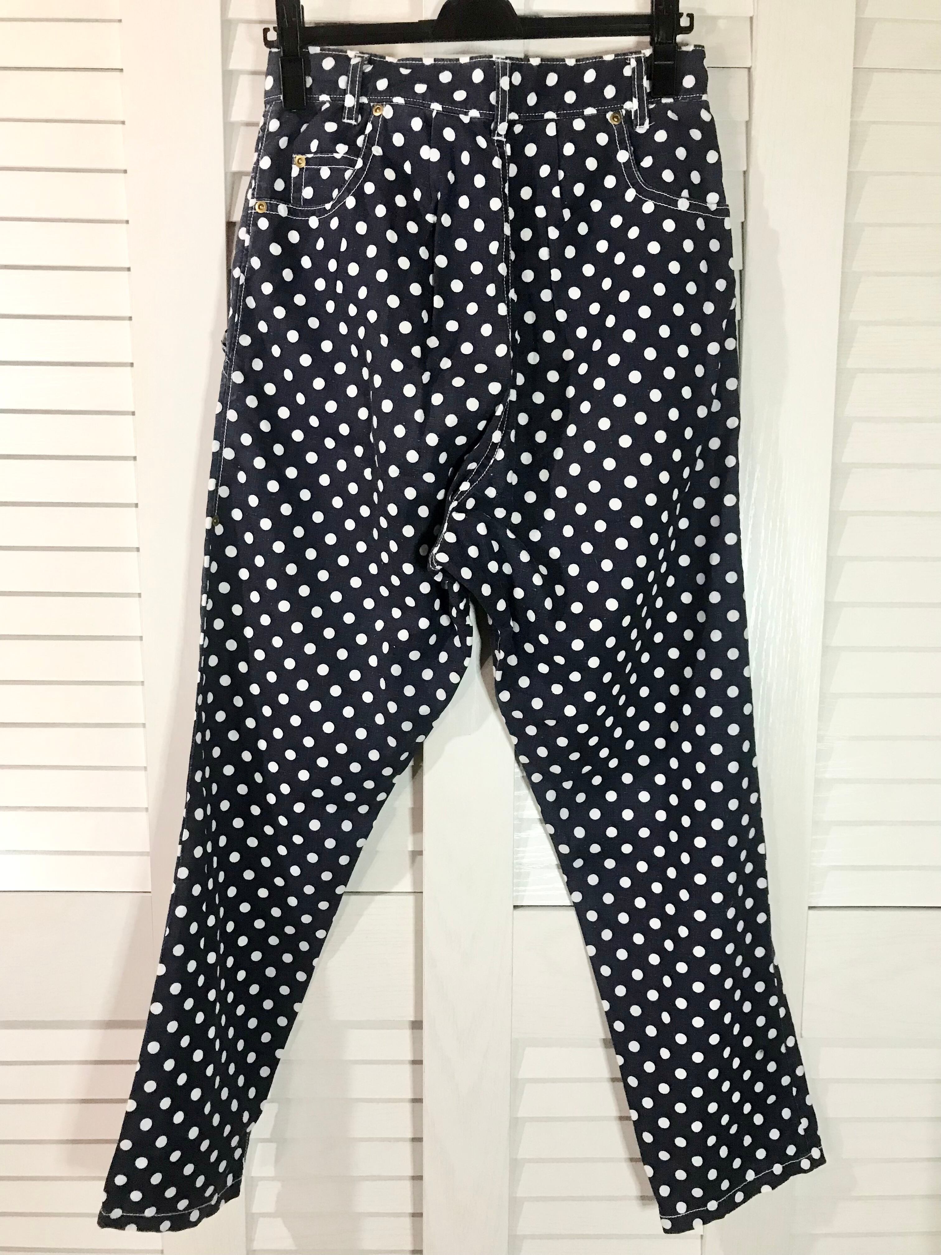 mercibeaucoup, コットンリネン ドット柄サカサマサルエルパンツ ネイビー