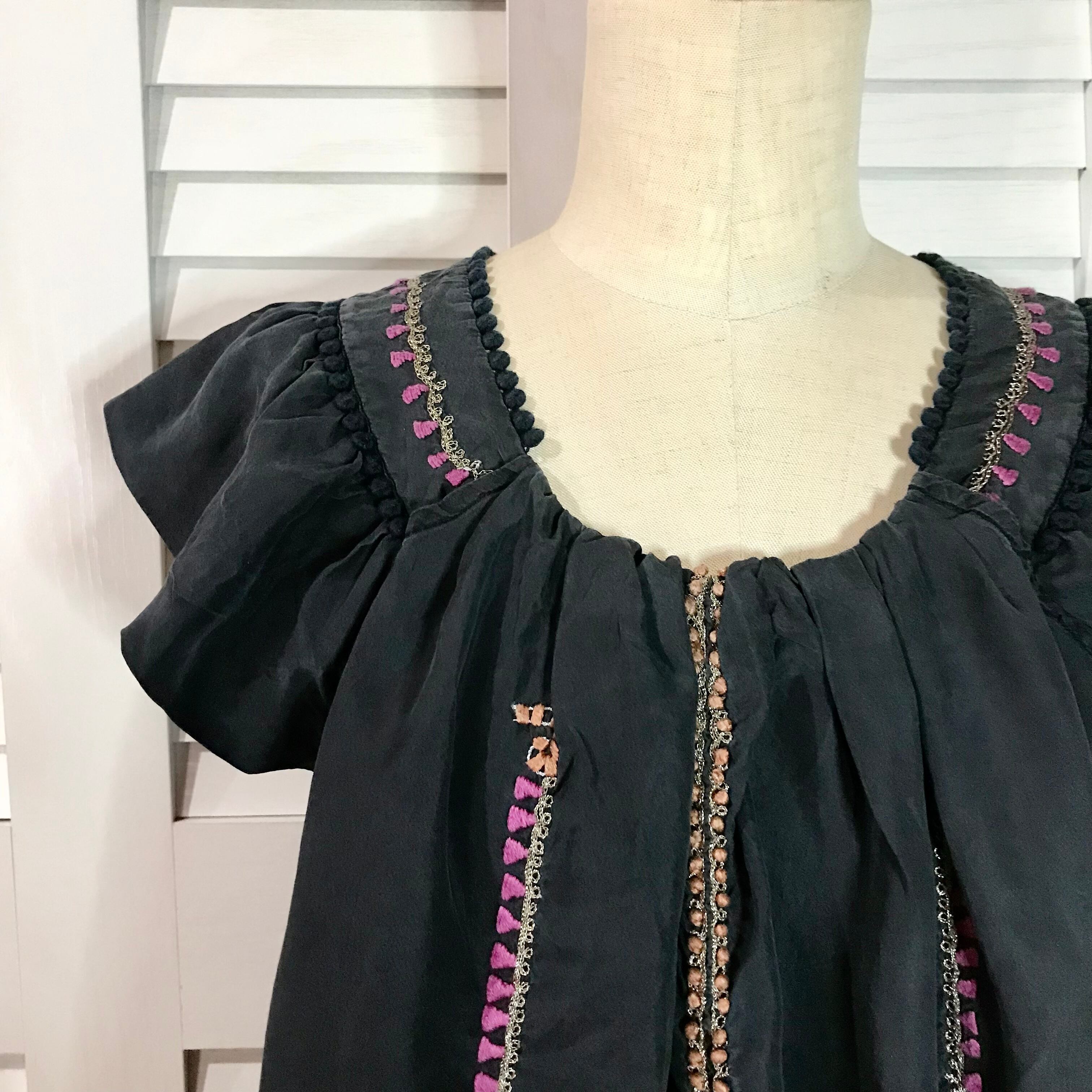 ちゃーさん専用◎TSUMORI CHISATO ぶらさがりネコ シルクチュニックブラウス チャコールグレー