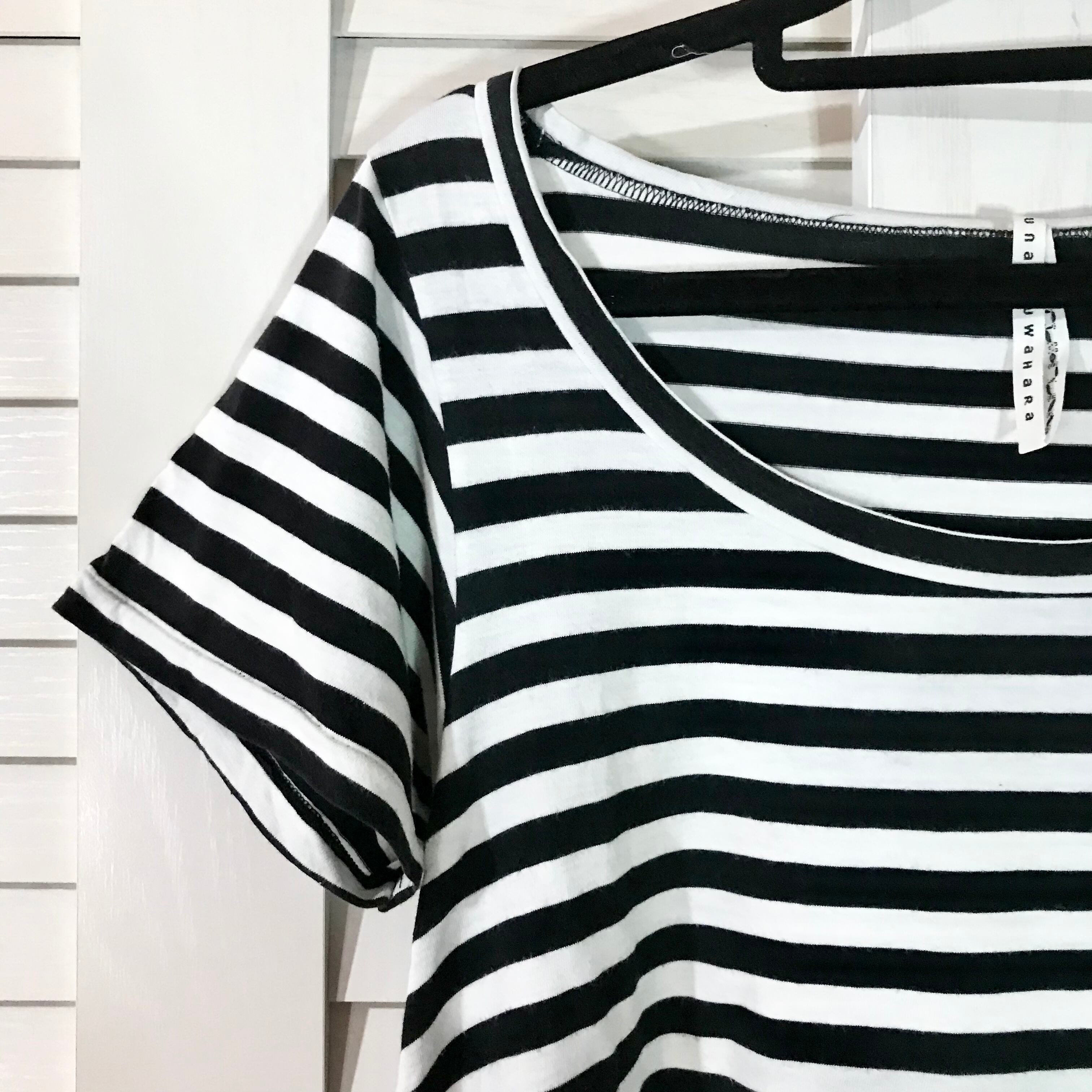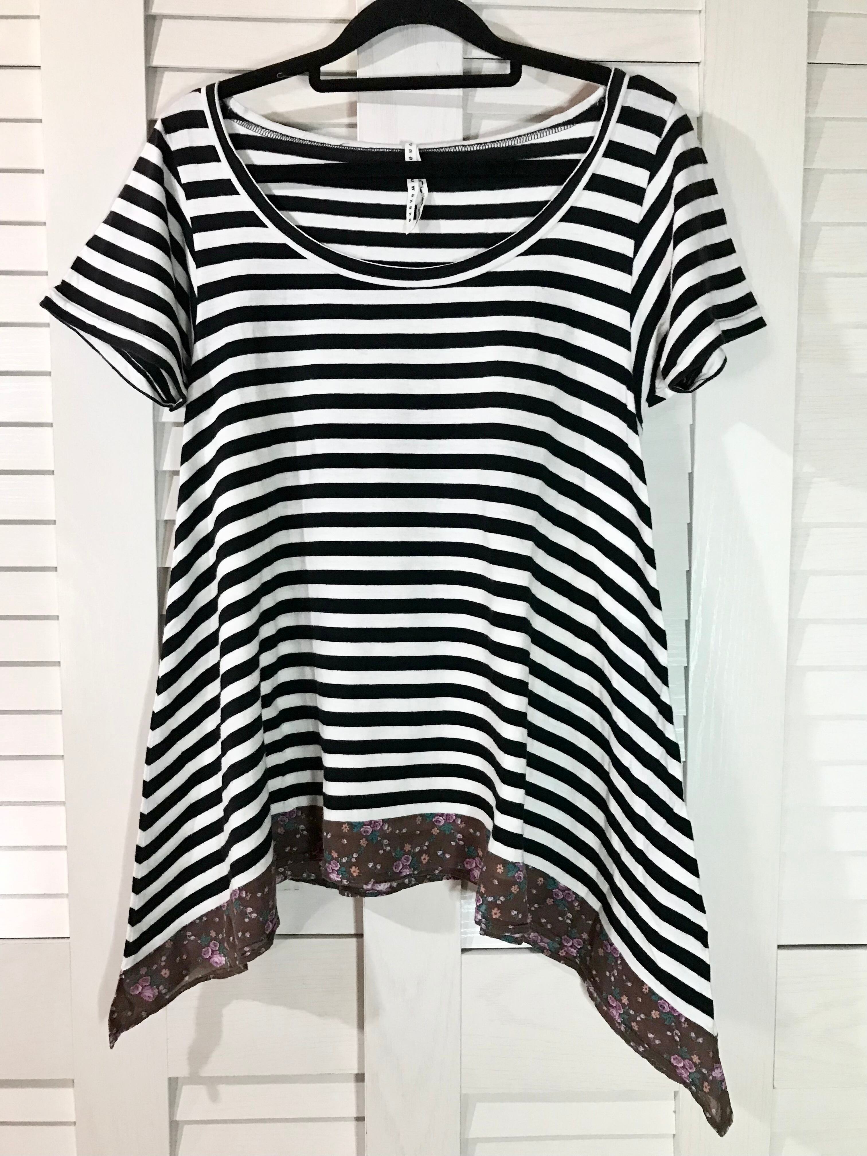 SUNAOKUWAHARA フラワー切替Aラインボーダーカットソー ブラック