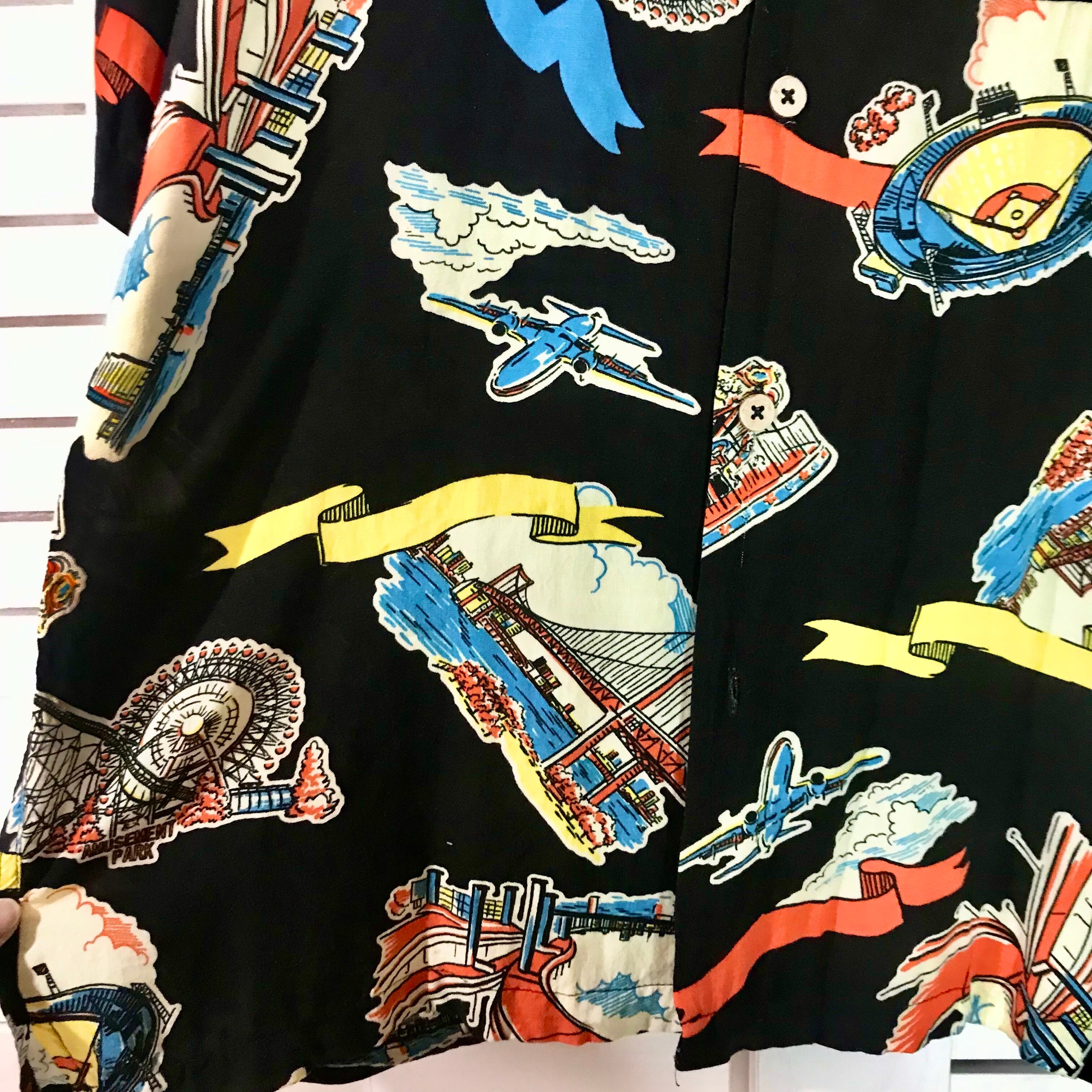 8(eight) レトロイラスト 遊園地&野球場 レーヨンシャツ ブラック