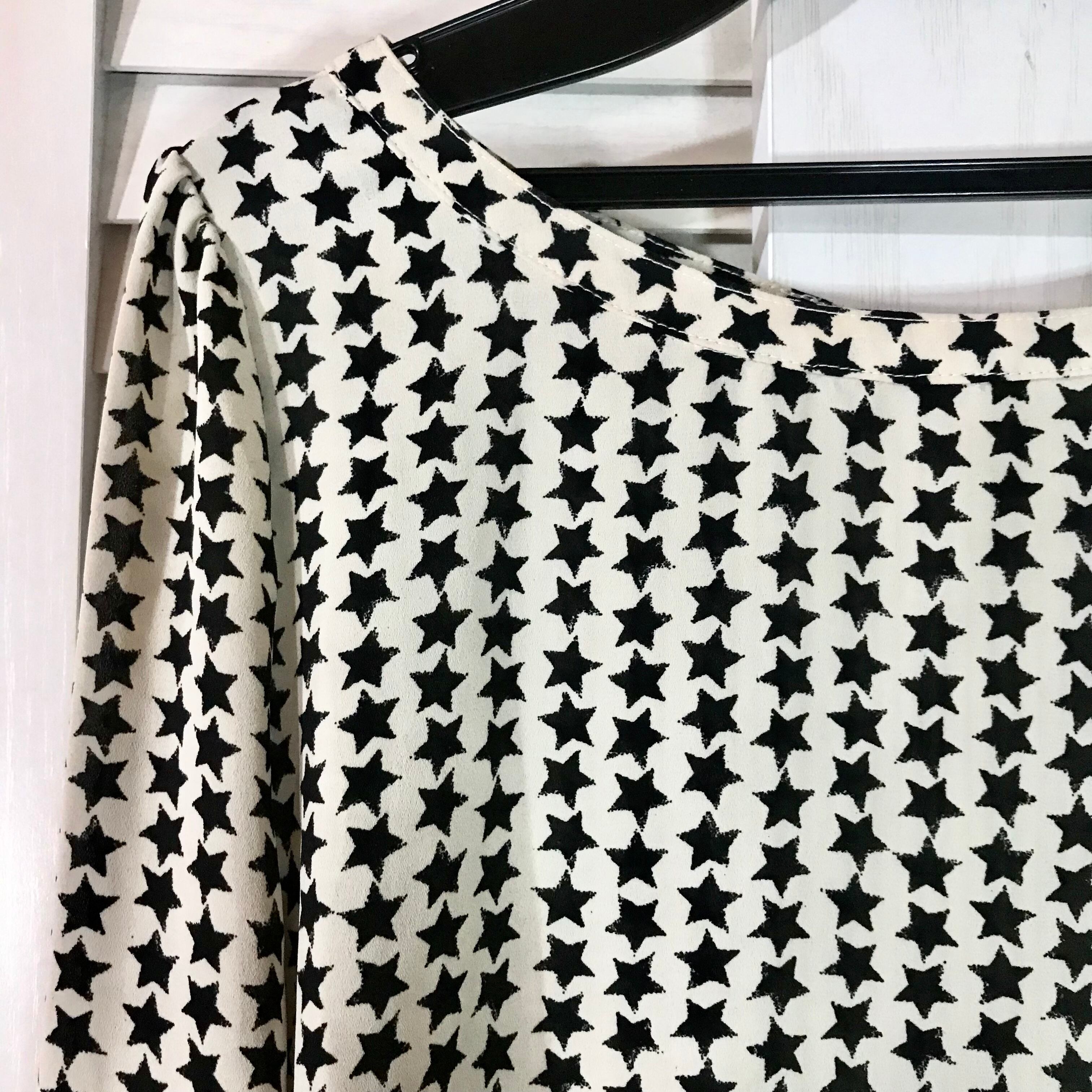 FOREVER21 すし詰めスタープリント スタッズボタン バックオープンノーカラーブラウス アイボリー×ブラック
