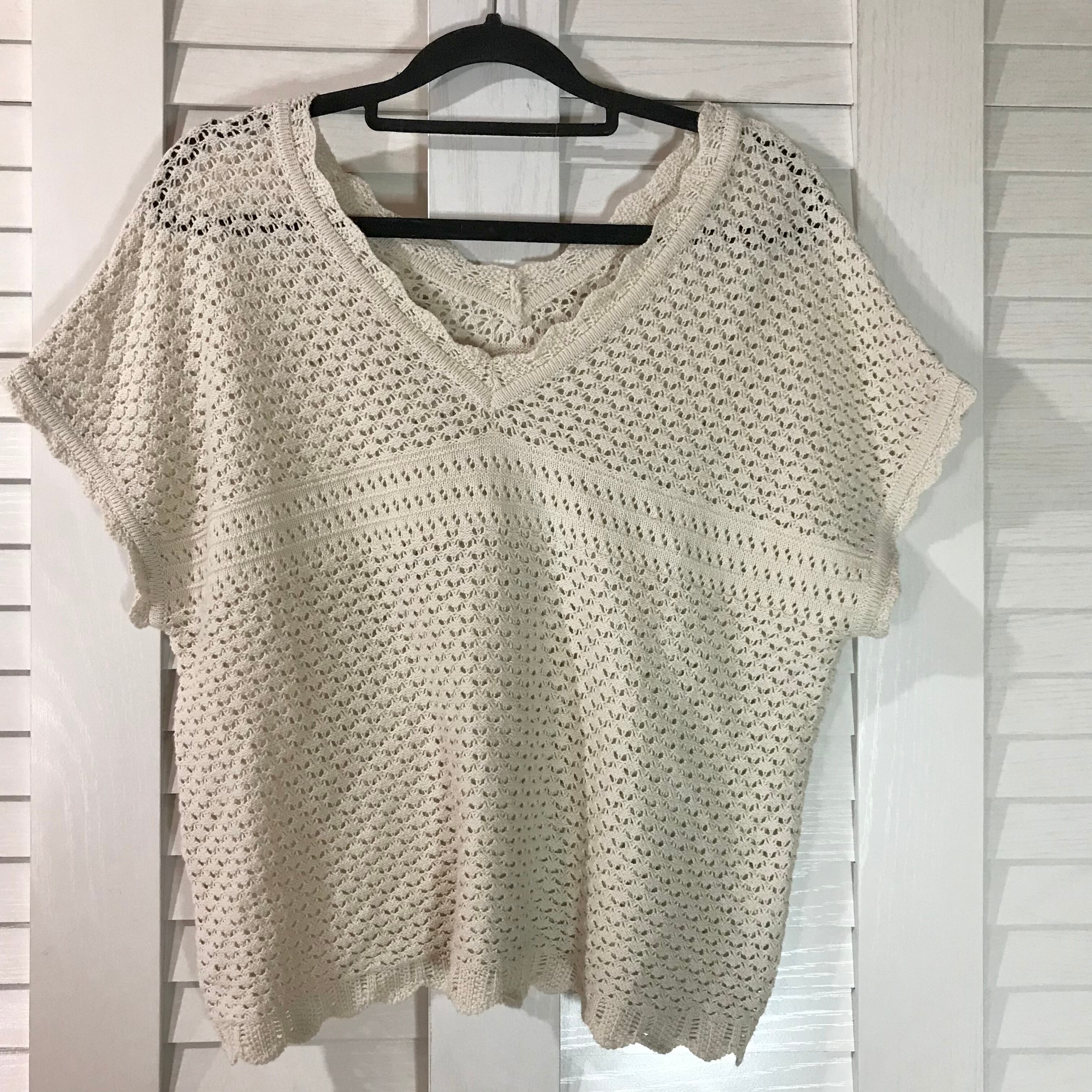 やすいださん専用◎タンク2点付き【デザインサンプル】 透かし編み ショート丈コットンニット ライトベージュ