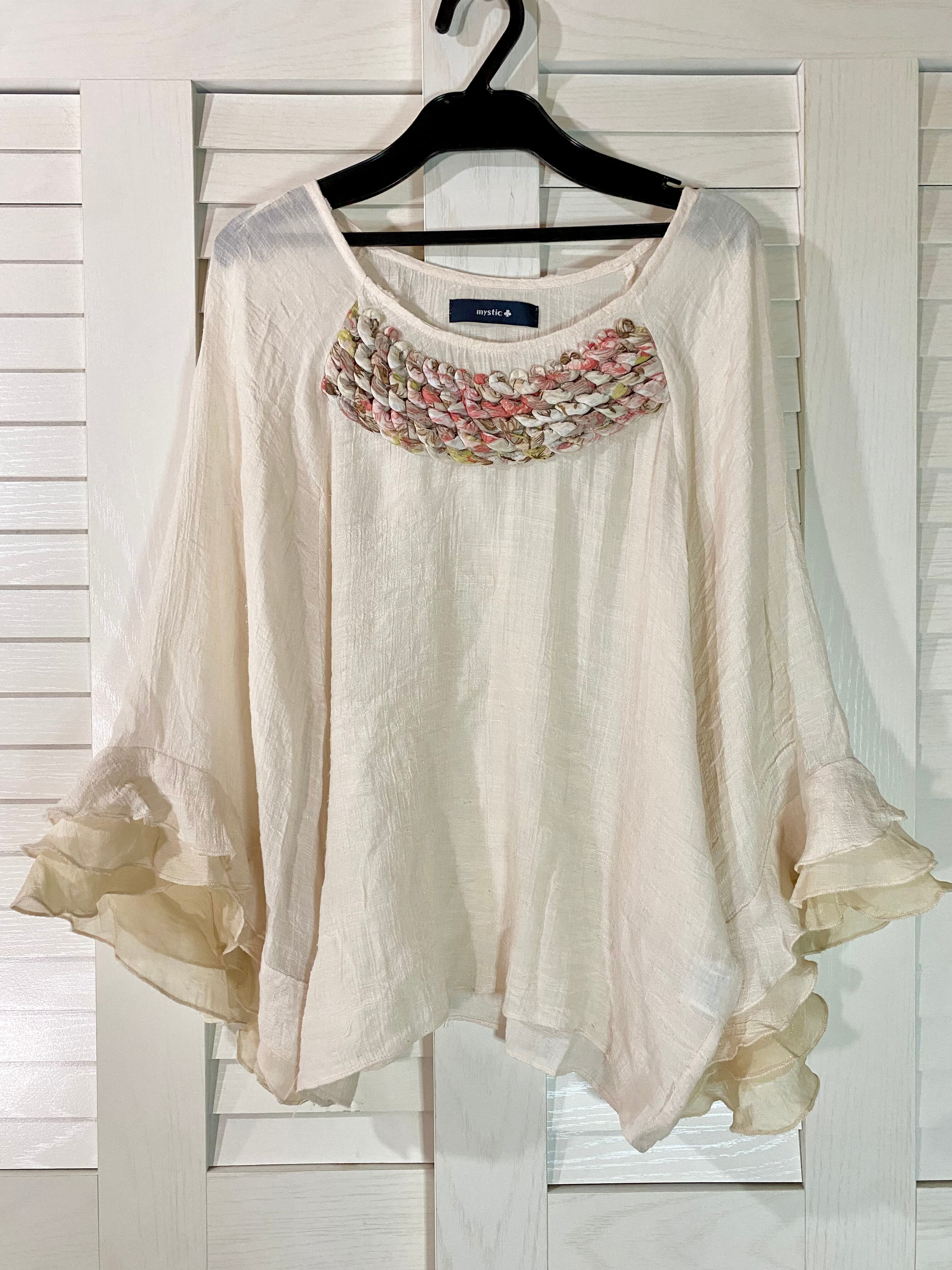 mystic うろこフリル クリオネスリーブブラウス アイボリー