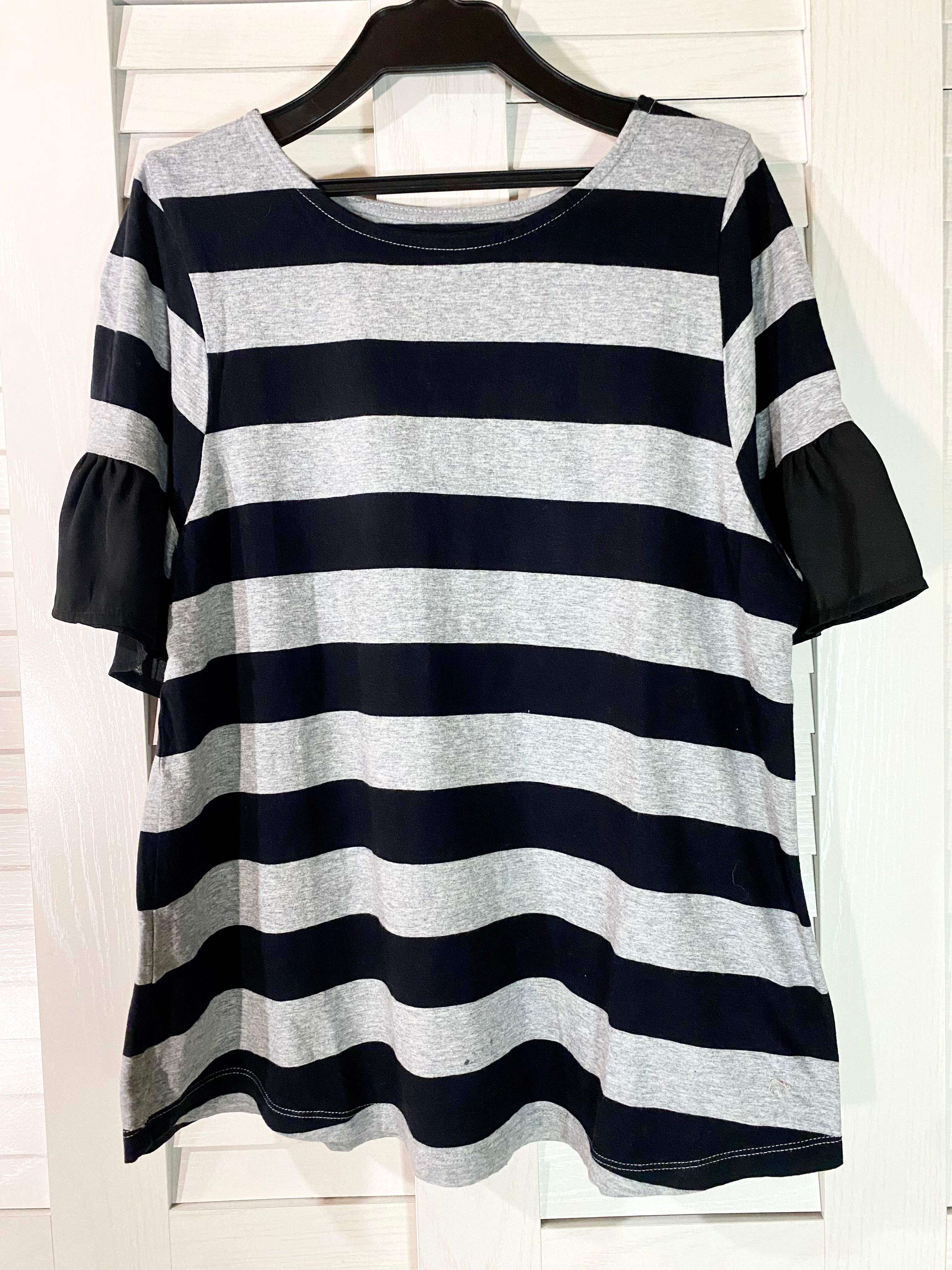 ラーメン専用◎HUNCH シフォンフリルの太ボーダーカットソー ブラック×ライトグレー | お洋服屋さん 『GOKKO』