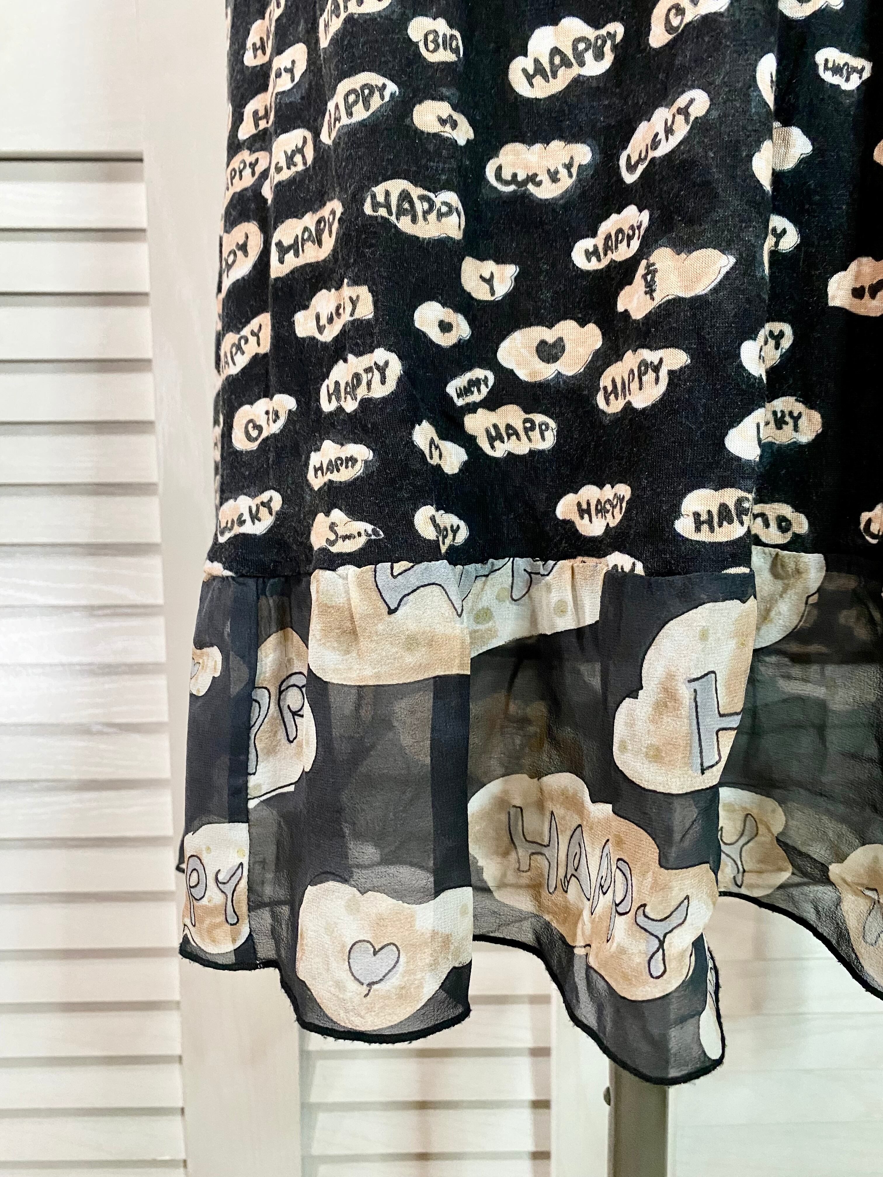 TSUMORI CHISATO ハッピープリント カットソー×シフォン チュニックワンピ ブラック