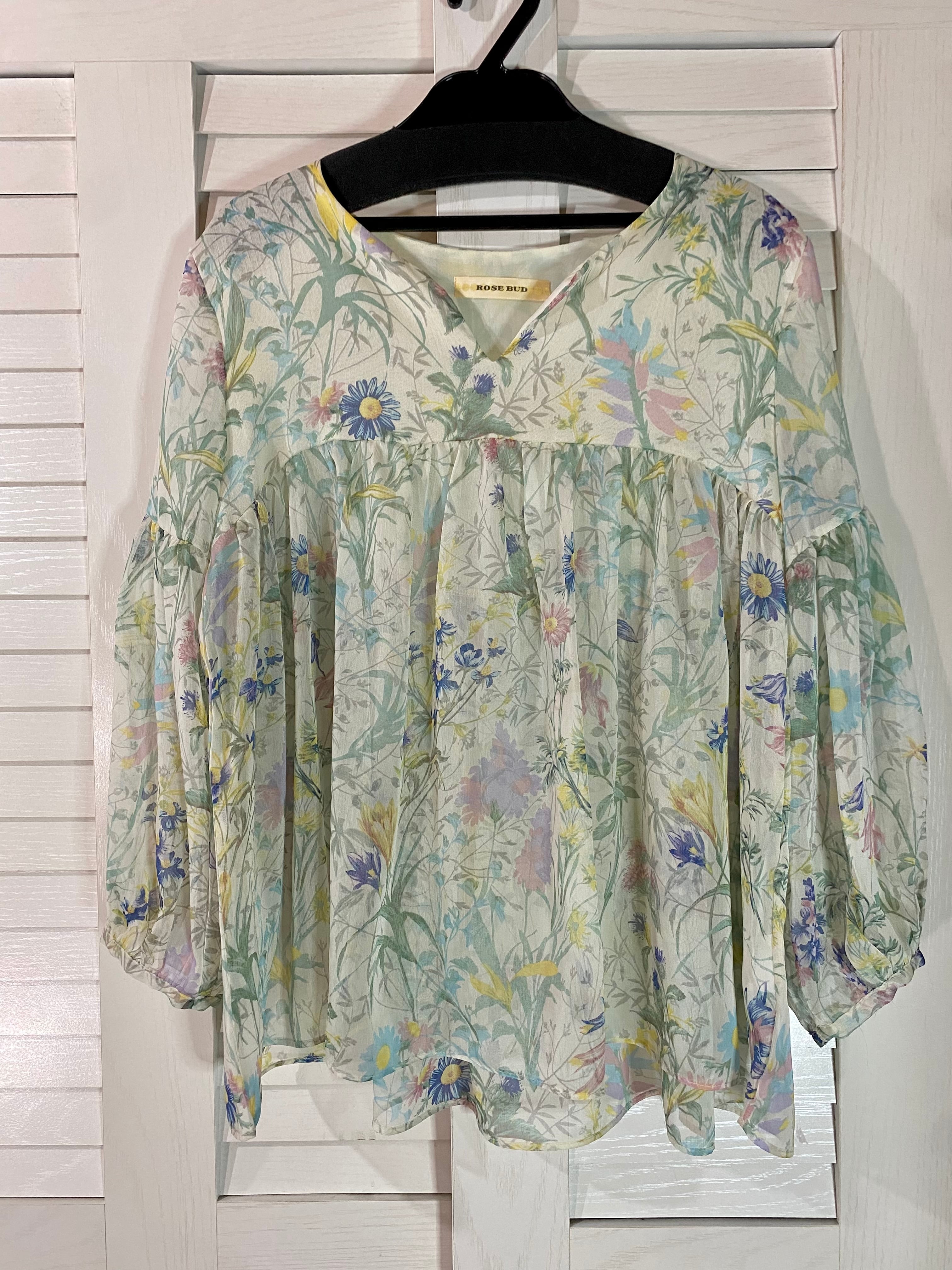 ROSE BUD 植物図鑑 シフォンチュニックブラウス アイボリー