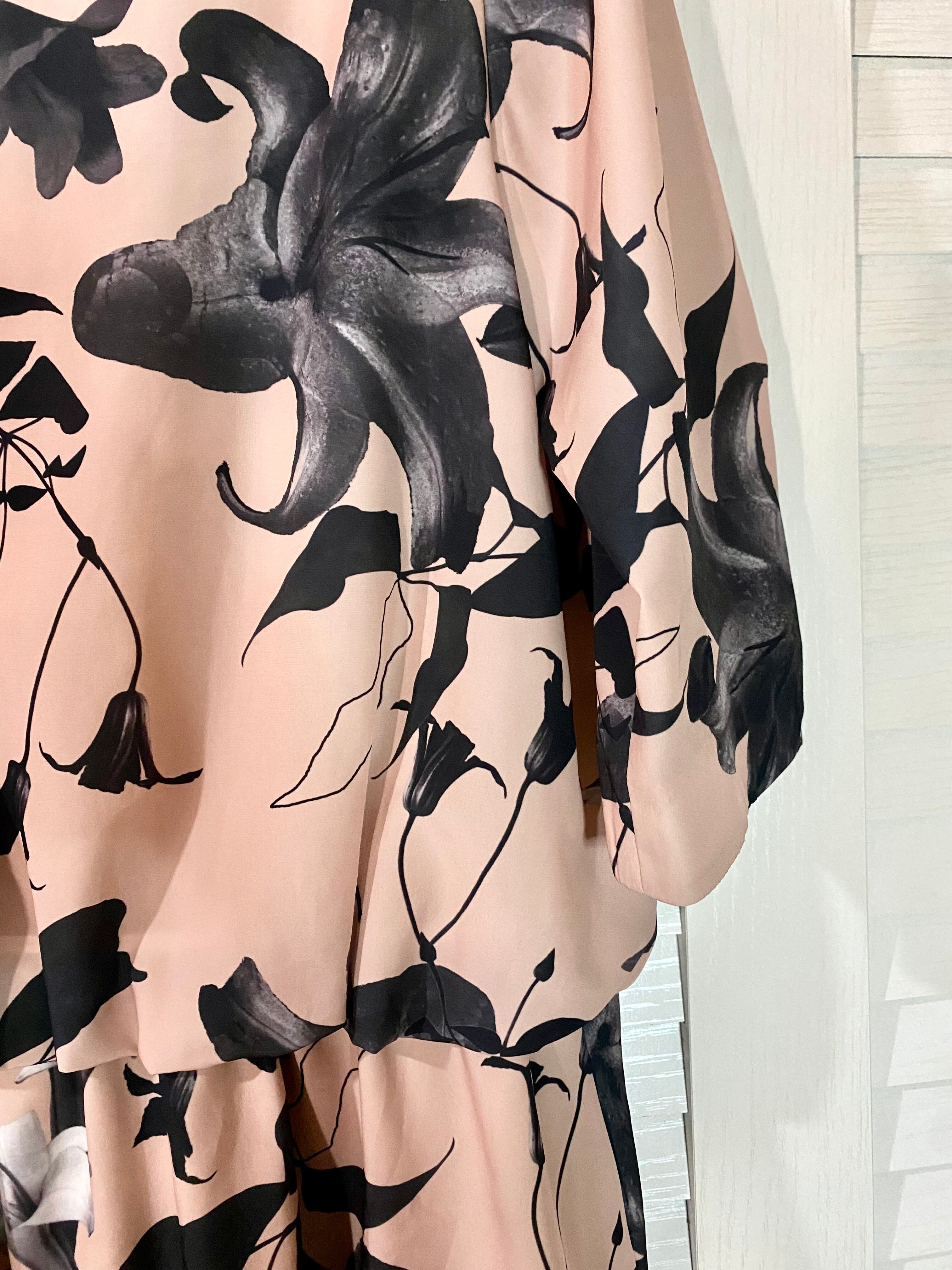 STUDIOUS リアルリリー フォトコラージュプリント ブラウジングワンピ サーモンピンク