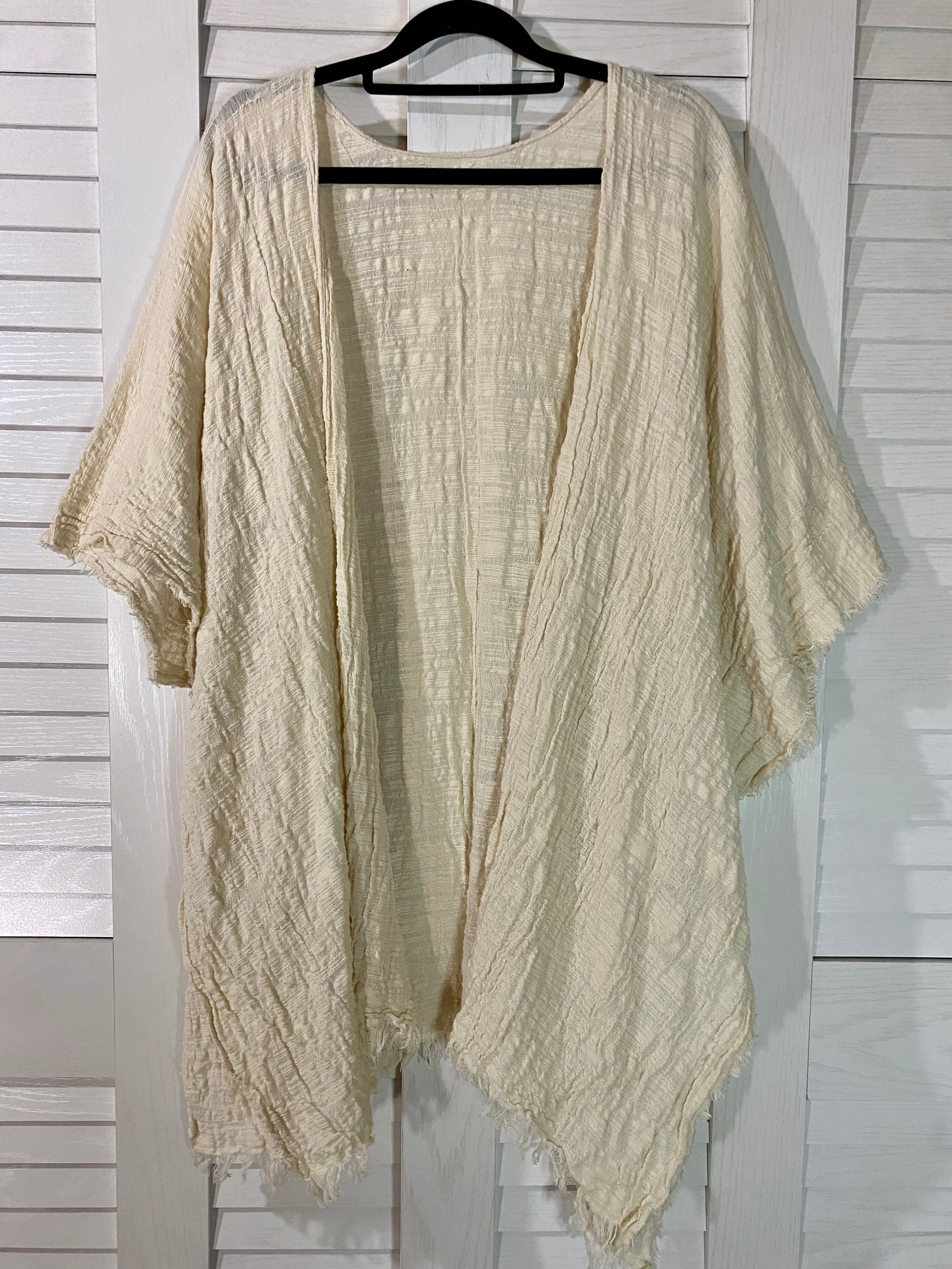 ぷんぽん専用◎【ブランドサンプル】リップル加工 ナチュラルコットン荒織 ルーズカーデ クリーム