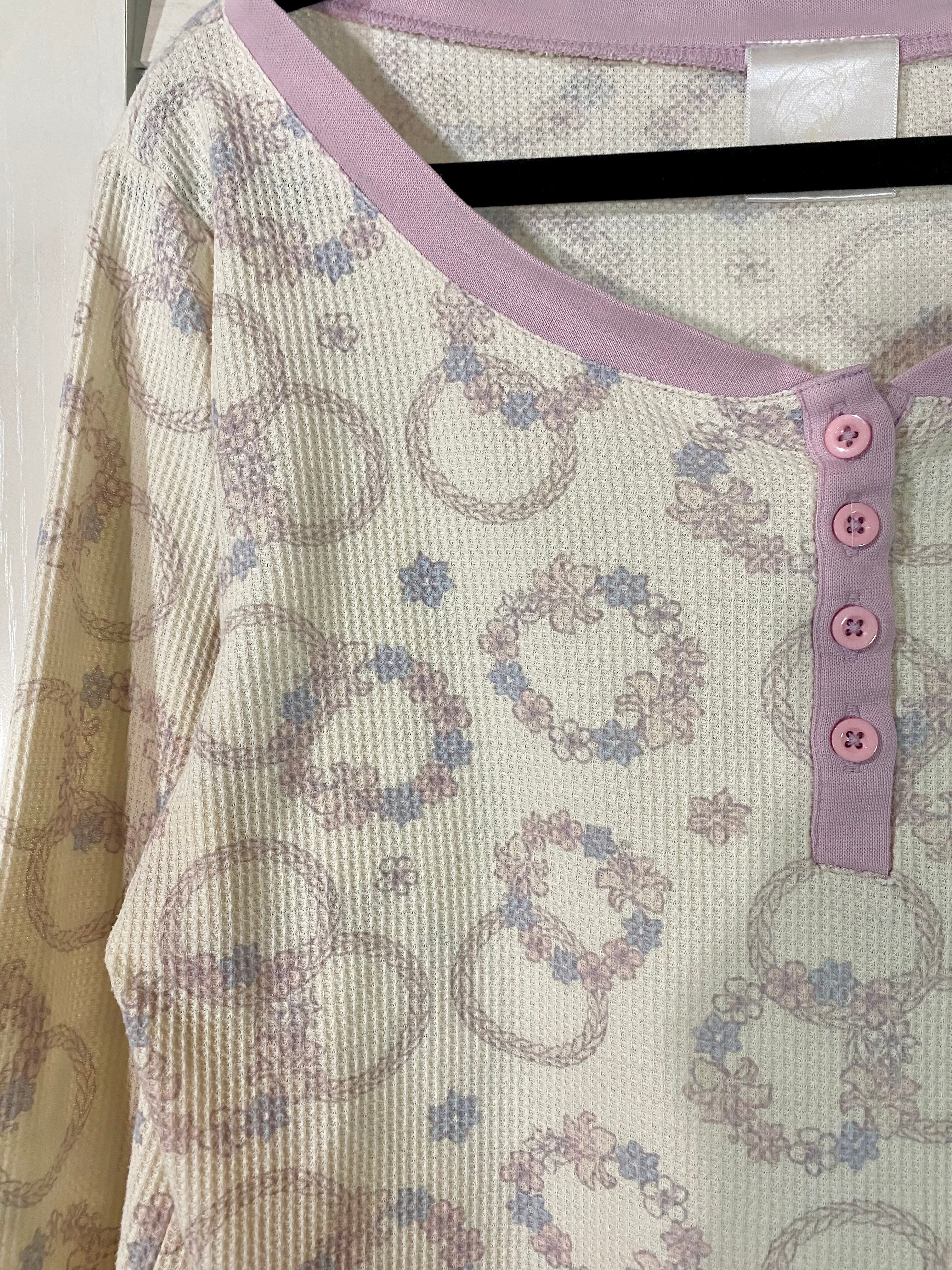 ぷんぽん専用◎【古着屋購入】ラプンツェルモチーフ 三つ編み&フラワーリング サーマルカットソー アイボリー