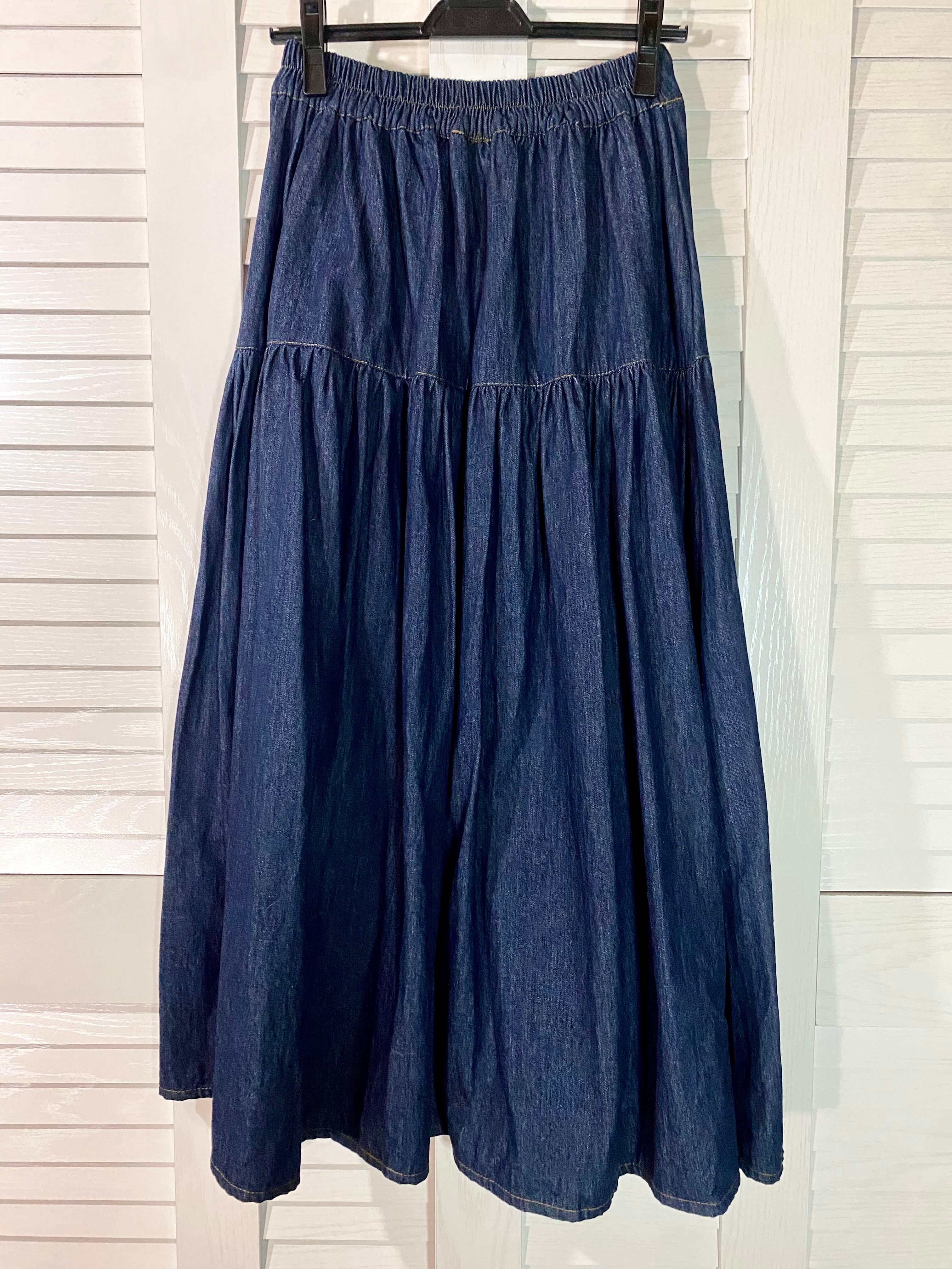 【デザインサンプル】コットンレーヨンデニム スタンダードティアードスカート インディゴ