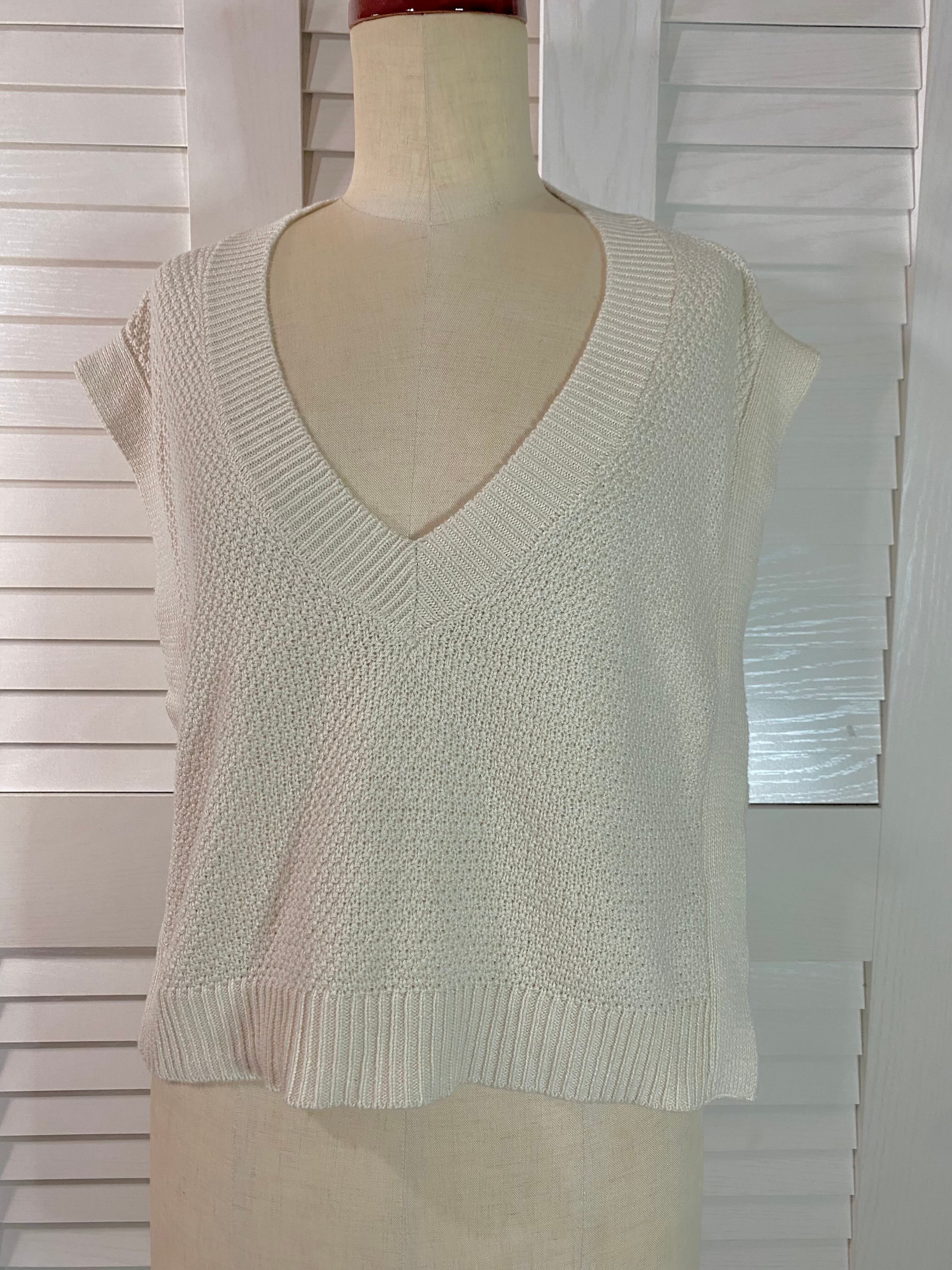 ap retro バックベルト Vネックコットンニット アイボリー