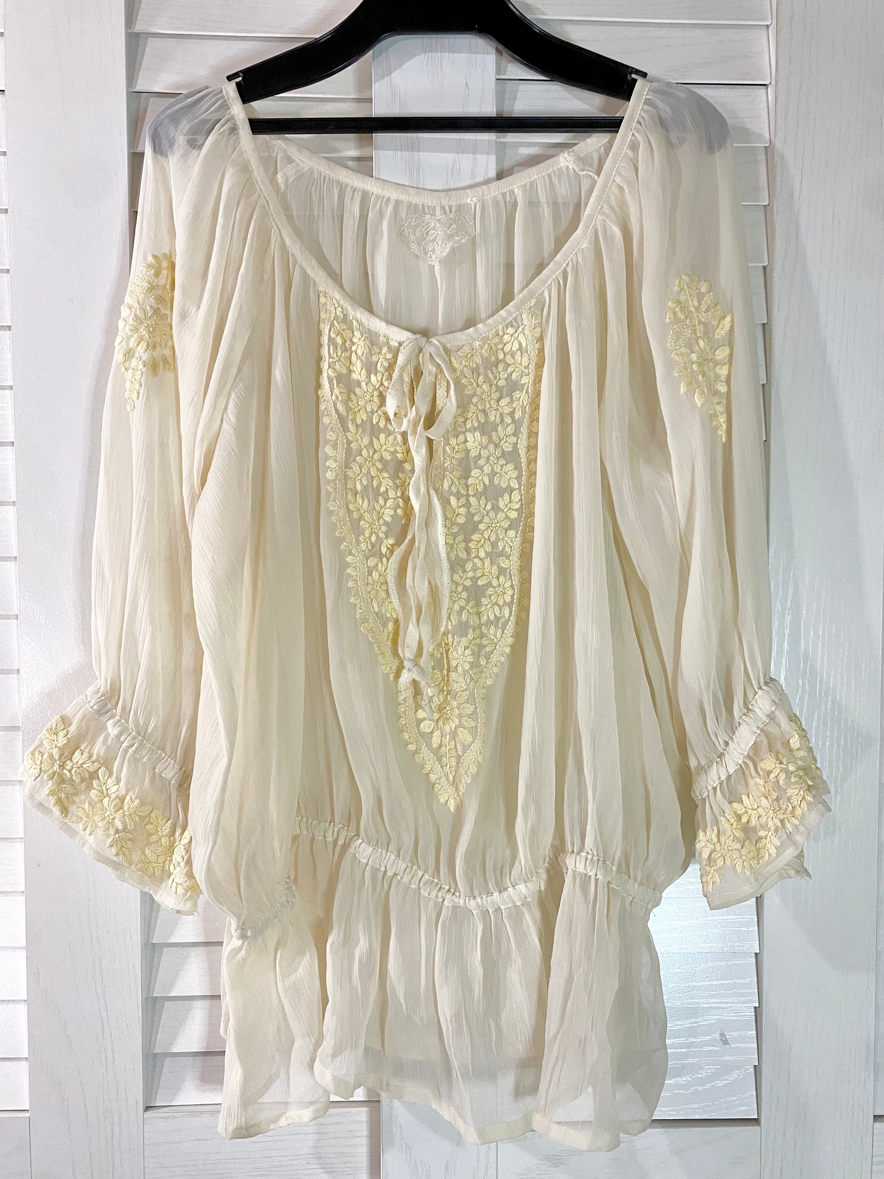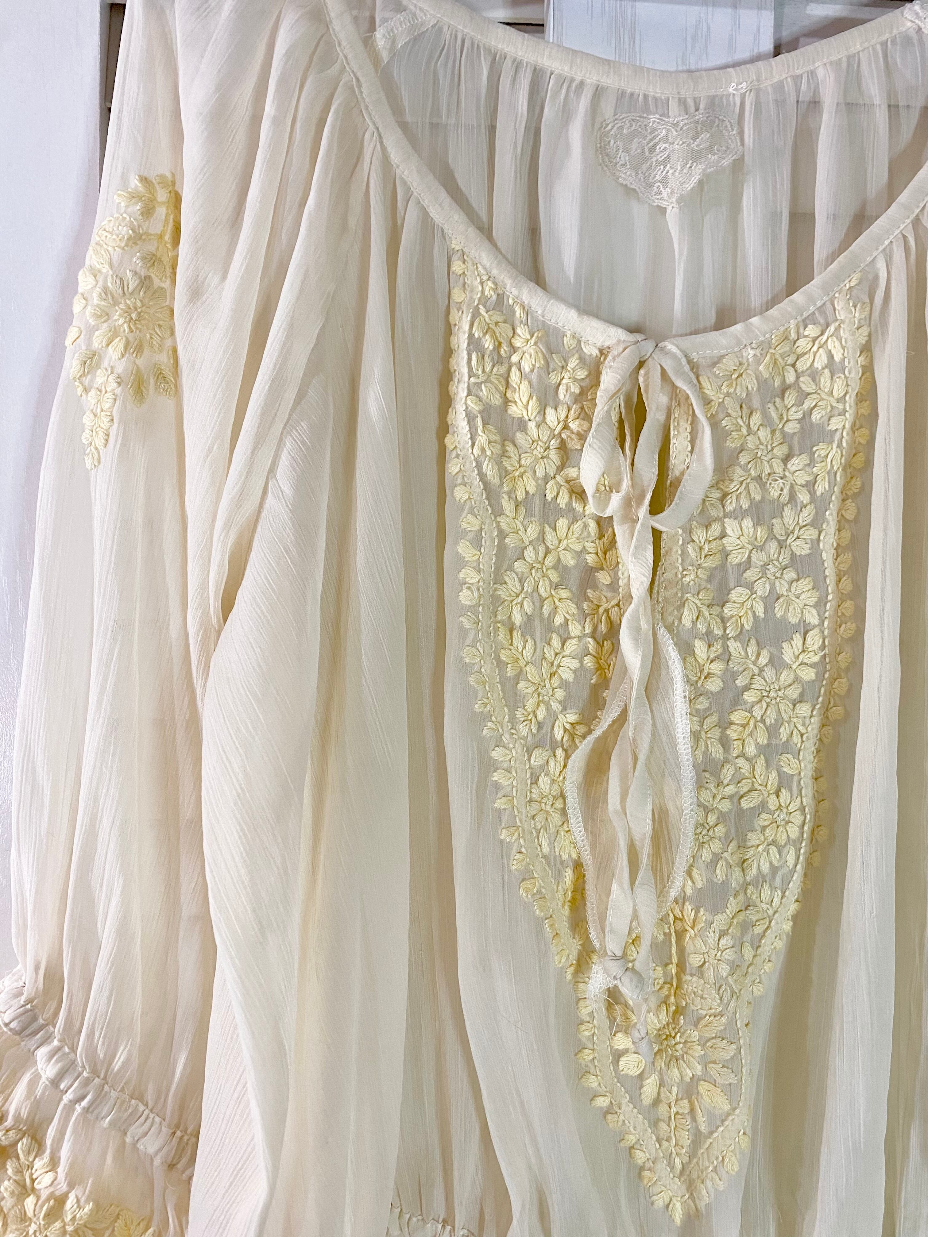 Royal party 楊柳シフォンジョーゼット インド刺繍チュニックブラウス クリーム