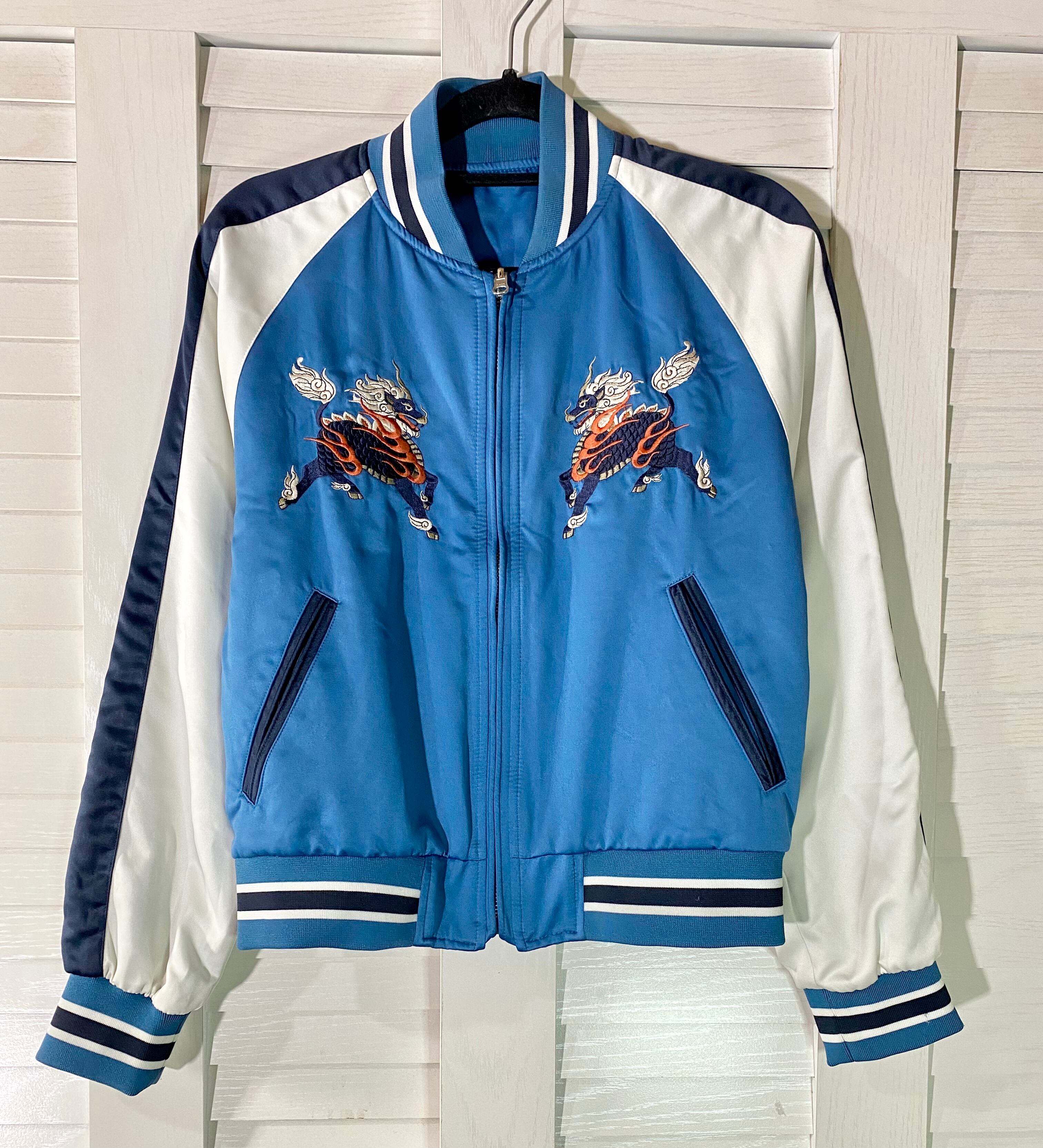BEAMS HEART 麒麟刺繍リバーシブルスカジャン ブルー