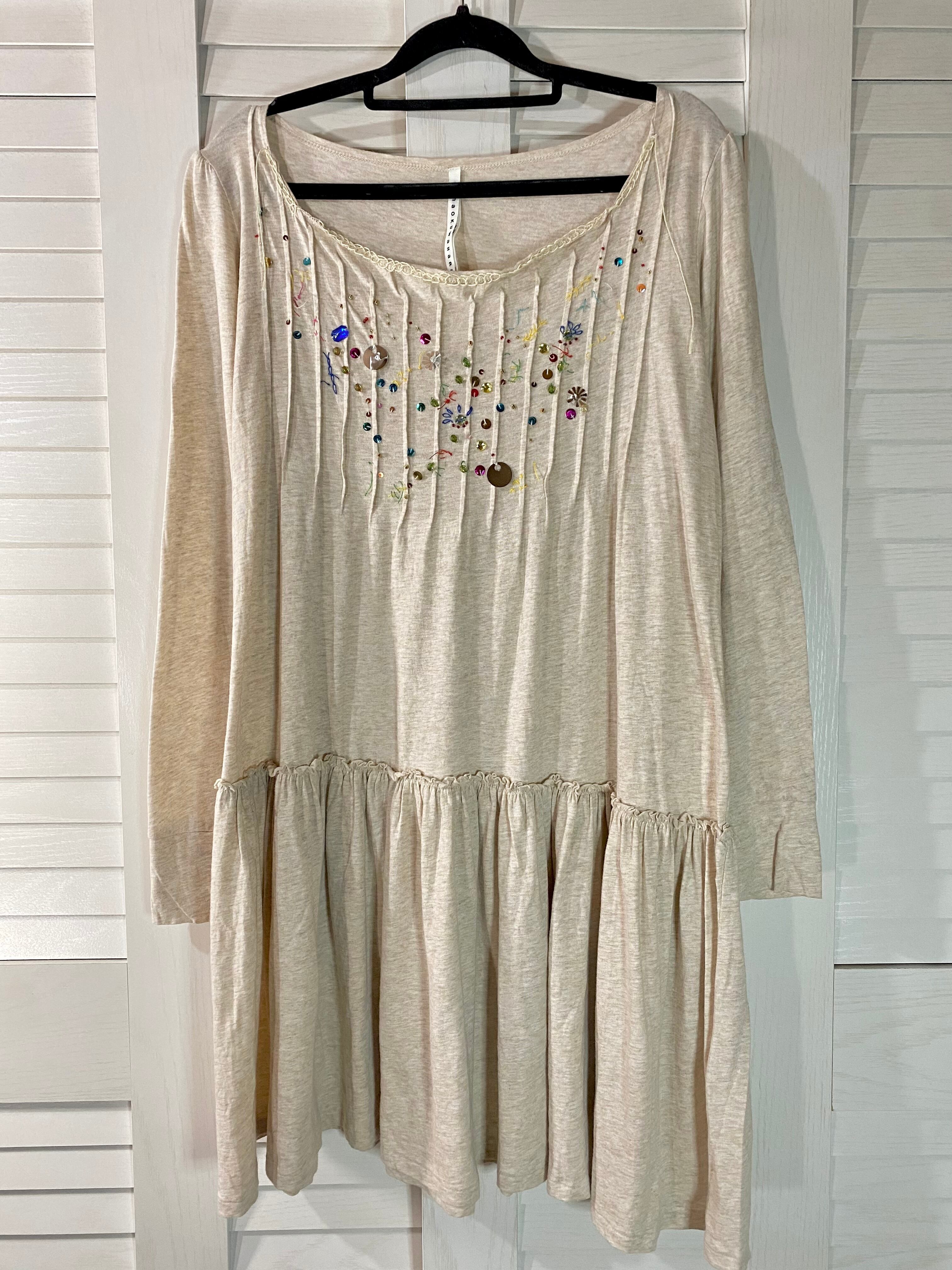 SUNAOKUWAHARA ピンタック スパン&刺繍カットソーワンピ オートミール | お洋服屋さん 『GOKKO』
