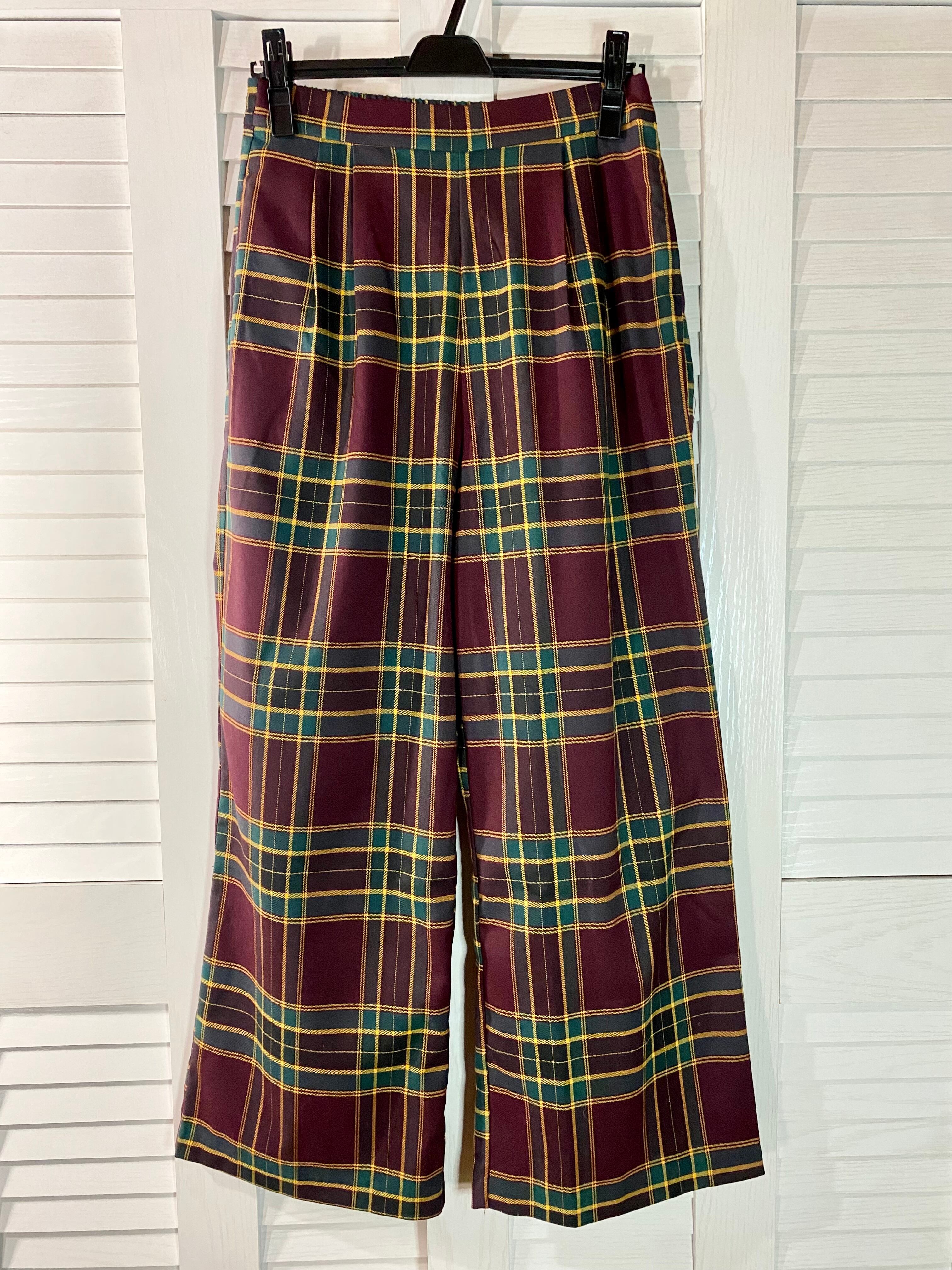 and Me トラディショナルチェック 2タック ストレッチワイドパンツ ボルドー