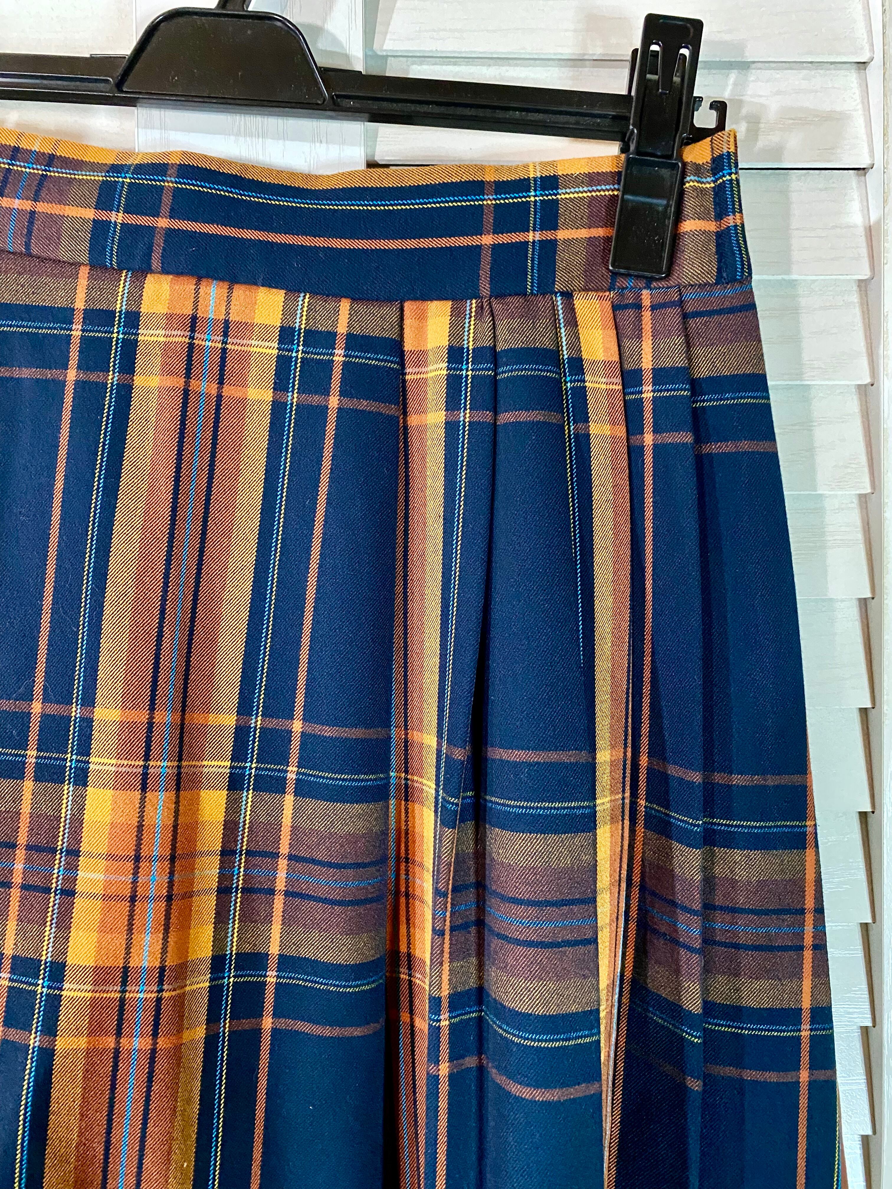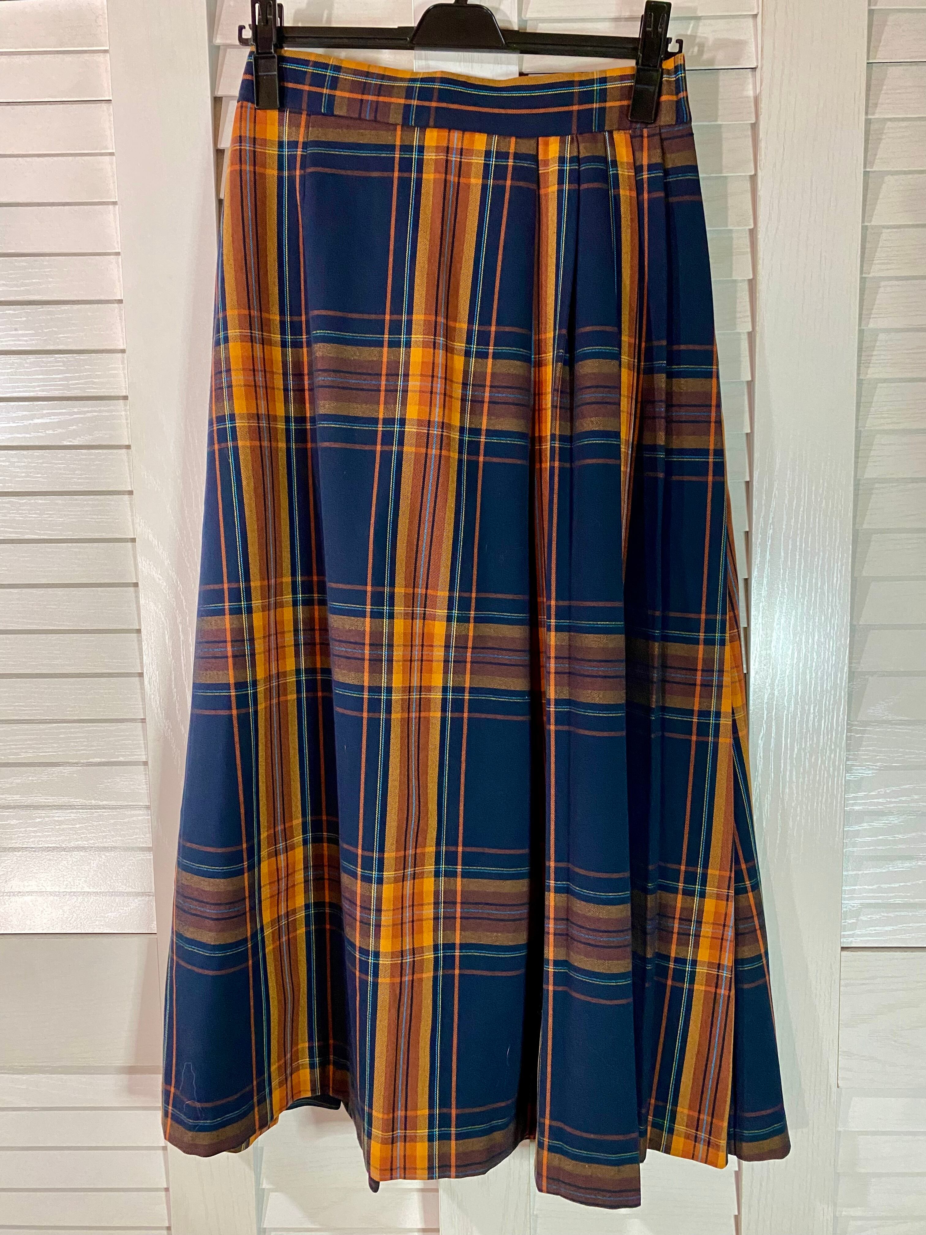 coen タータンチェック ストレッチレーヨンポリ変形プリーツスカート オレンジネイビー
