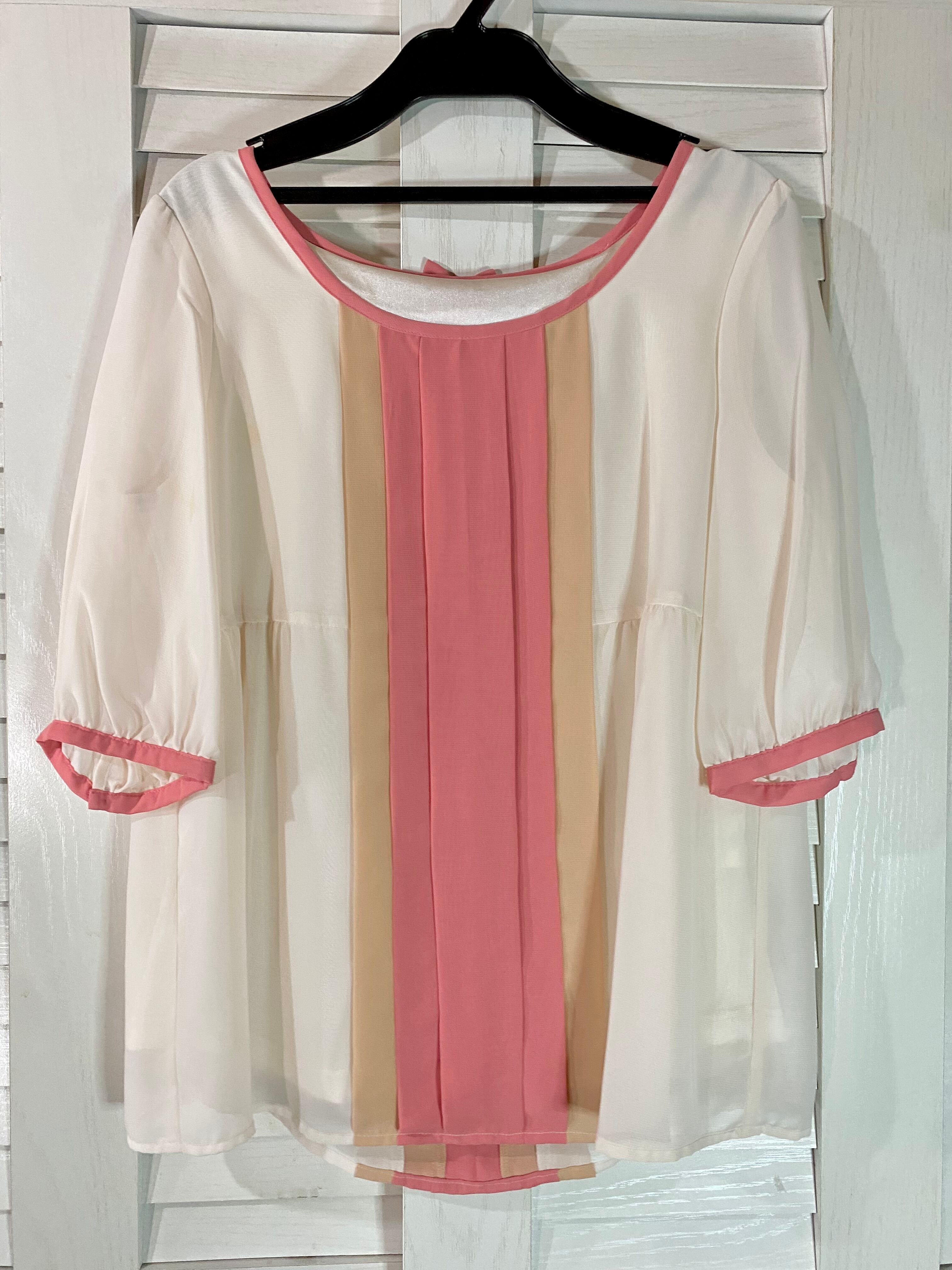 【デザインサンプル】グラデーションプリーツ ジョーゼットブラウス ピンク
