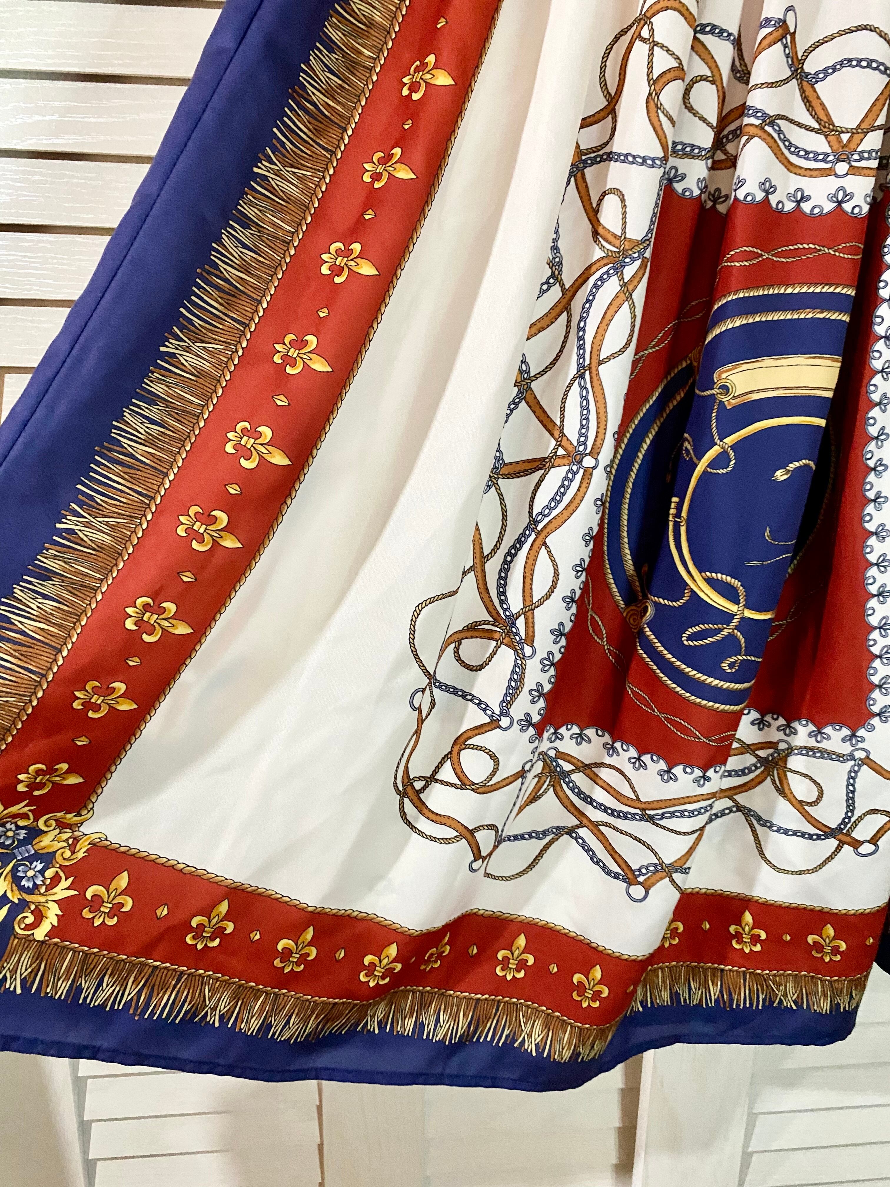 niko and… スカーフ柄パネルプリントギャザーフレアースカート ネイビー