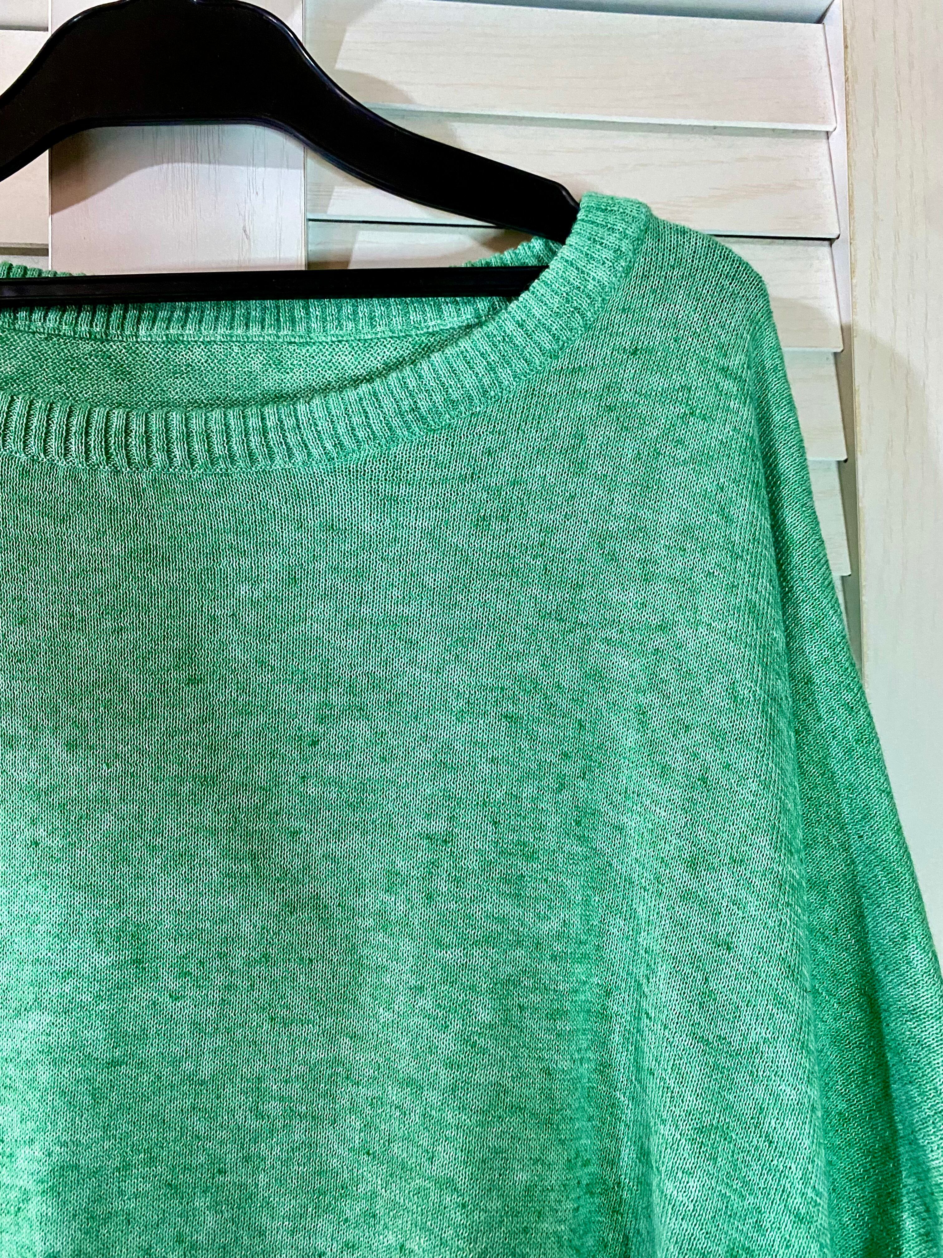 espace de calma レーヨンリネン ミックスヤーン半袖ニットワンピ エメラルドグリーン