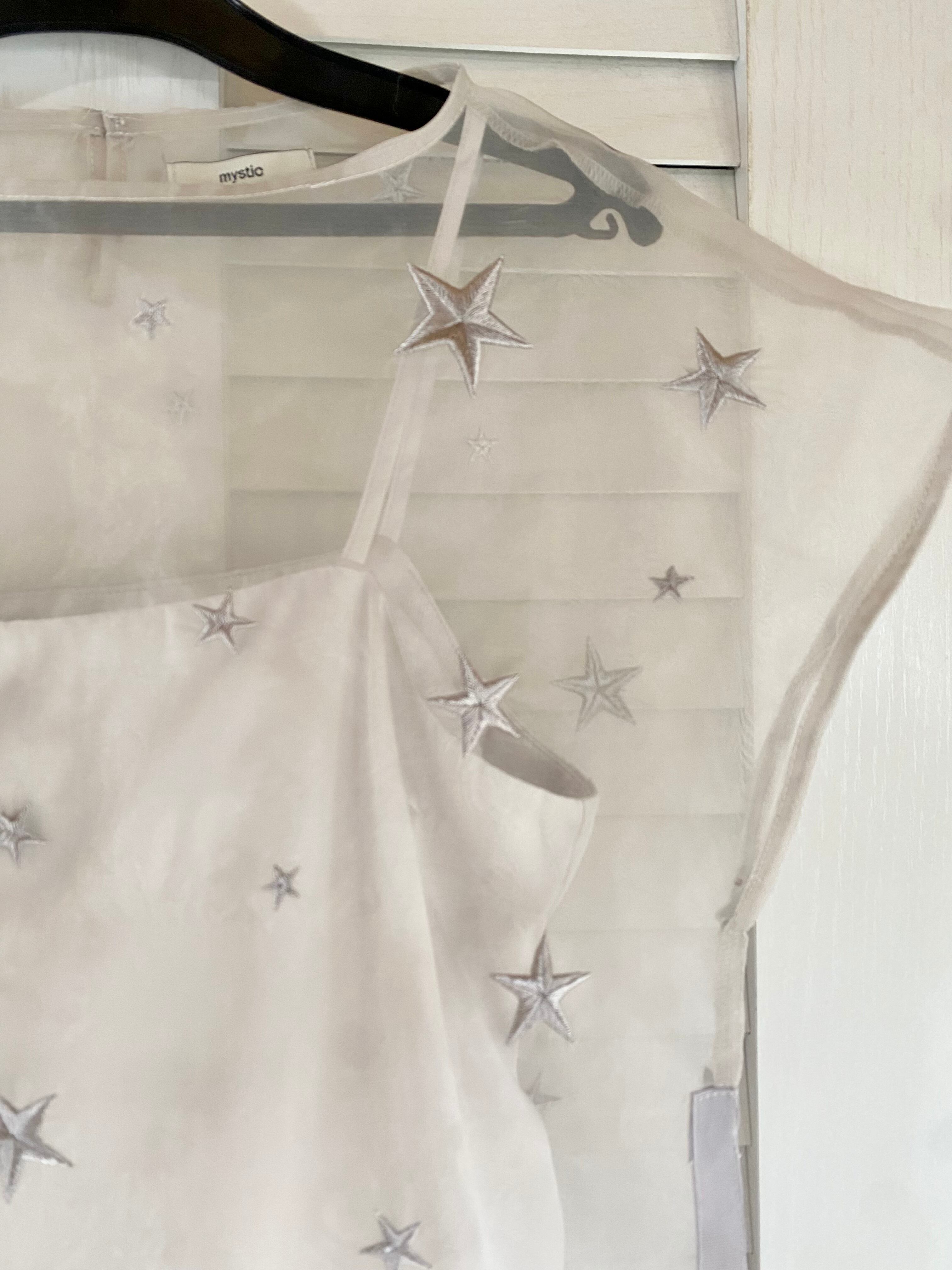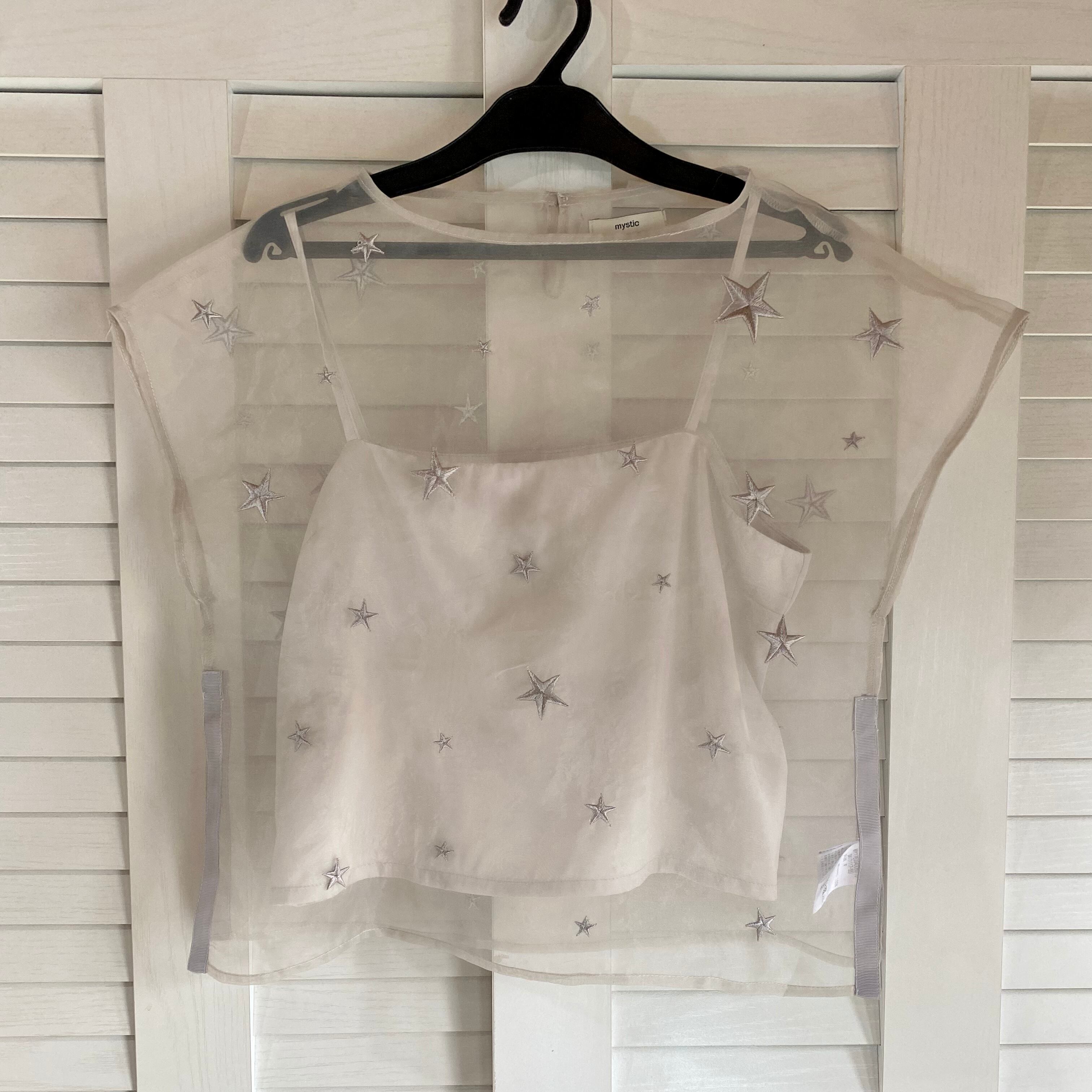 mystic スター刺繍オーガン フレンチスリーブプルオーバーブラウス インナーキャミ付き グレーベージュ