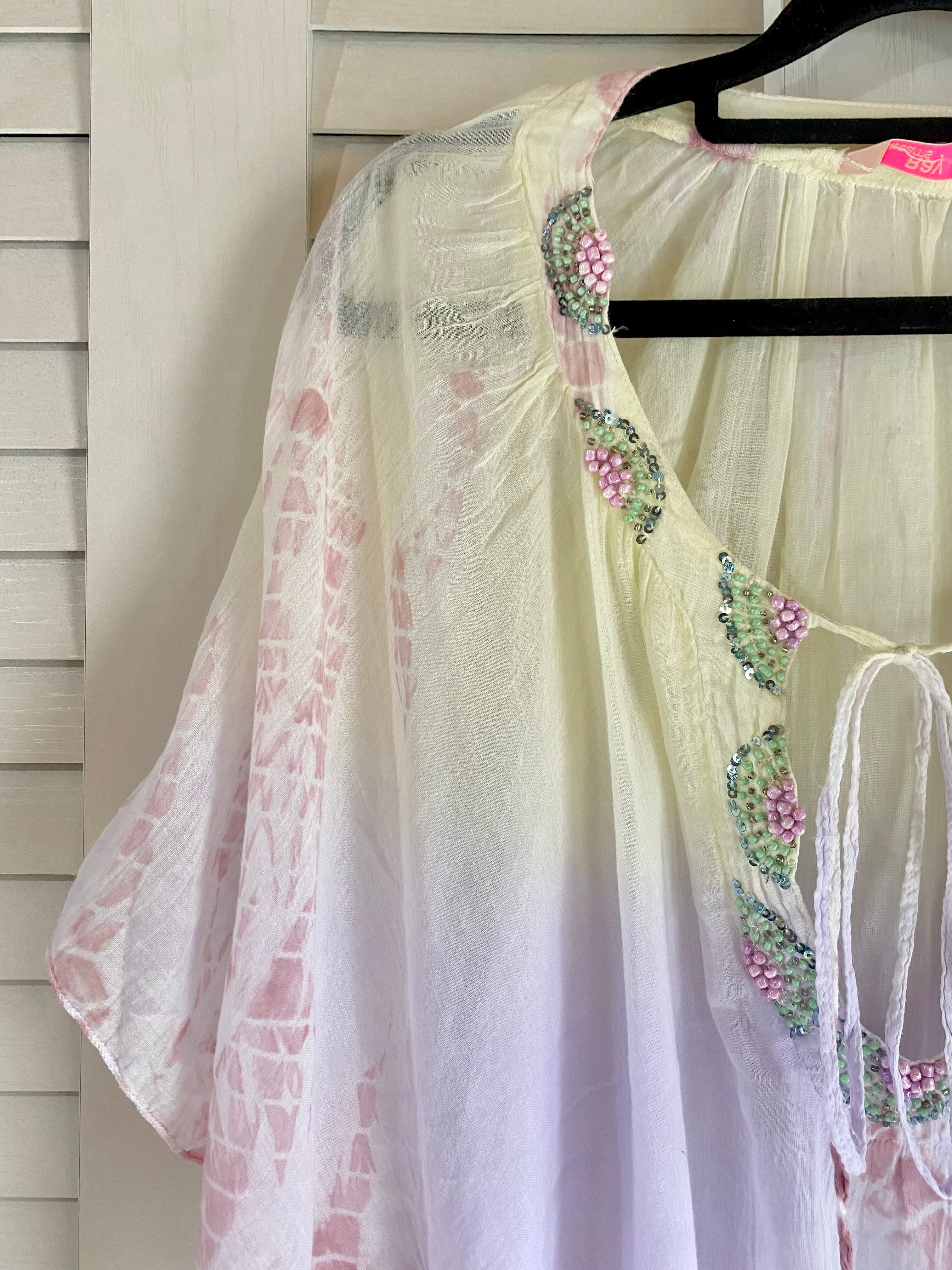 ゆっこさん専用◎Ray BEAMS グラデーション染め&ビーズ刺繍 インドコットンチュニックブラウス パープル