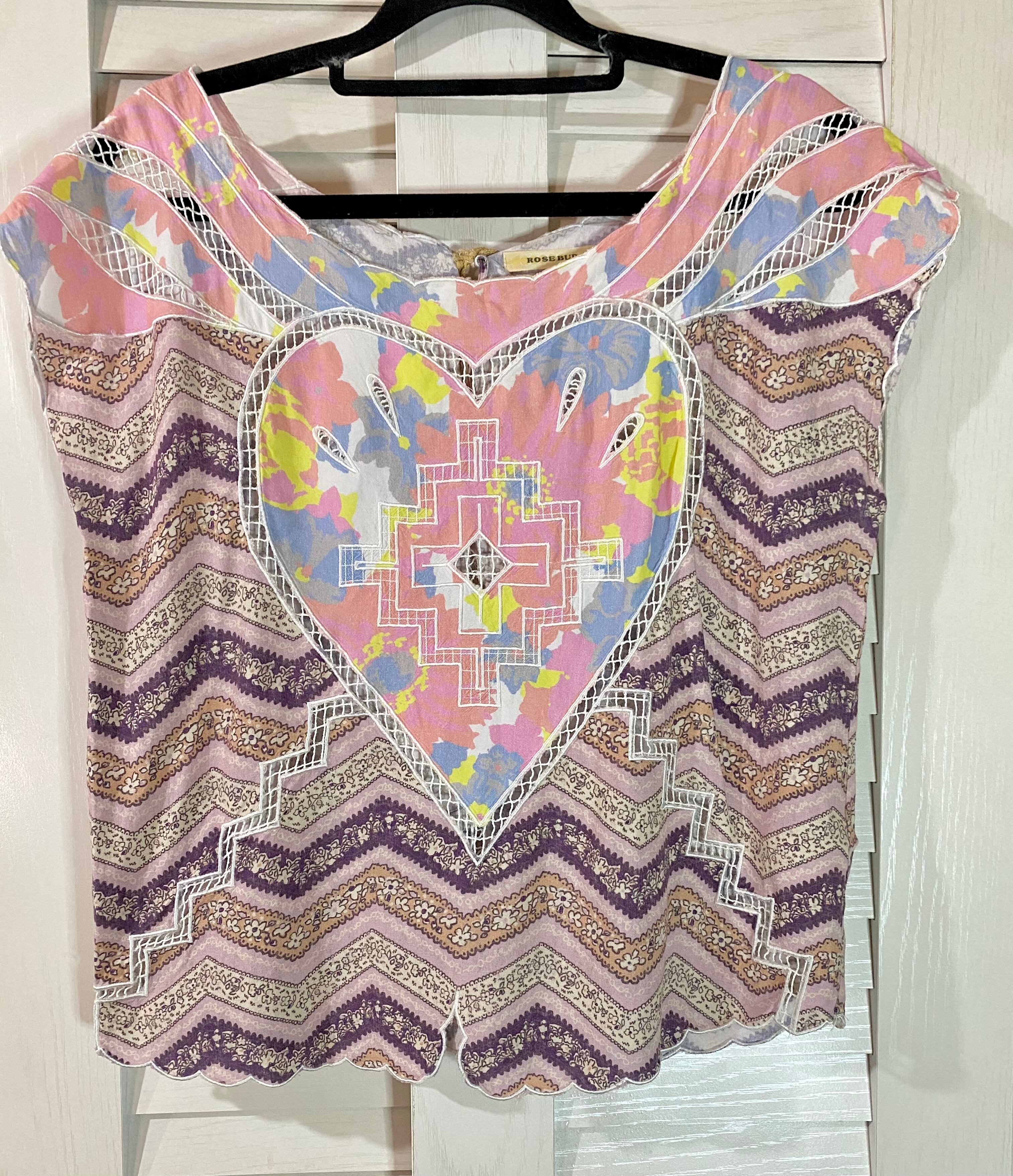 ROSE BUD ハートレース切替 フレンチスリーブブラウス ピンク