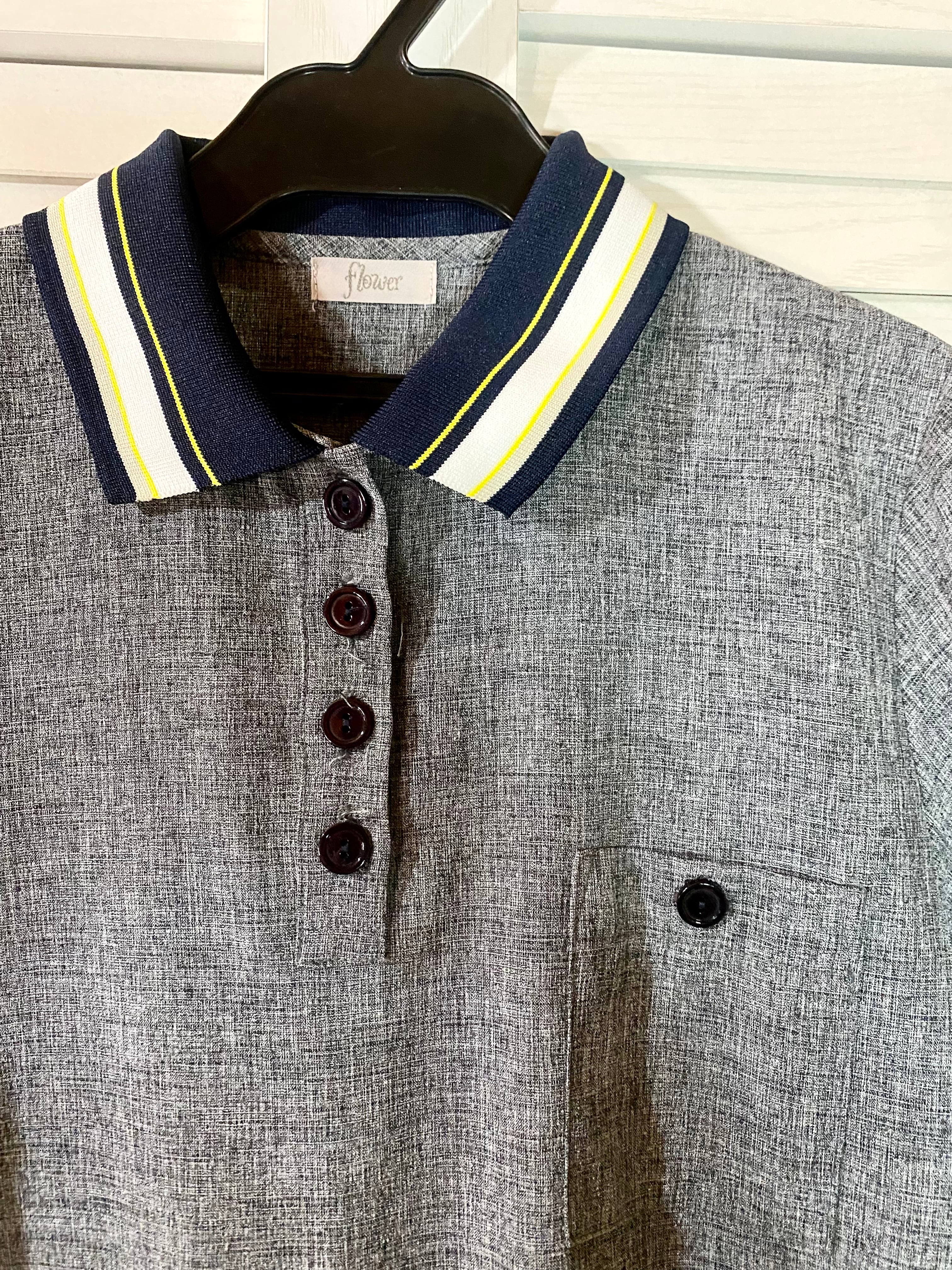 flower スポーティーラインポロカラー ストレッチ 布帛ワンピ グレー | お洋服屋さん 『GOKKO』