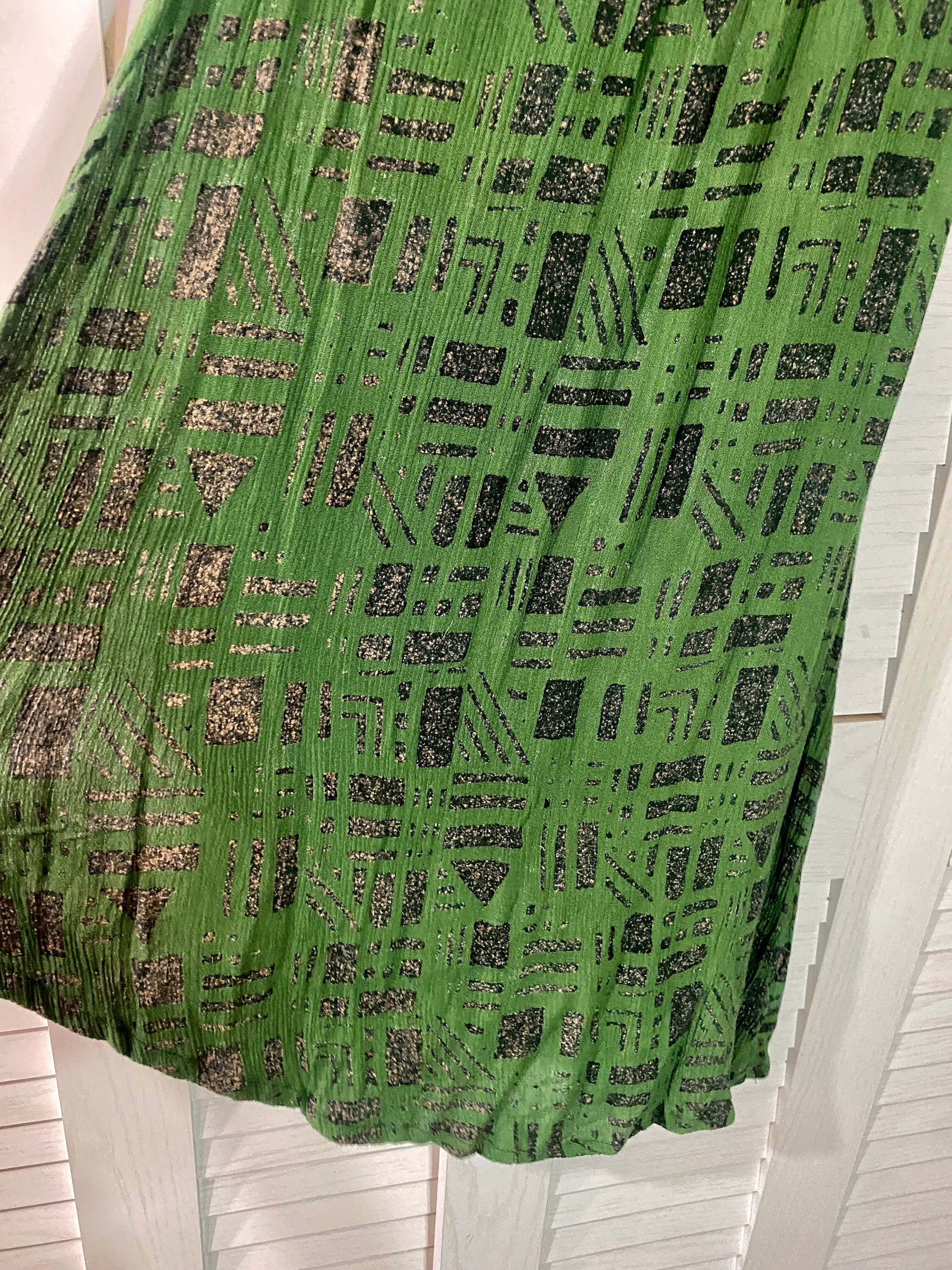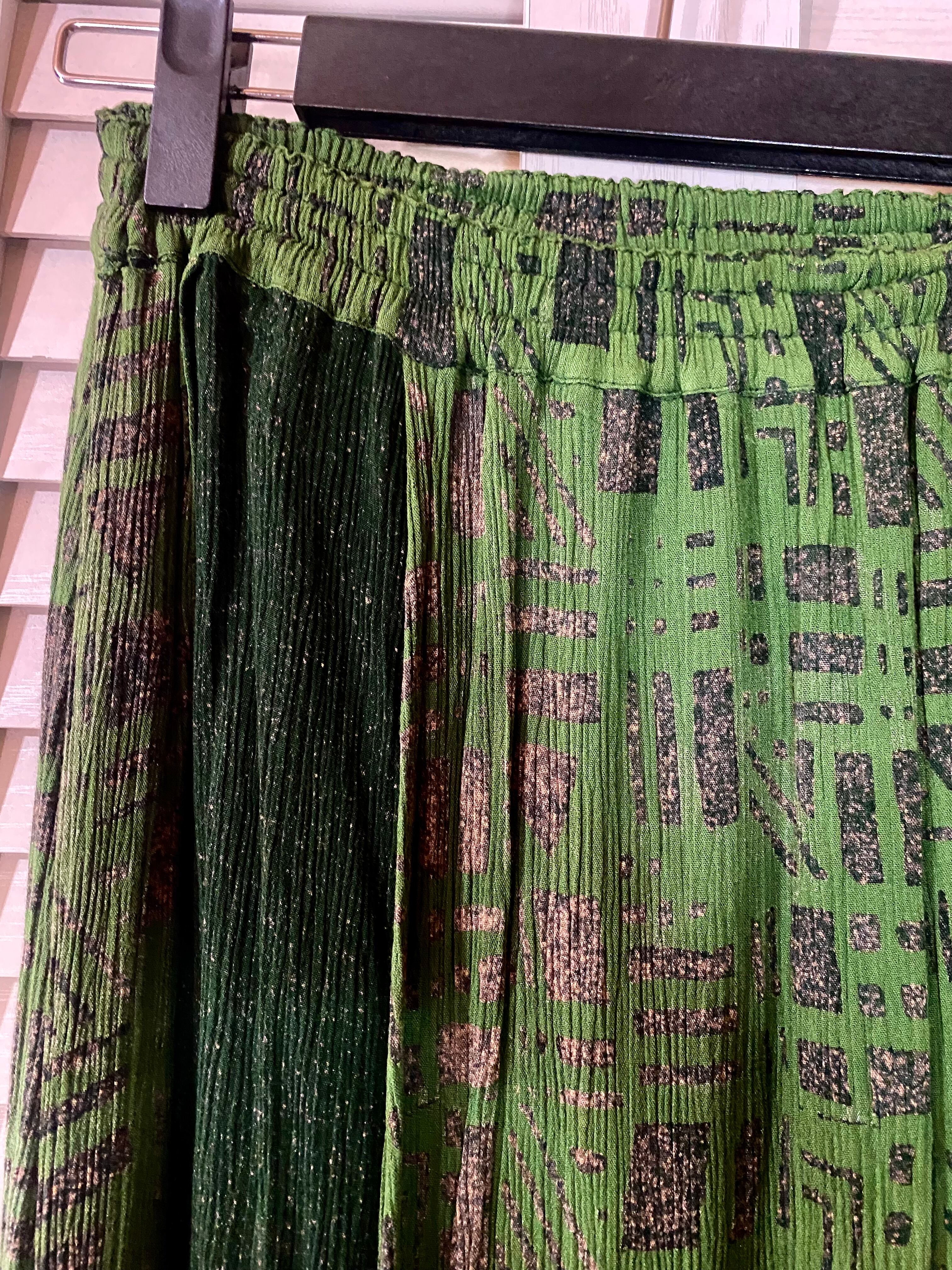ACUTE 楊柳インドレーヨン ジオメトリック グリーンコンビ ラップ風スカート