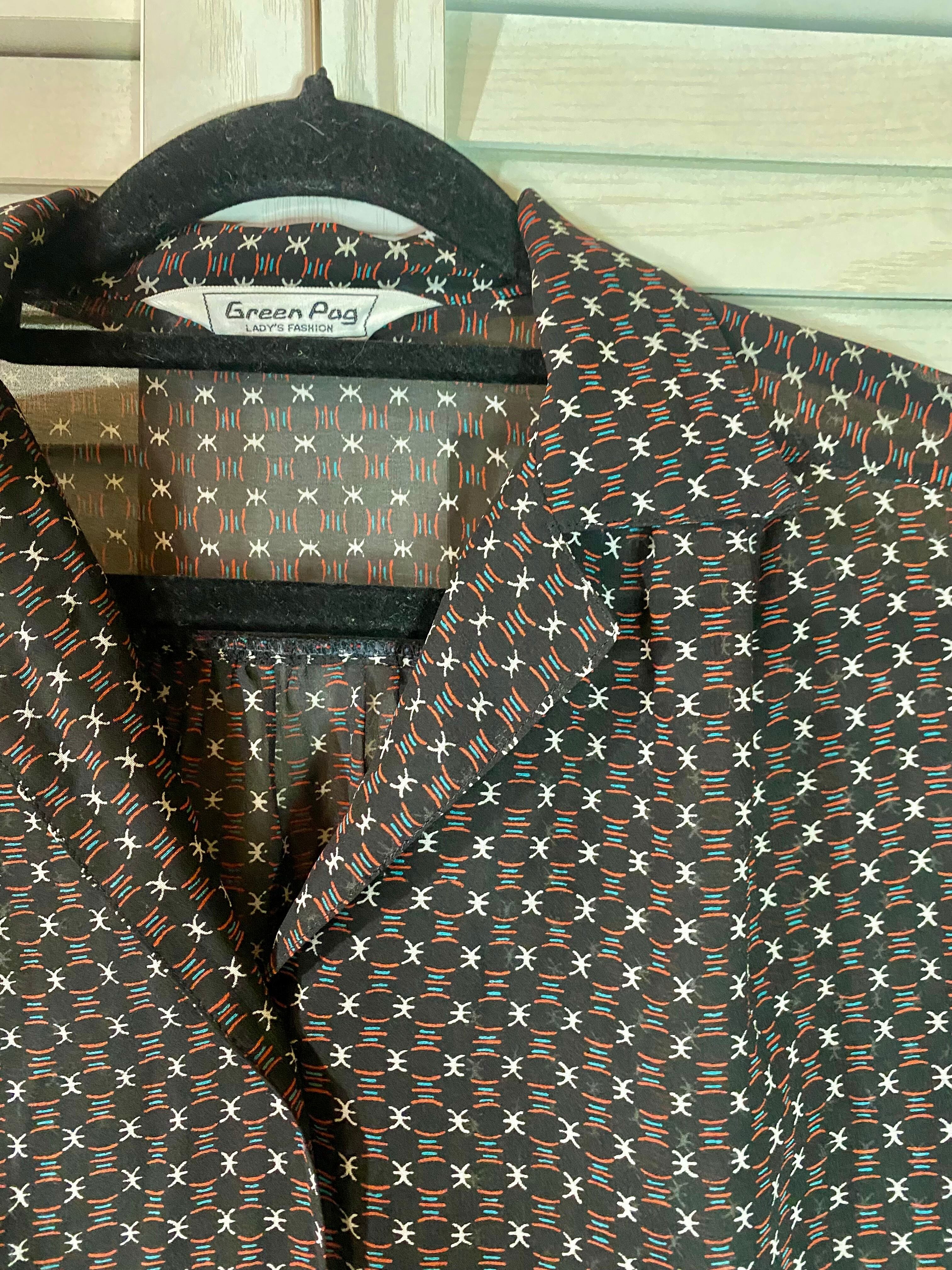【国産古着】70Sヴィンテージ 激カワプリント!!シアーブラウス ブラック | お洋服屋さん 『GOKKO』