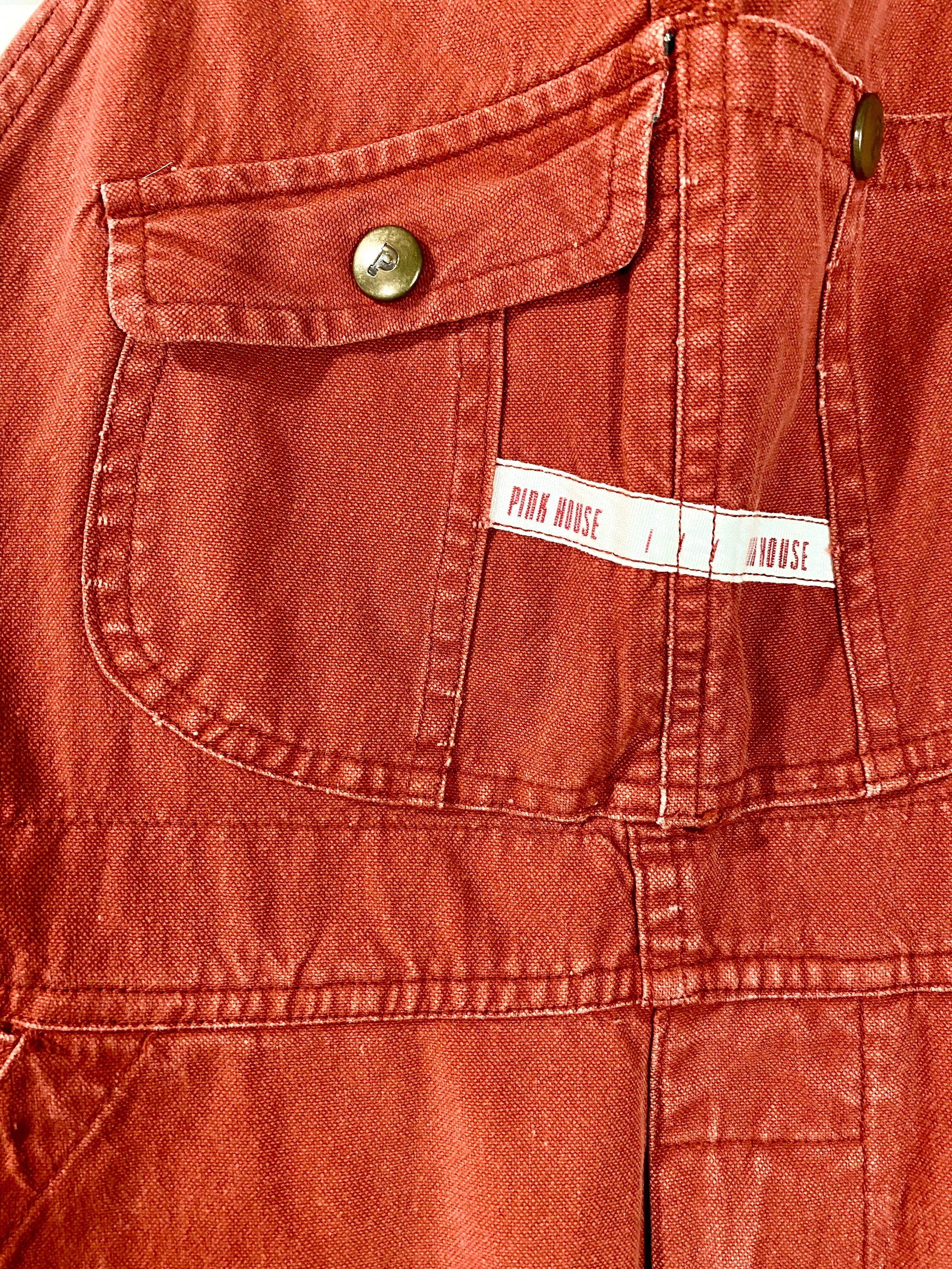 PINK HOUSE 激レア!完品!古着屋購入USED カラーデニムオーバーオール タータンチェック裏地付き レッド