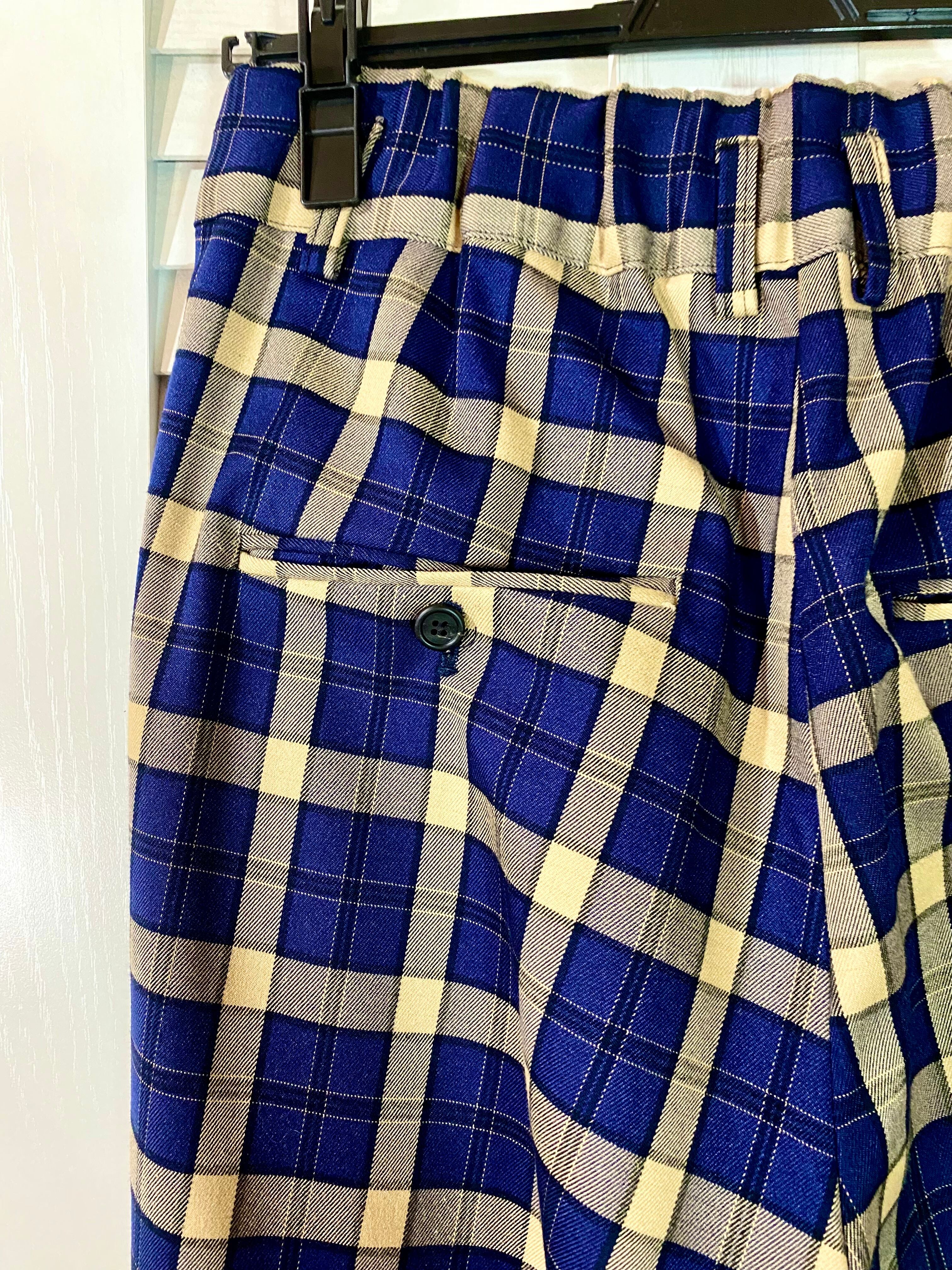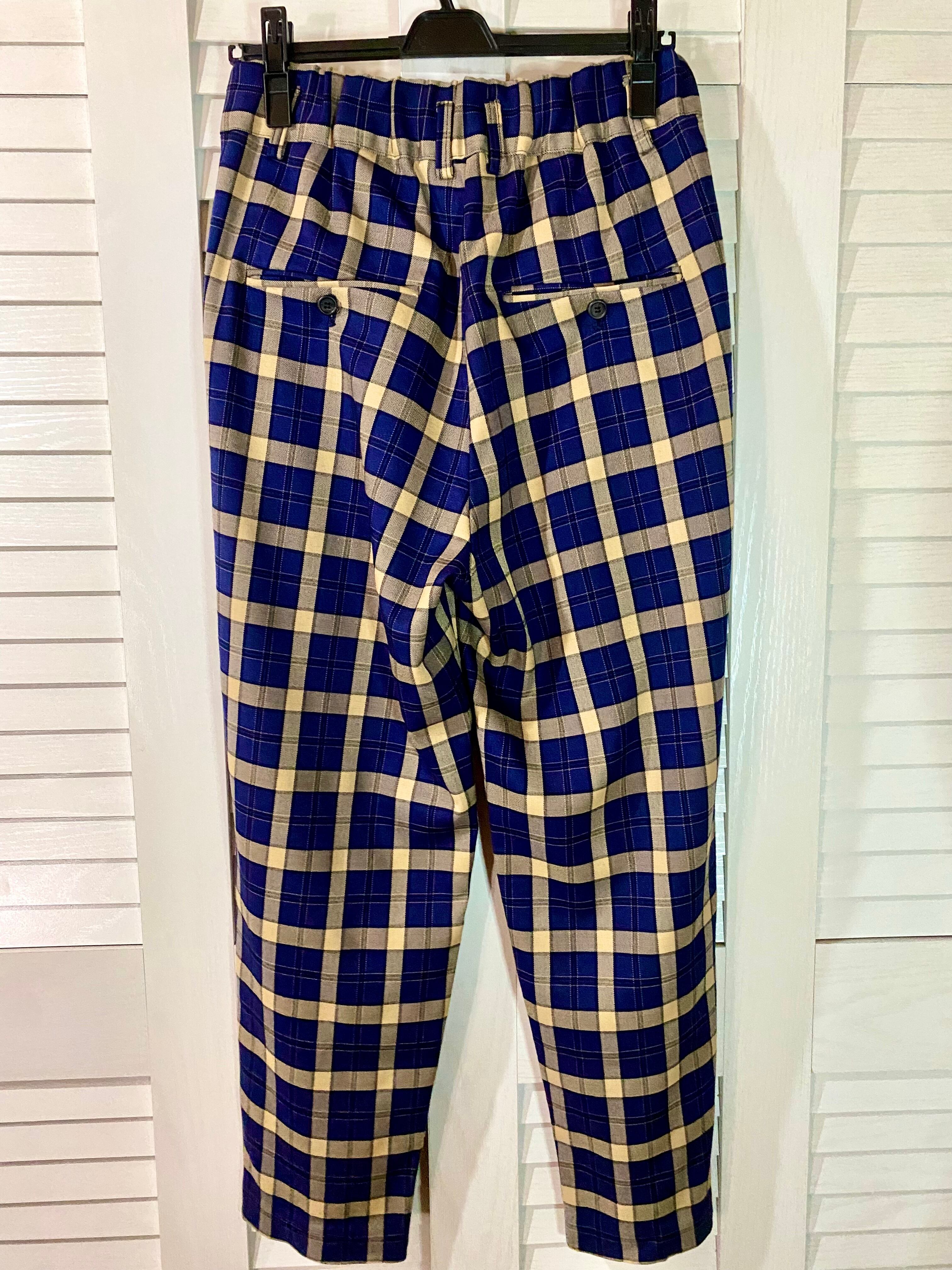 Lui's タータンチェック ツータック テーパードパンツ ネイビー×ベージュ