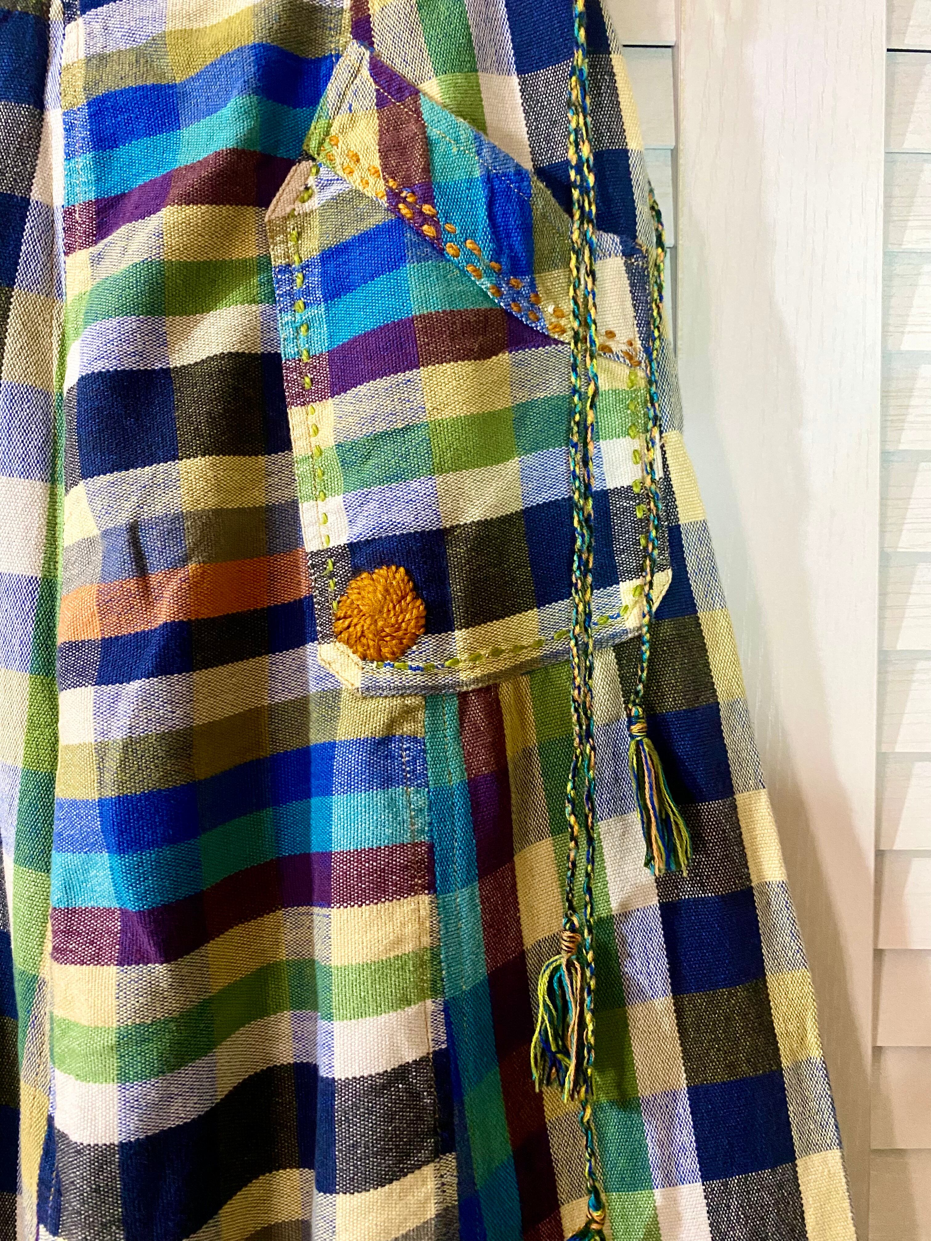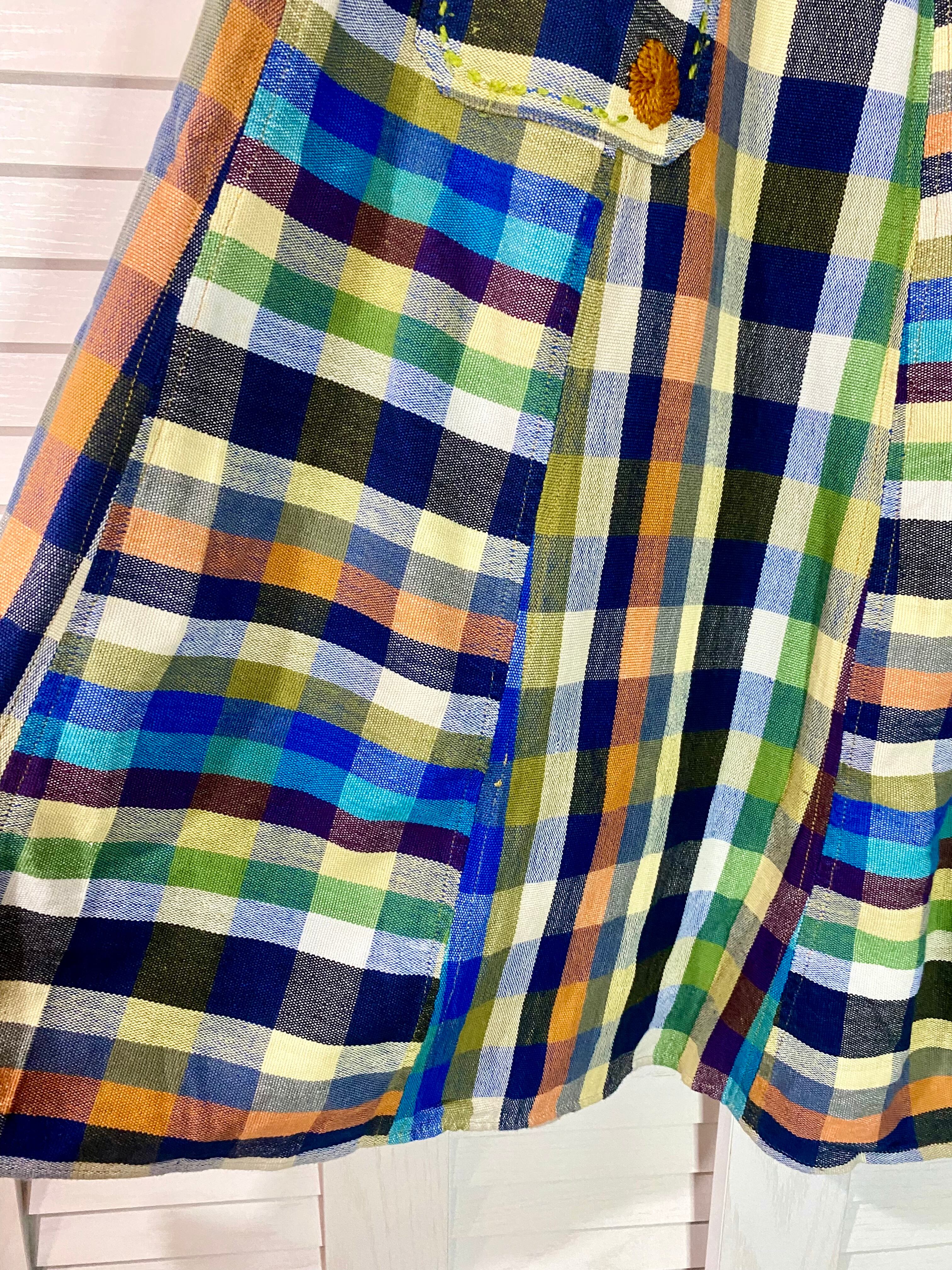 Amina マルチチェック パッチワーク&刺繍 コットンフレアースカート
