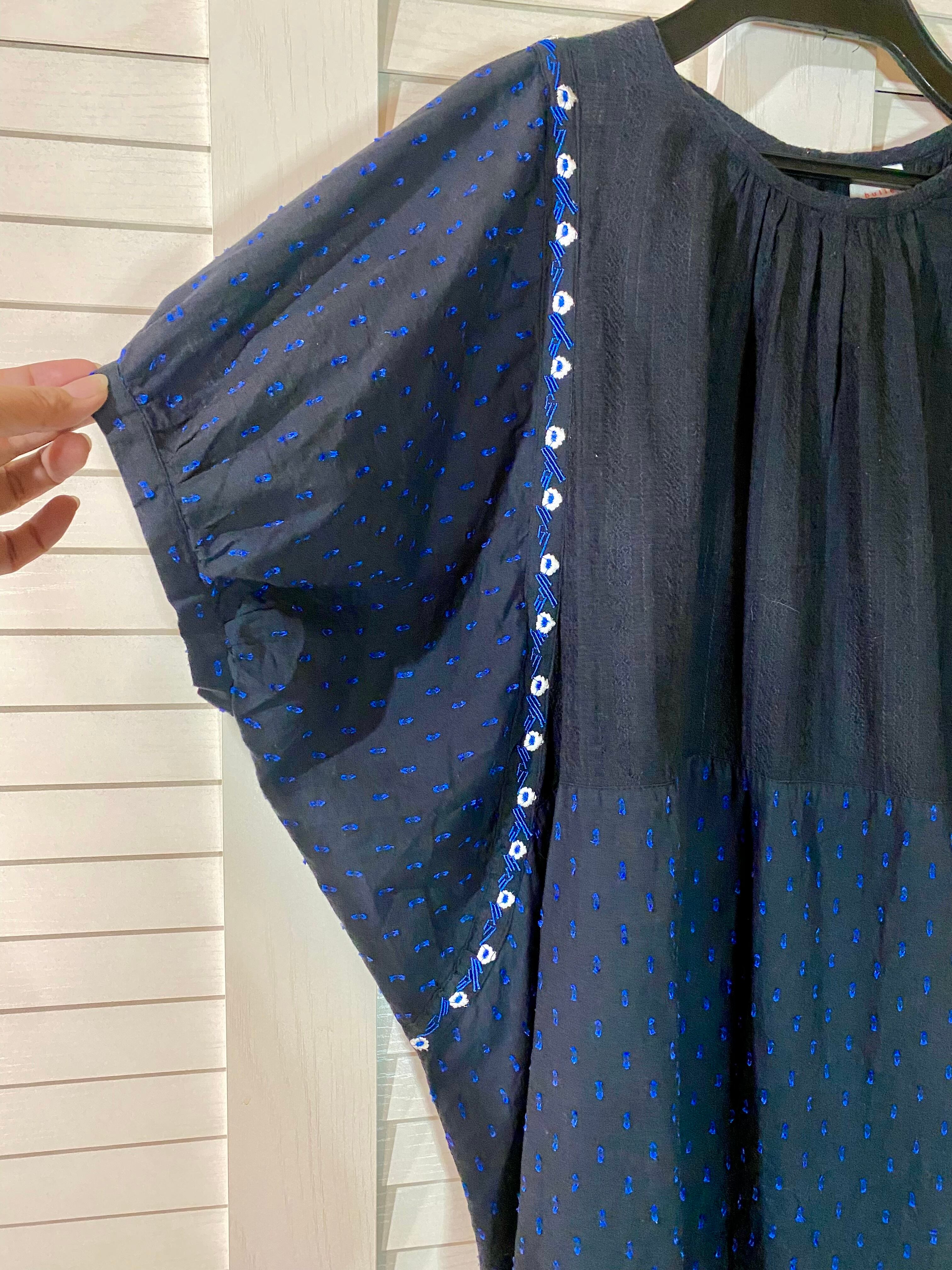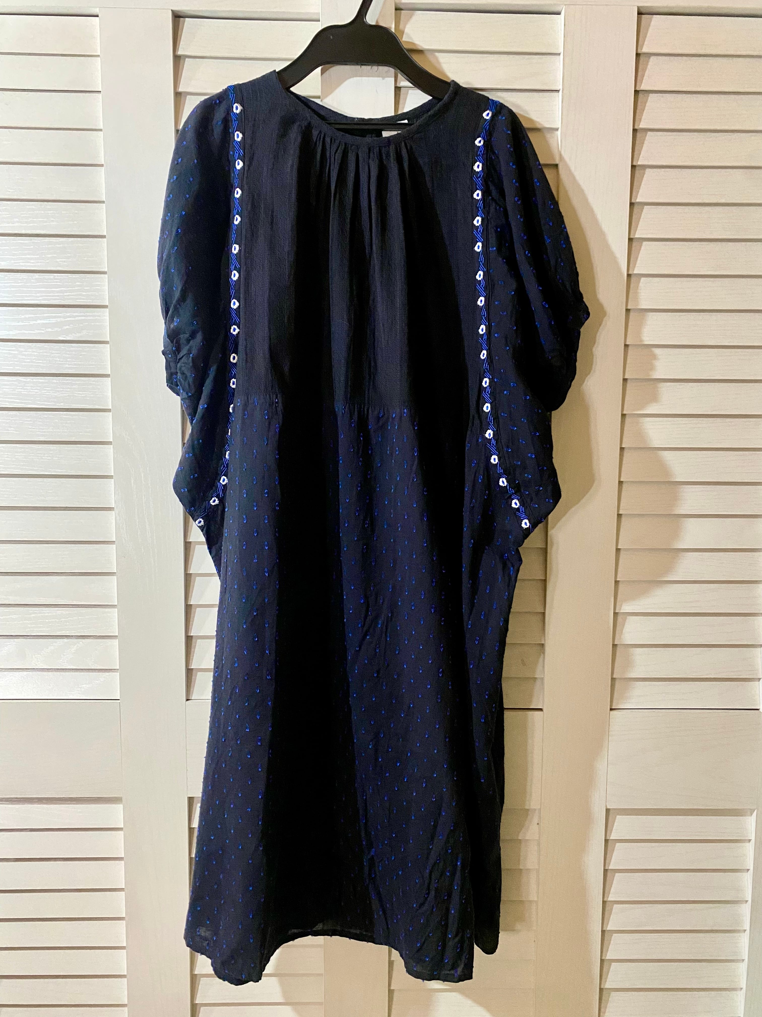 bulle de savon ブルードビードット&刺繍 変形チュニックワンピ ブラック