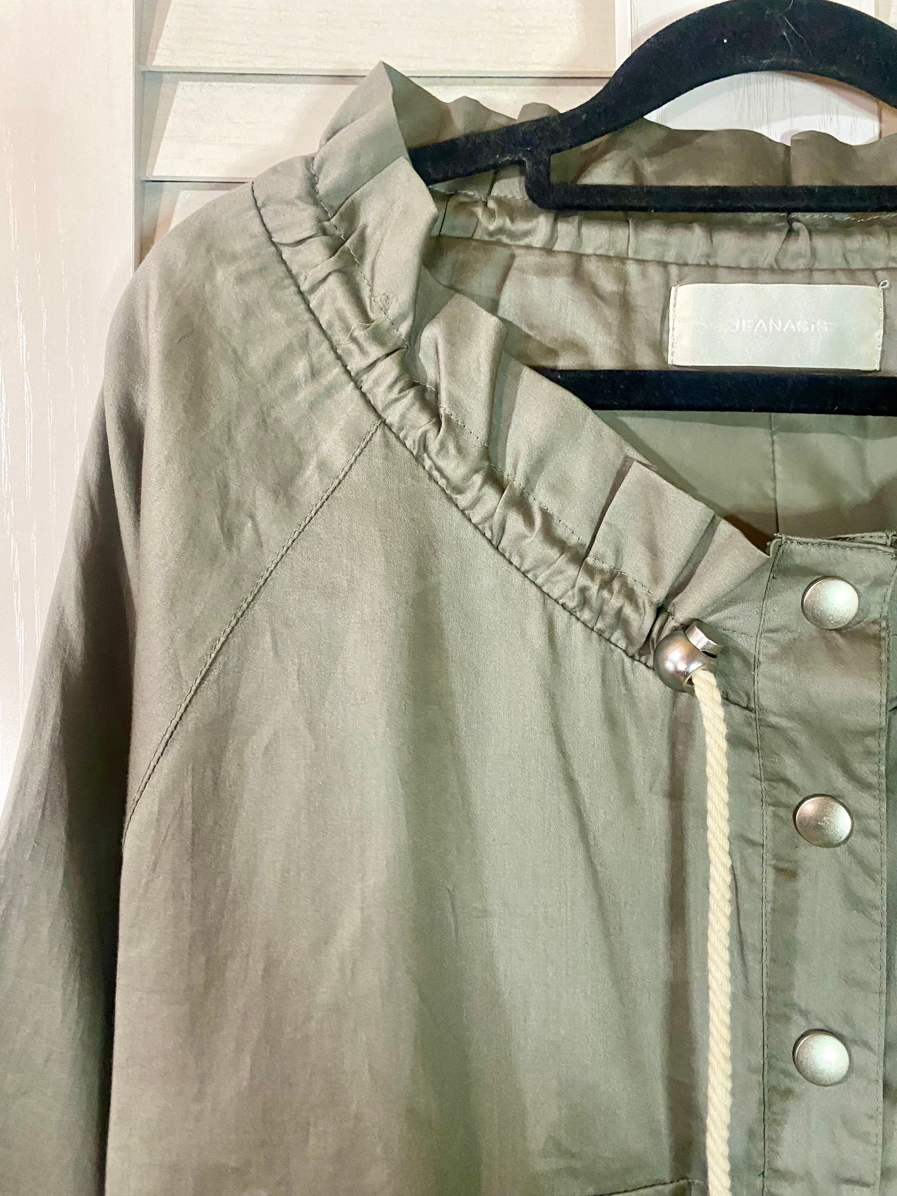 JEANASIS コットンサテン ドロストロデザイン ライトブルゾン カーキグレー