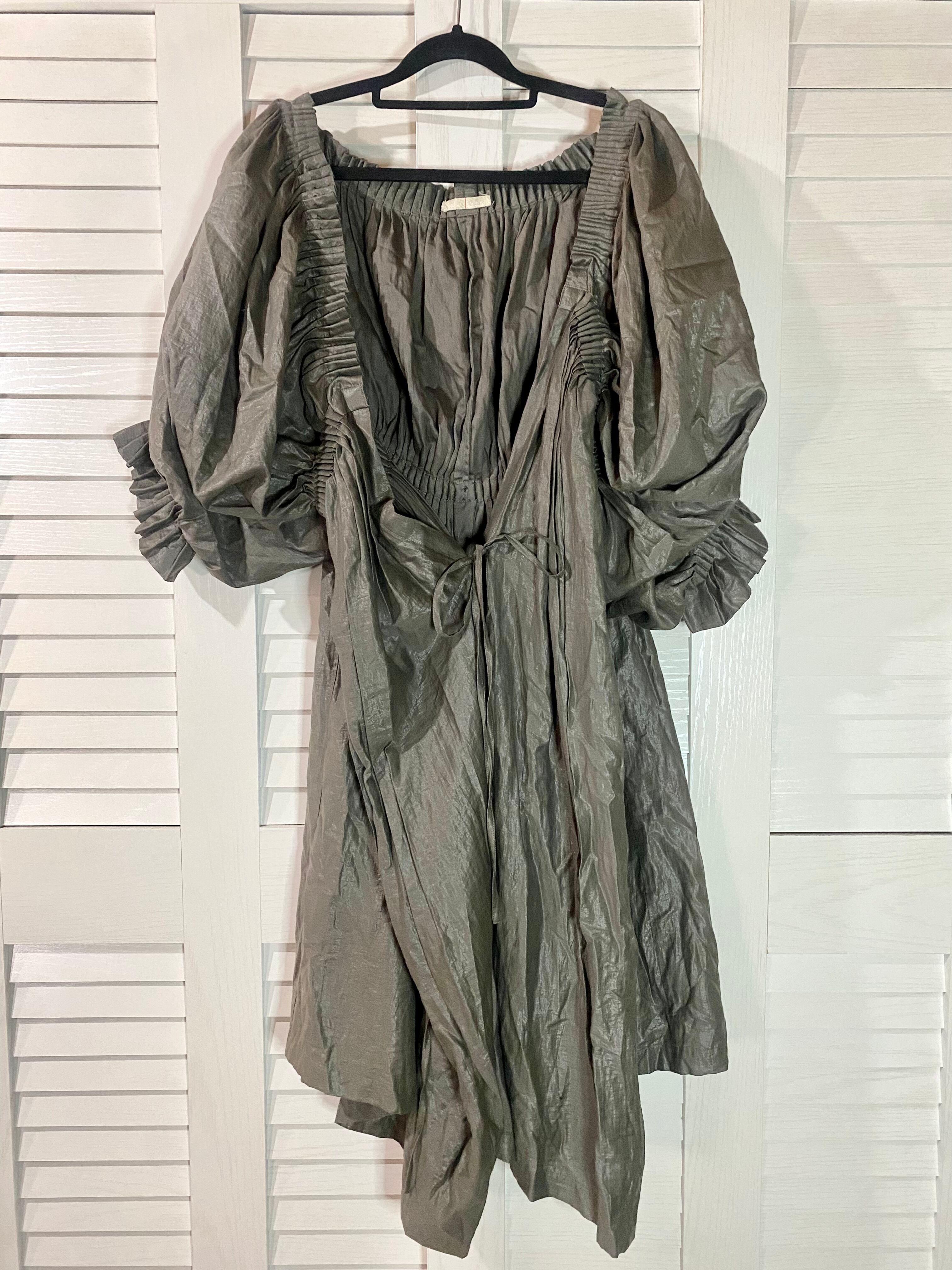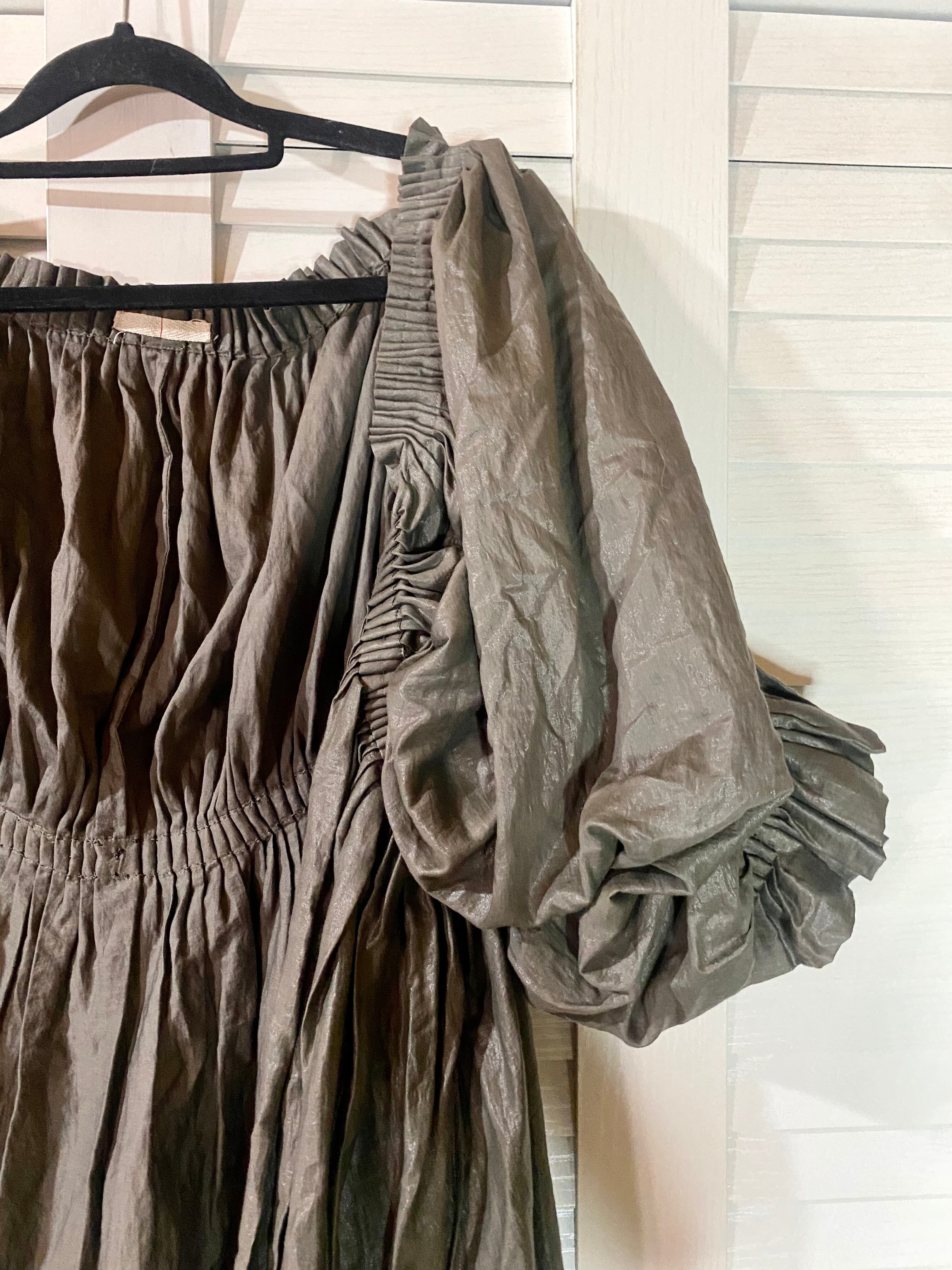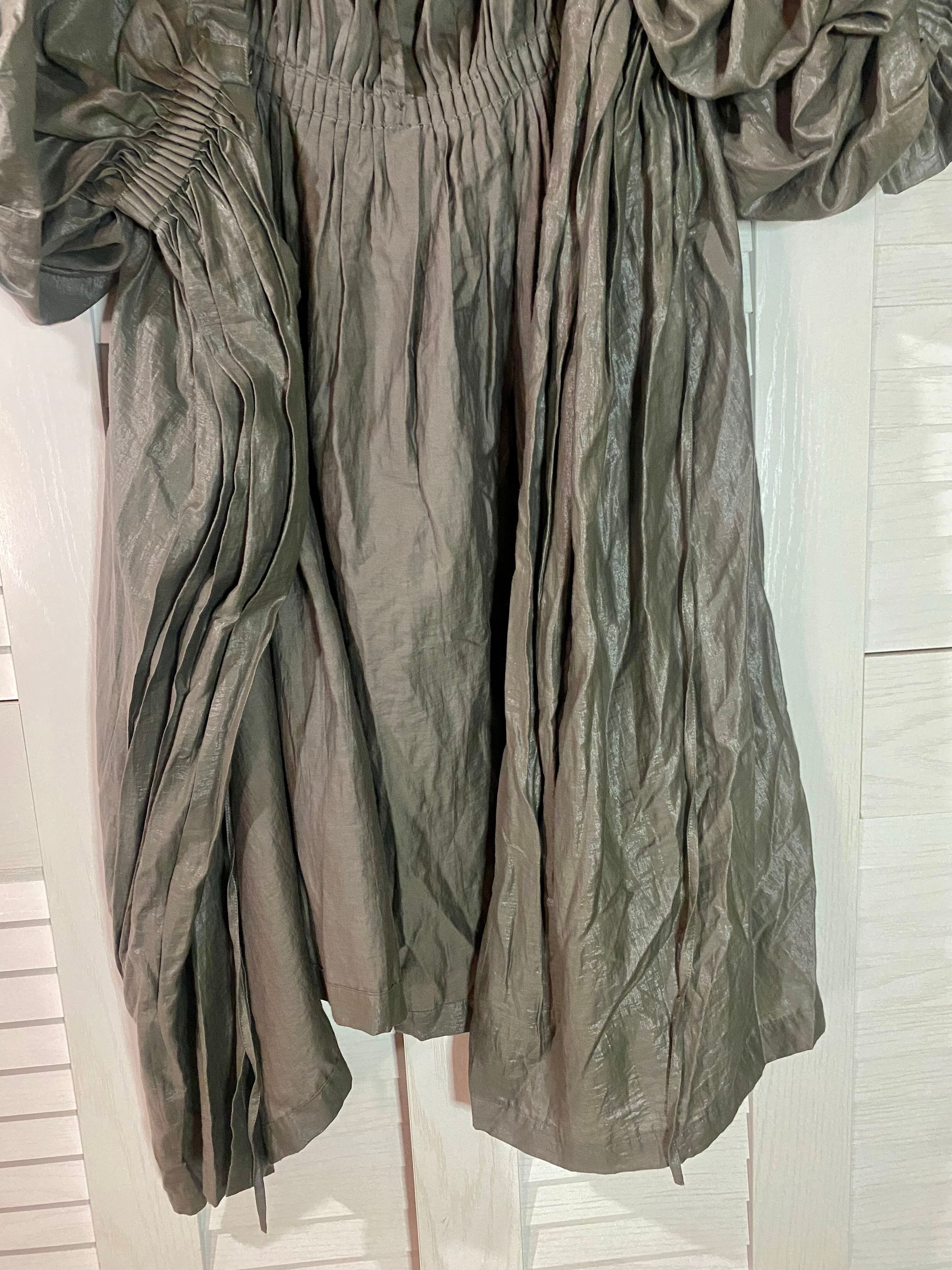 はなざぶ専用◎setaichiro 激レア!プリーツモチーフ ボリュームスリーブ コットンレーヨン変形デザイン ガウンワンピ カーキグレー