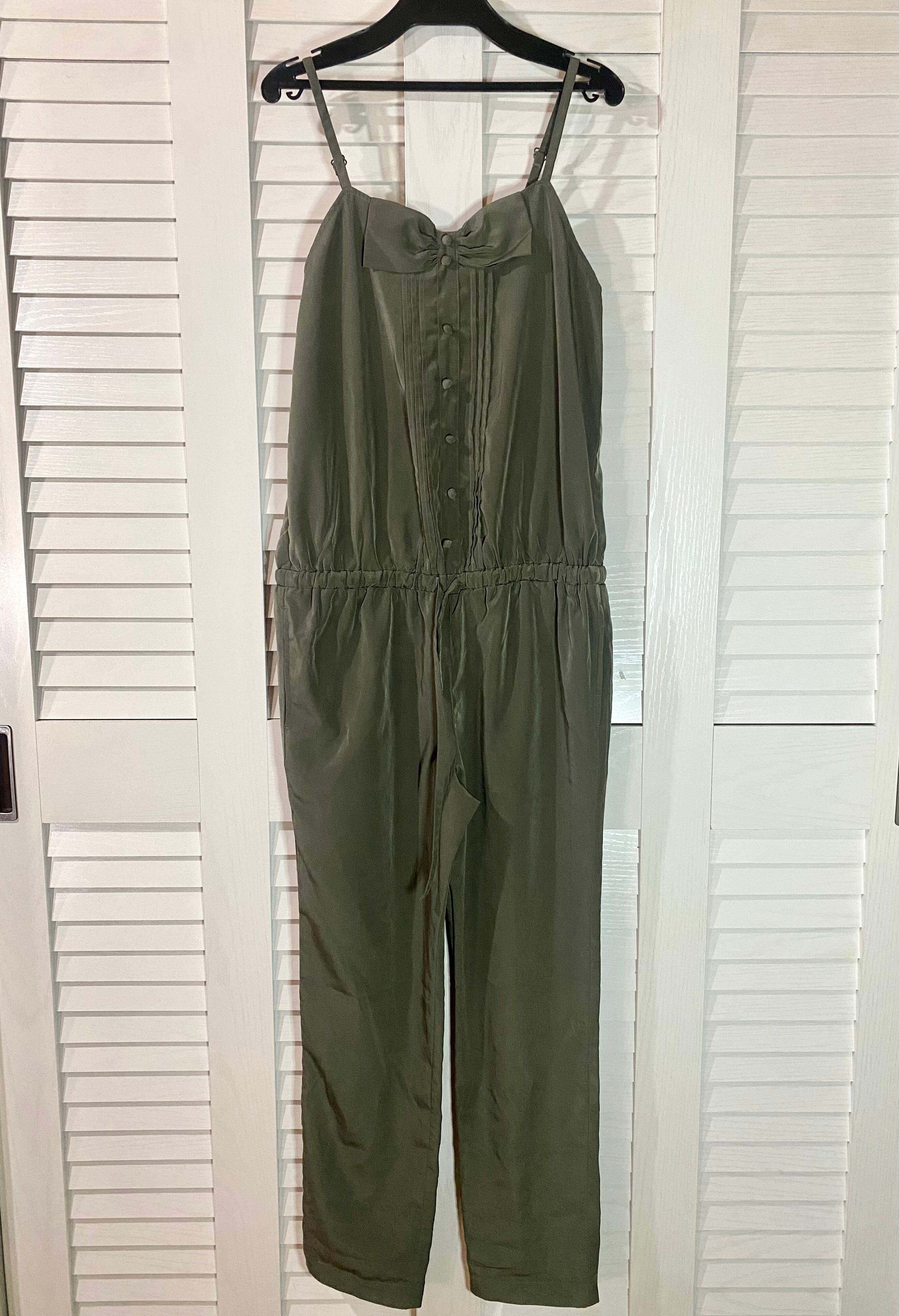 After all シャンブレーサテン ピンタック&リボン サロペットパンツ カーキ