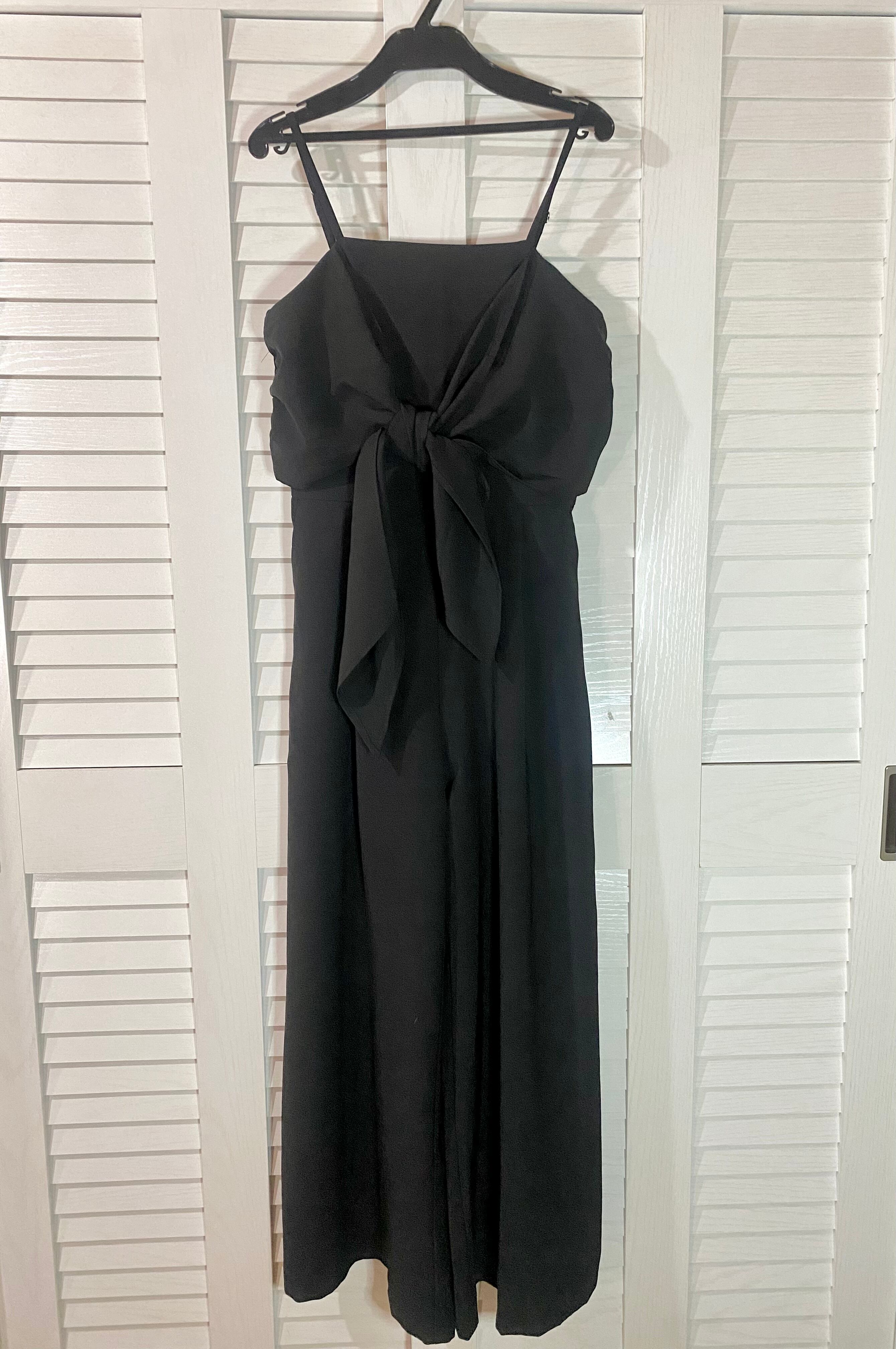 pumpkin PORT ストレッチジョーゼット リボンデザイン サロペットワイドパンツ ブラック