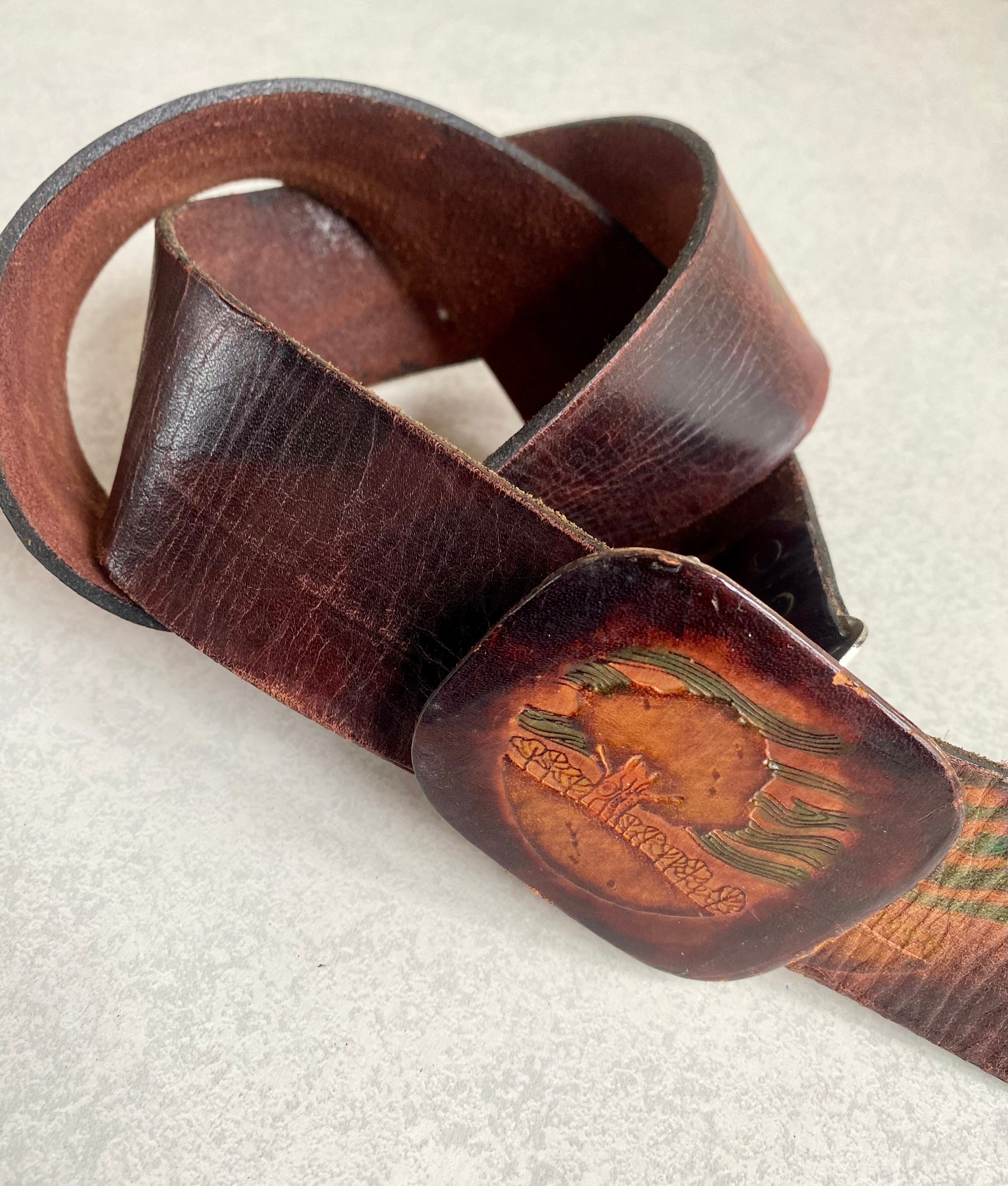 #1【古着屋購入】70Sヴィンテージ 本革型押し ダークブラウングラデーションベルト