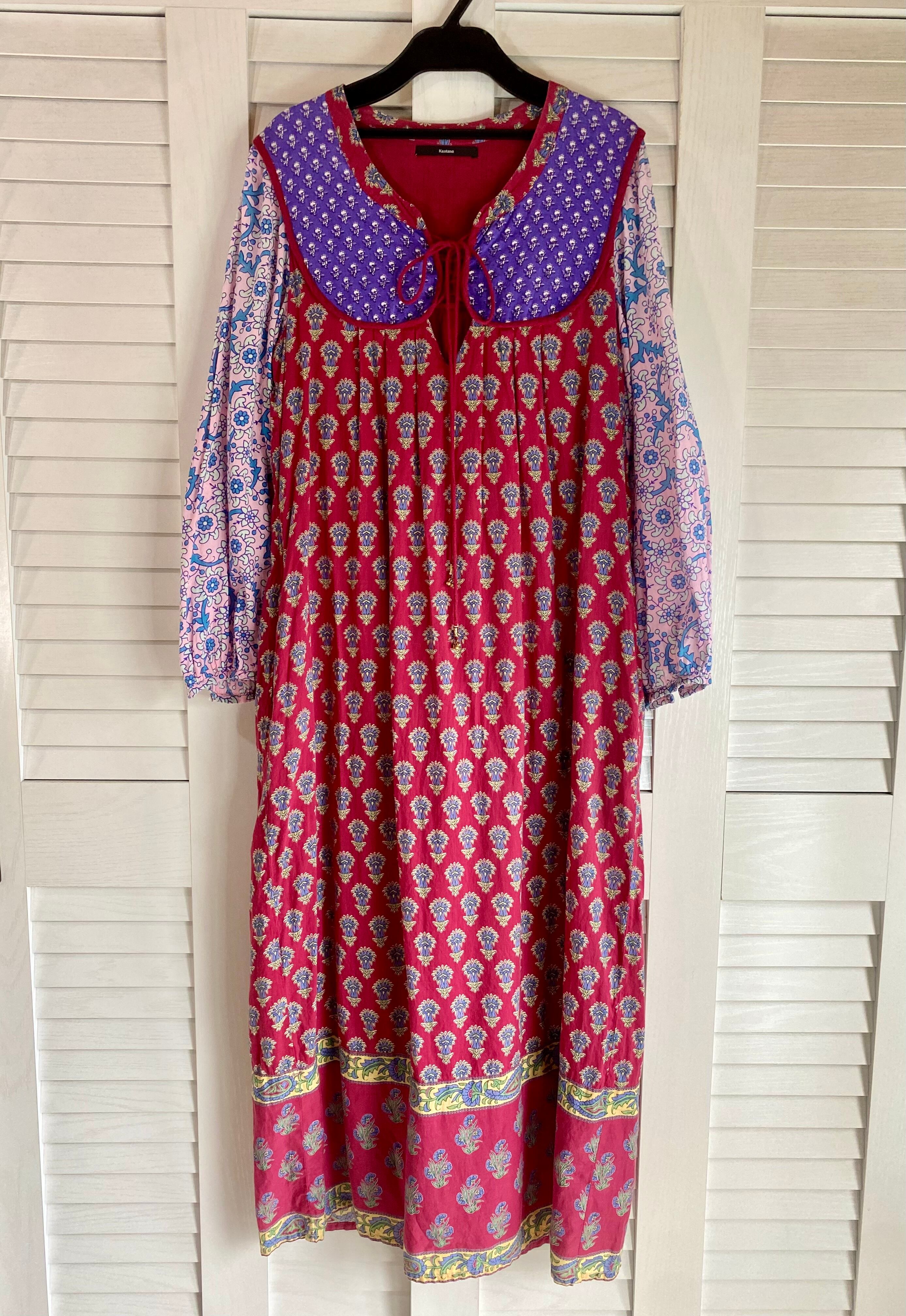 #2 kastane ヨーロピアンテイスト インドコットン カラーコンビ ロングワンピ レッド