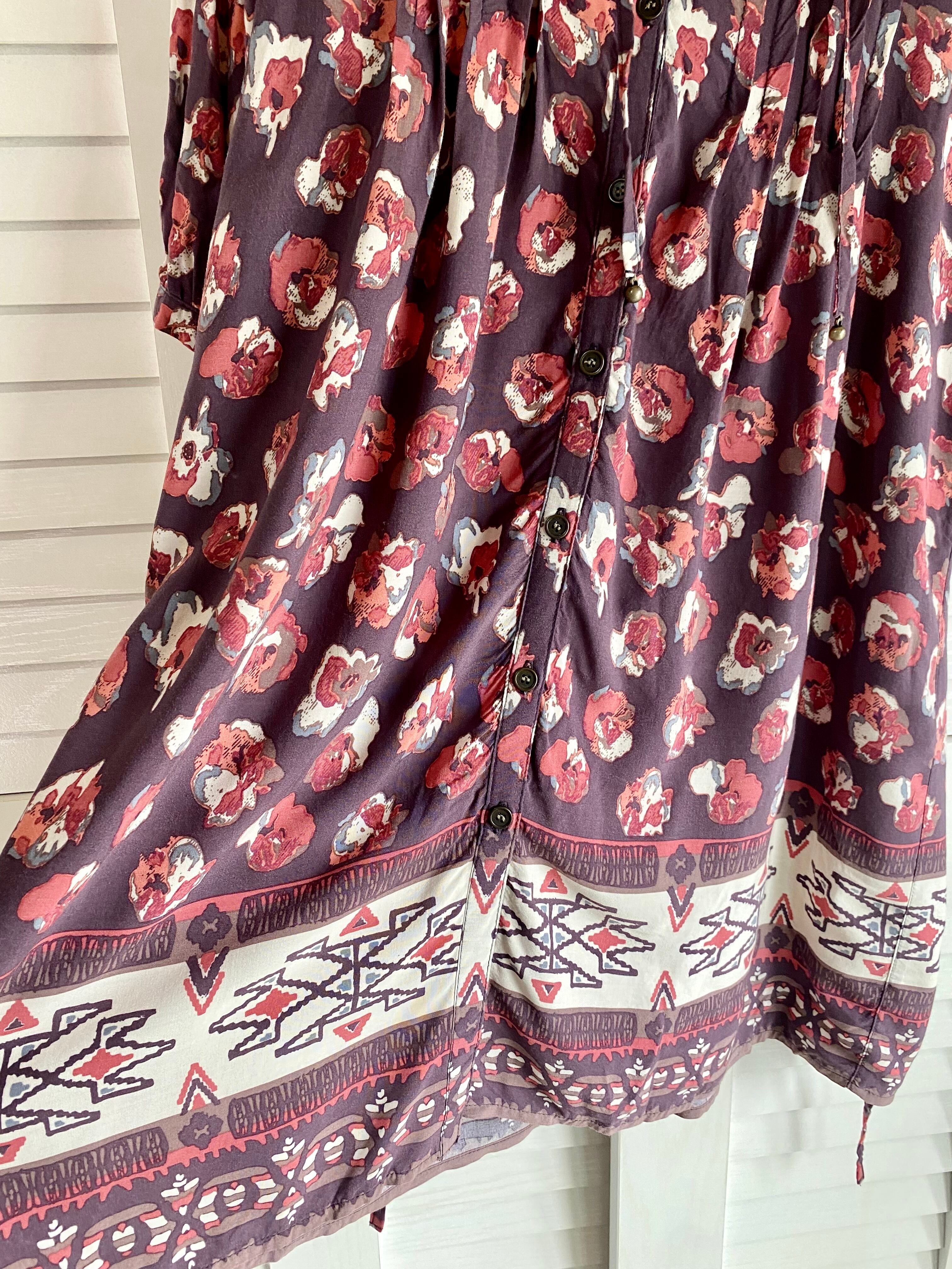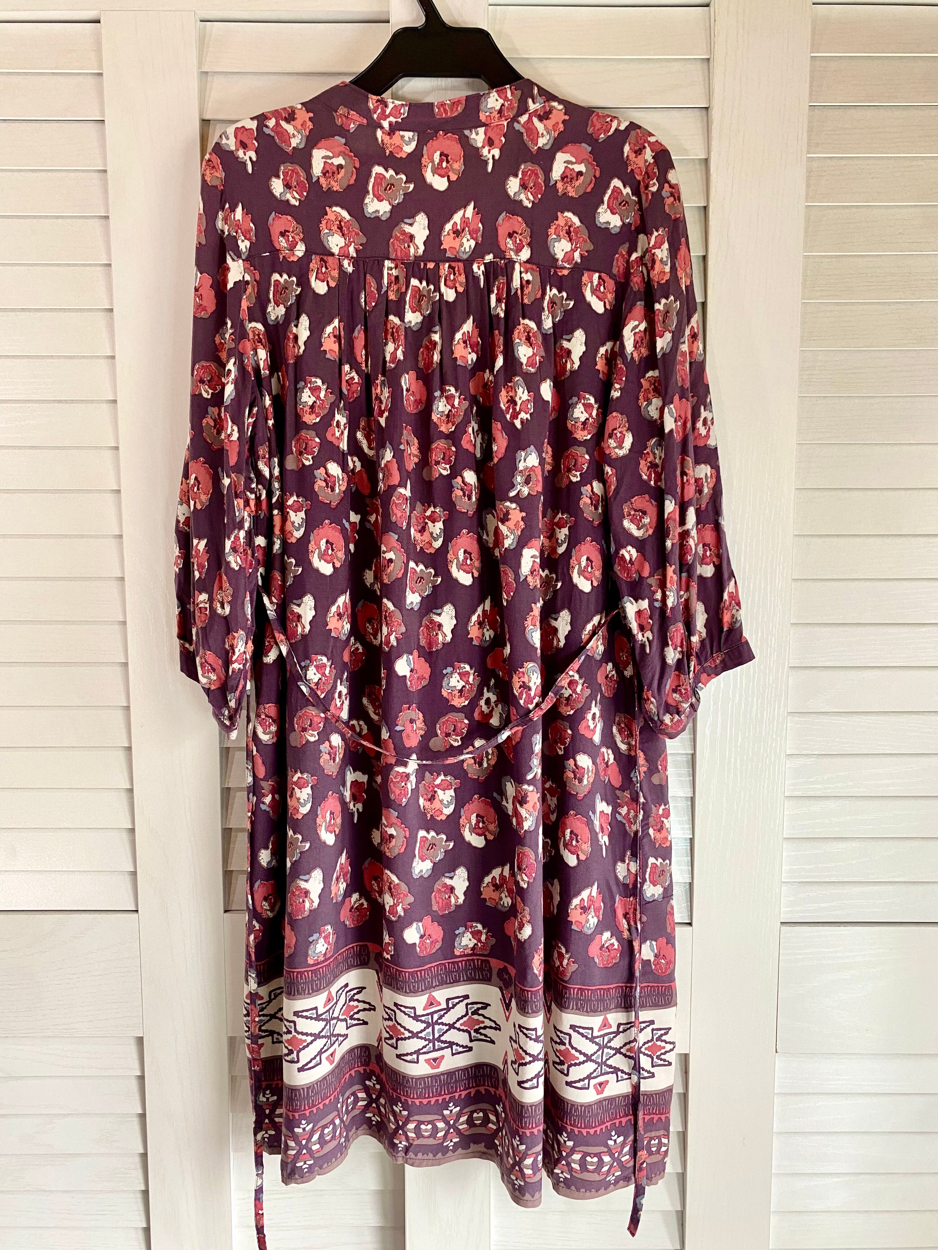 #2 LIVE IN CONFORT グレイッシュカラー フラワー&モロッコ柄 レーヨンタックフレアー シャツワンピ パープル