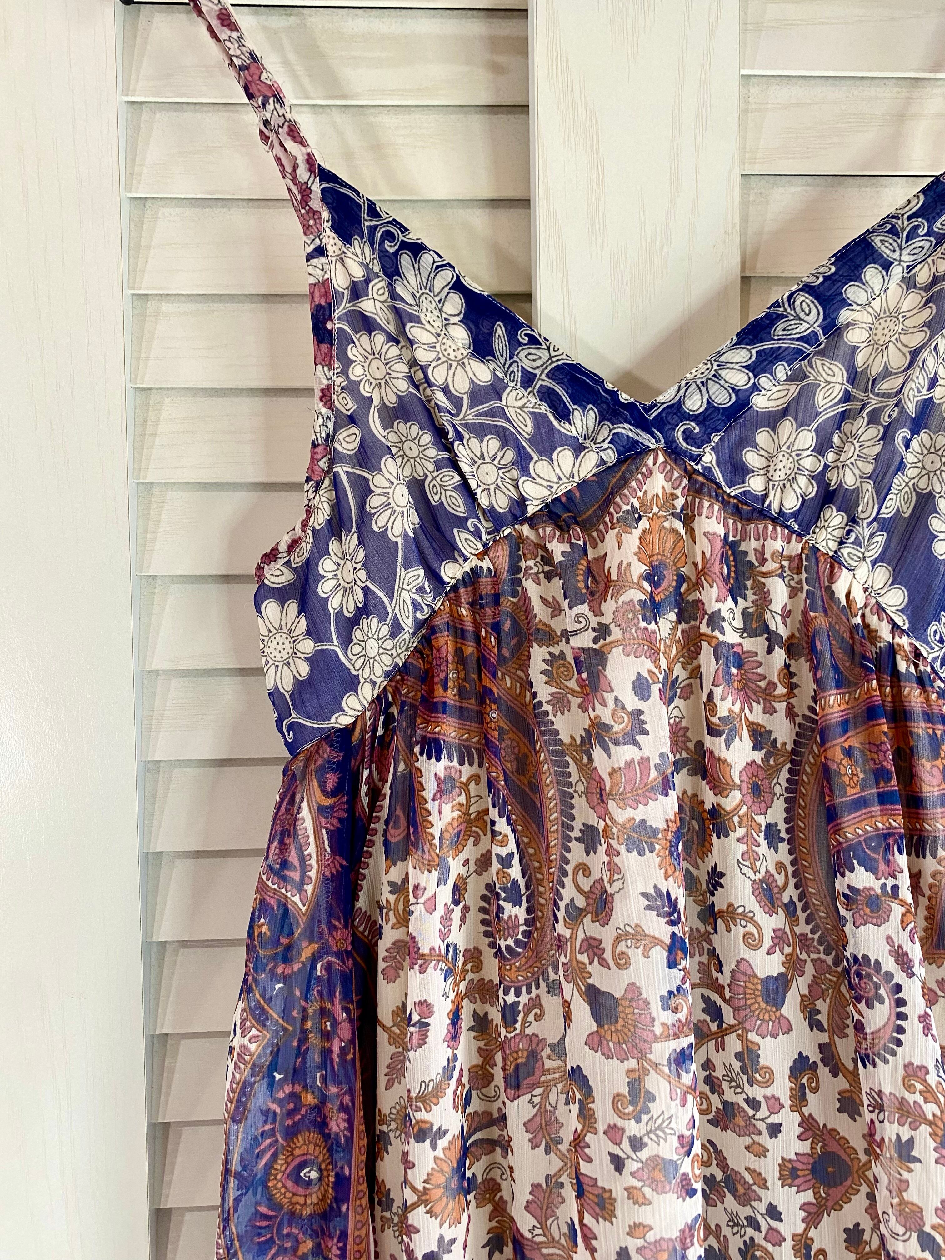 #1 【デザインサンプル】ヨーロピアンテイスト インドシフォン パネルプリント キャミソールワンピ ネイビー
