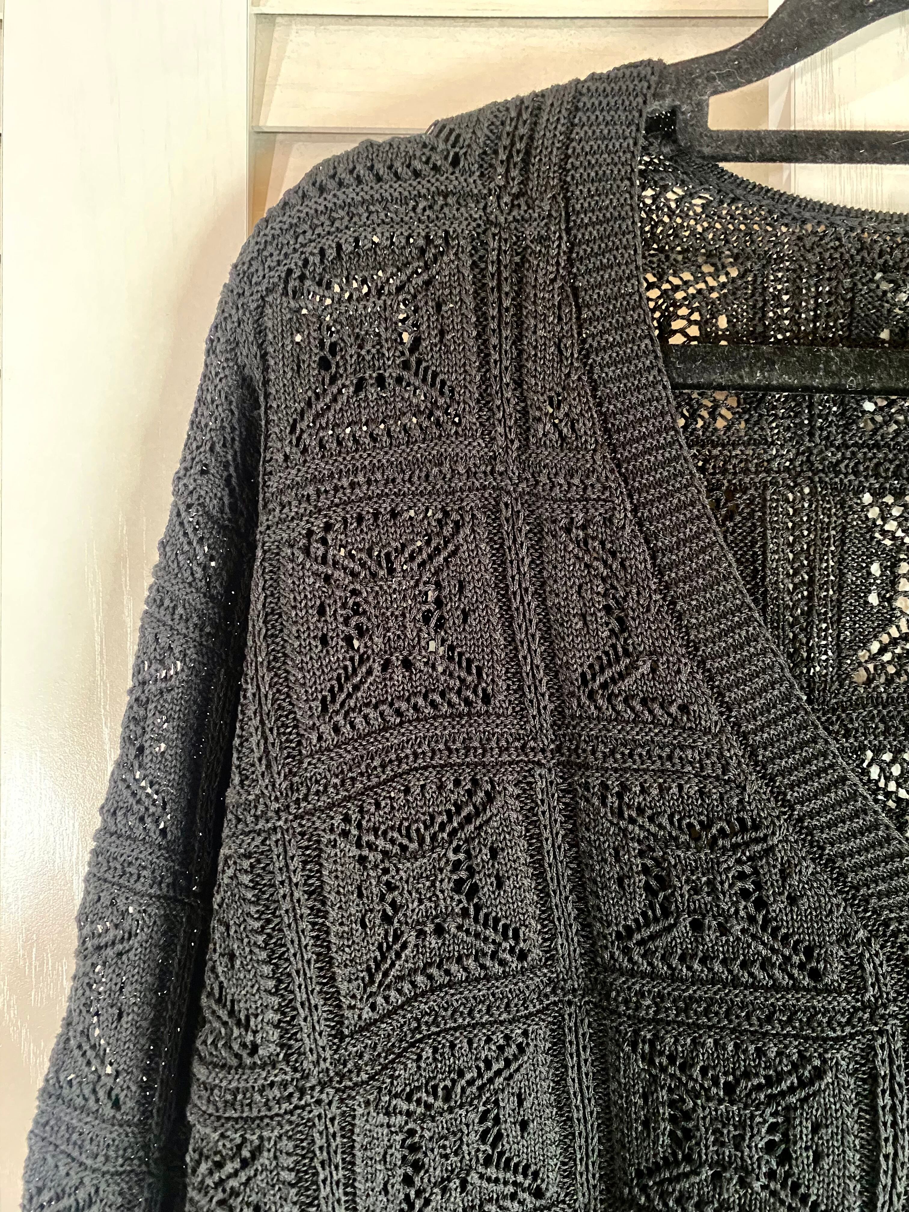 #1 【デザインサンプル】スクエアモチーフ 針ぬきニットカーデ ブラック | お洋服屋さん 『GOKKO』