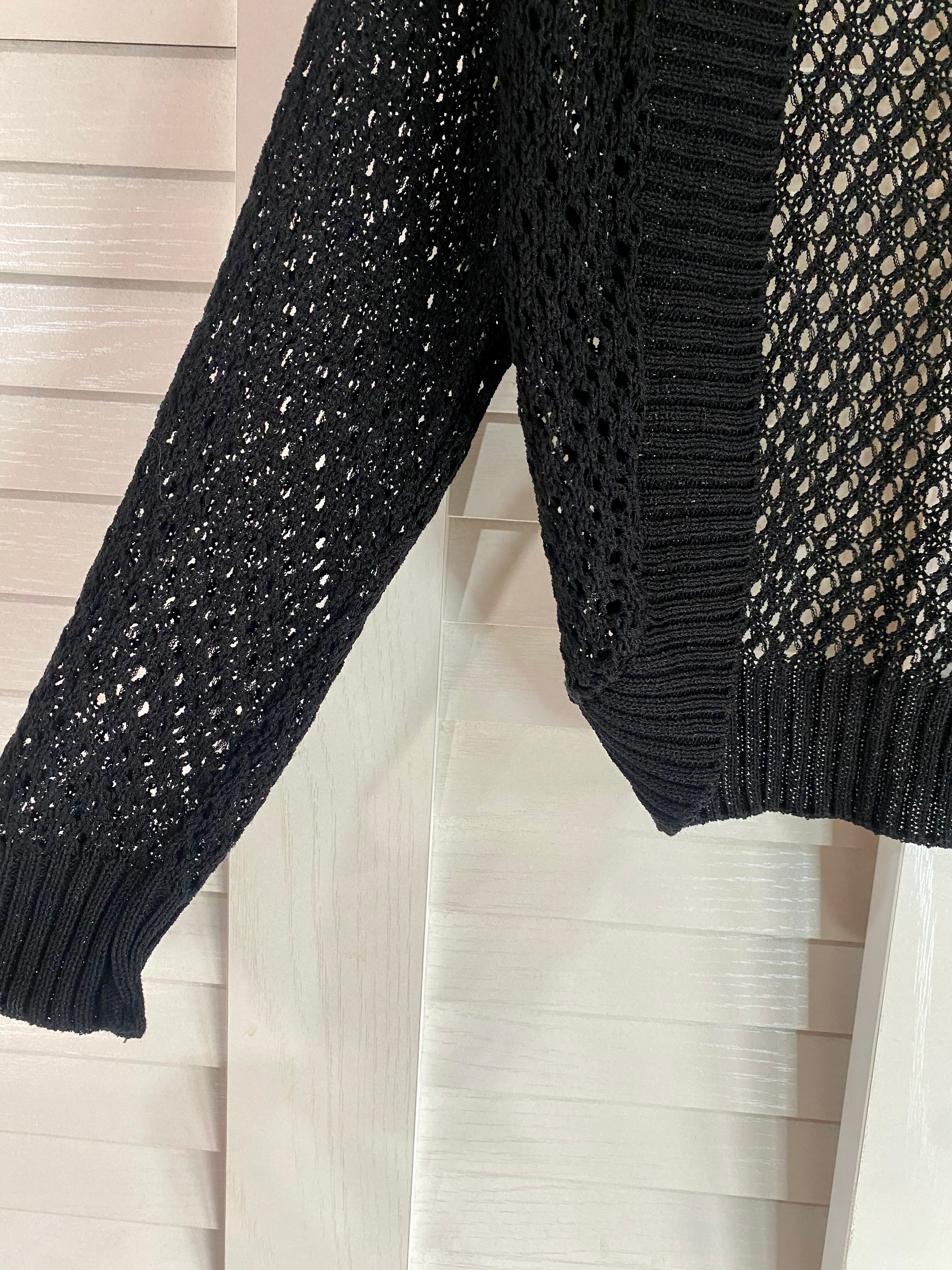 #1 OZOC 透かし編みメッシュ アクリルナイロン 5分袖ボレロ ブラック | お洋服屋さん 『GOKKO』