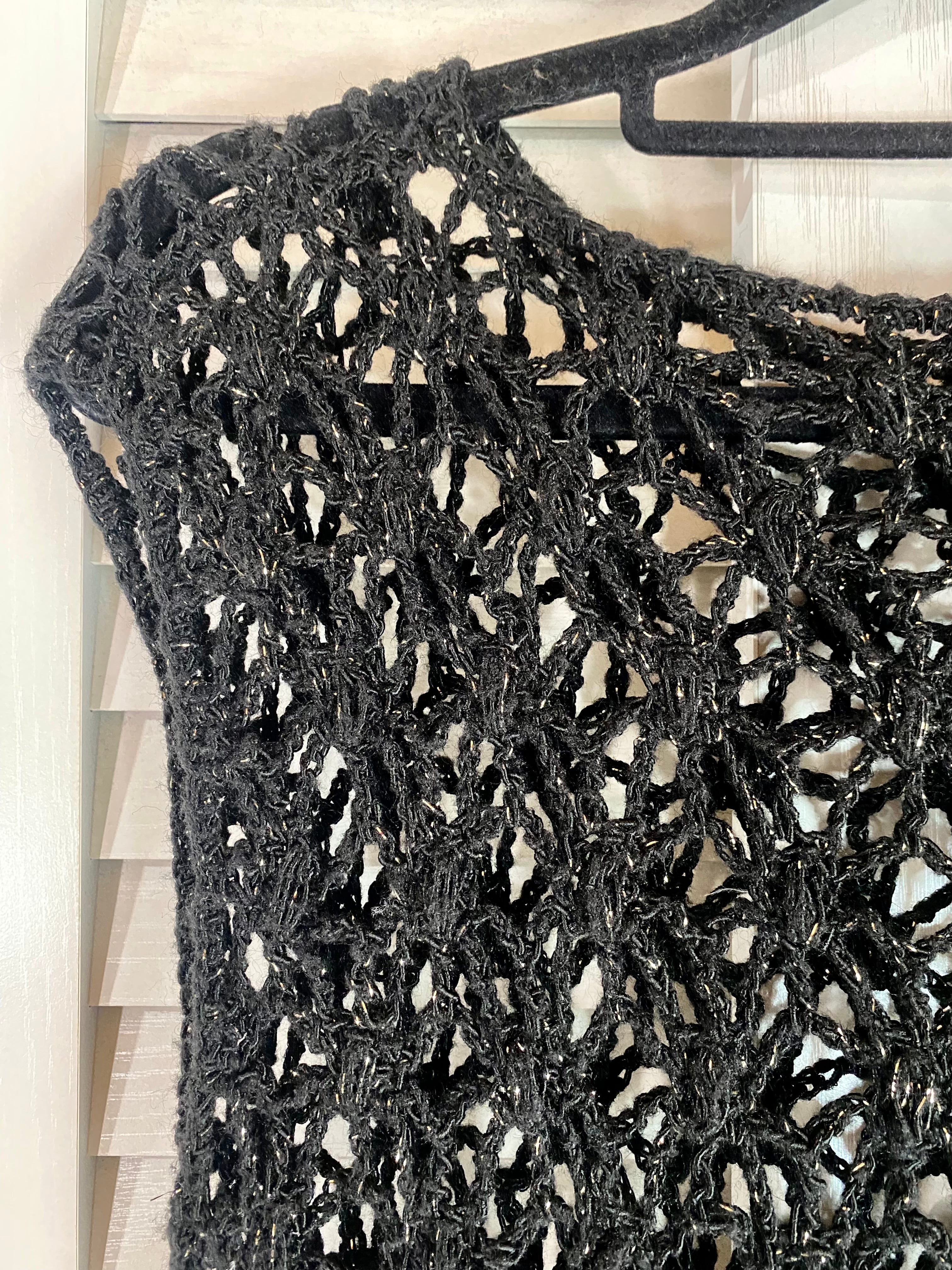 #1【古着屋購入】誰かが編んだゴールドヤーン入りニットベスト ブラック