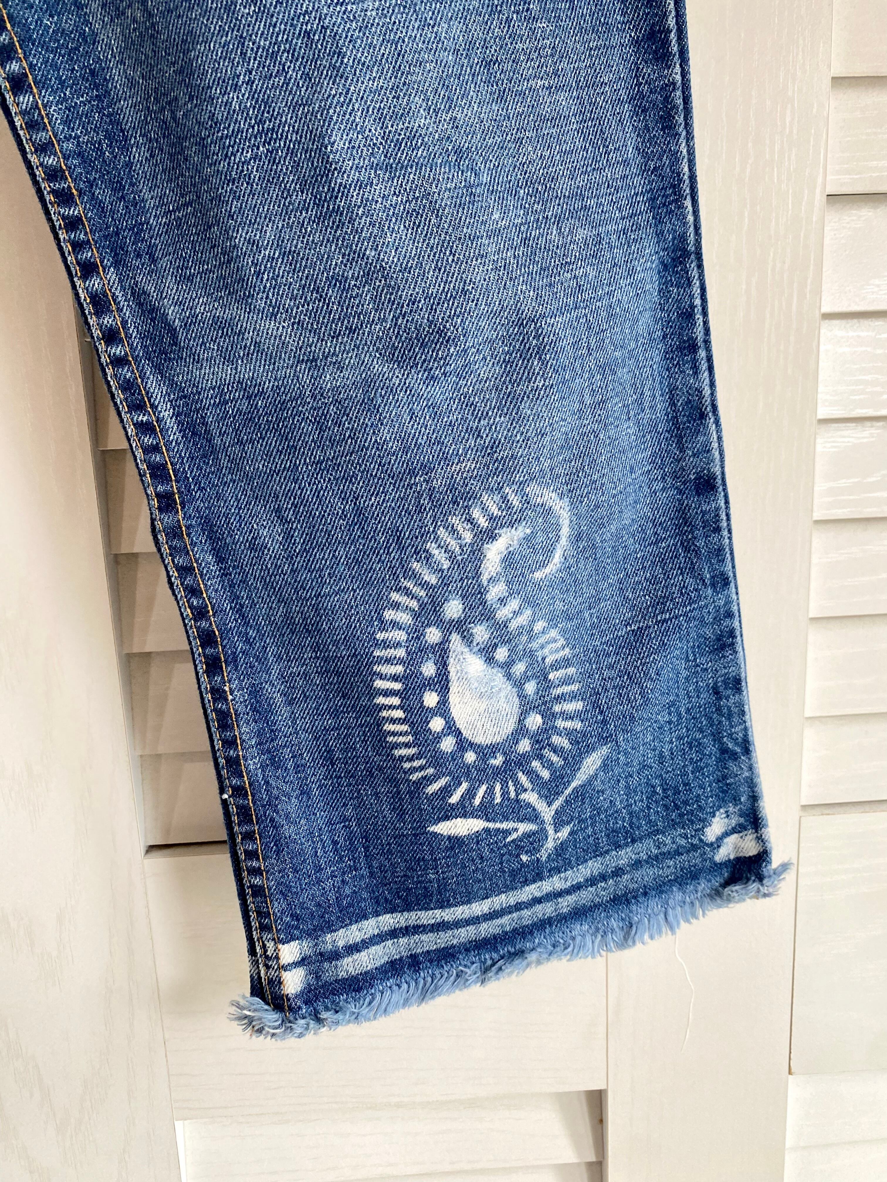 #2 GAP 色抜きペイズリーアクセント クロップドスキニージーンズ ブルー