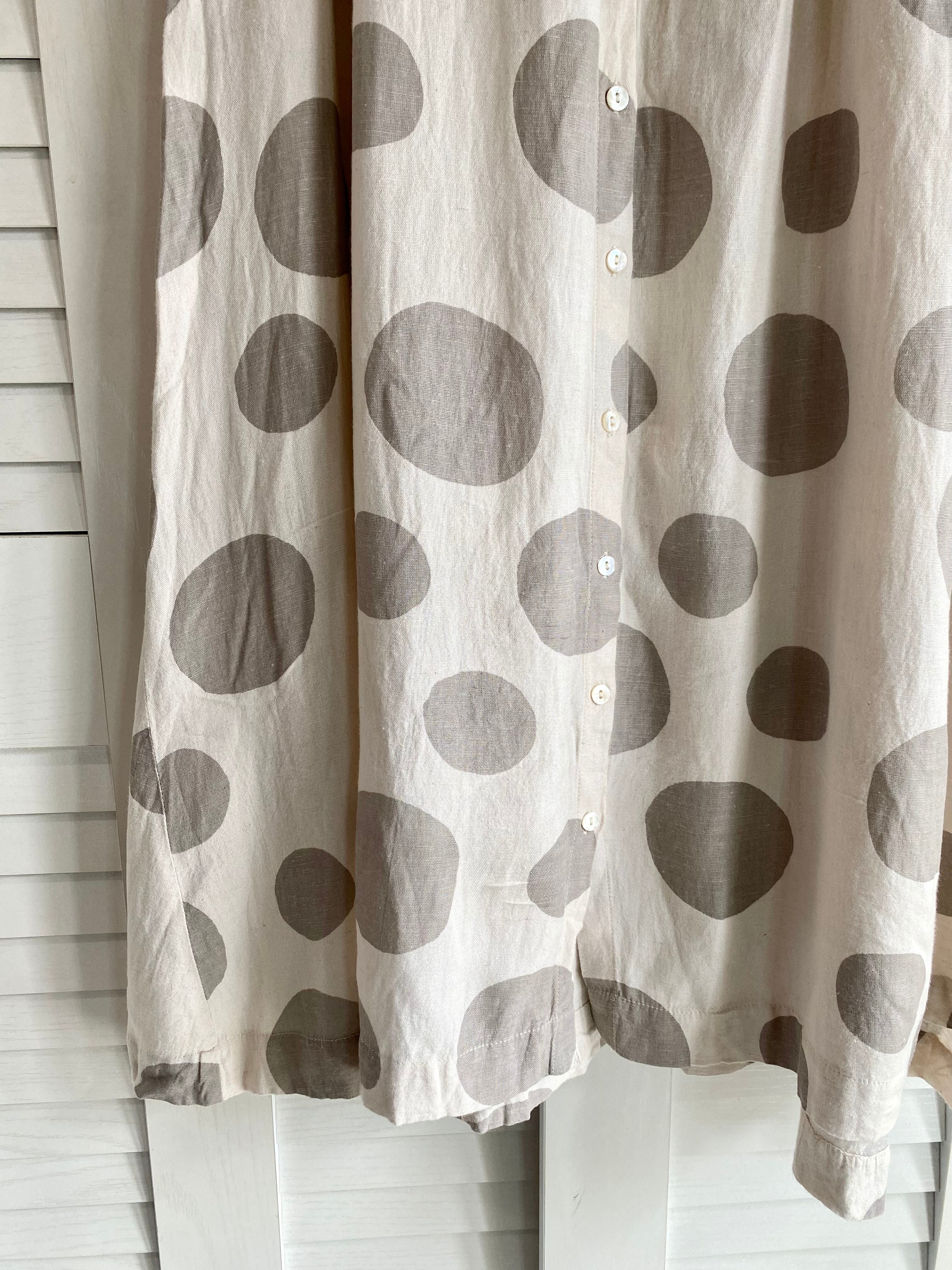 #2 kacoi BIGドット リネン入りコットンレーヨン ノースリーブ ボリュームワンピ アイボリー ※キズ有り